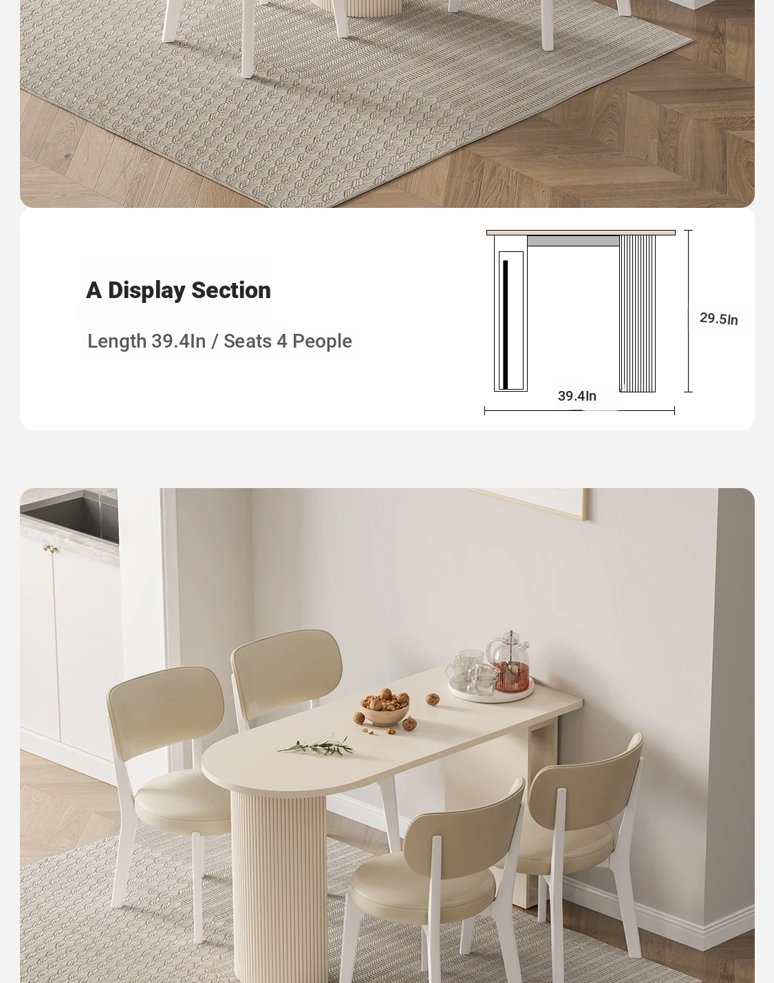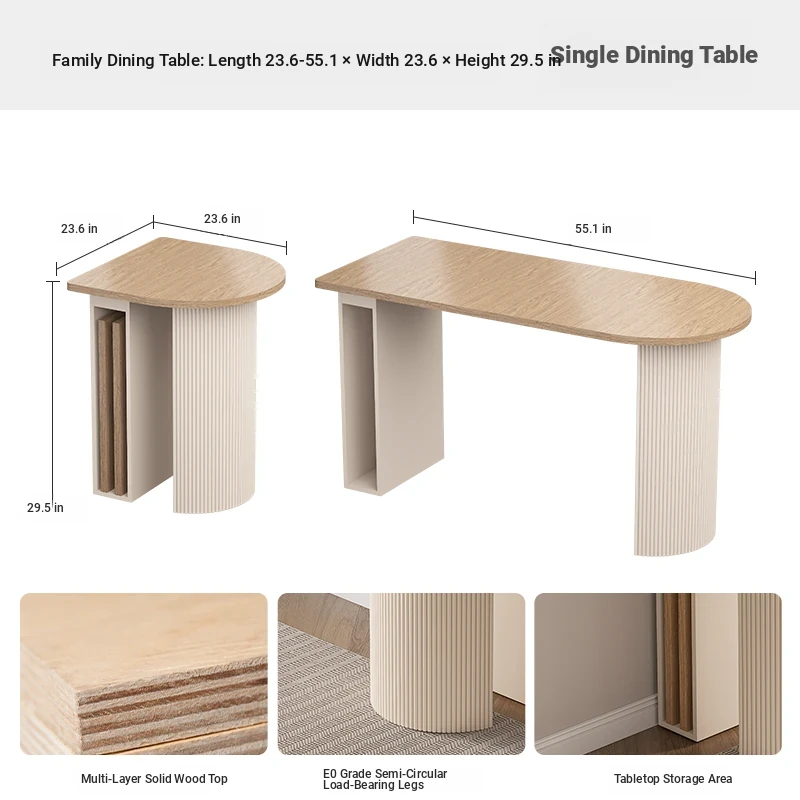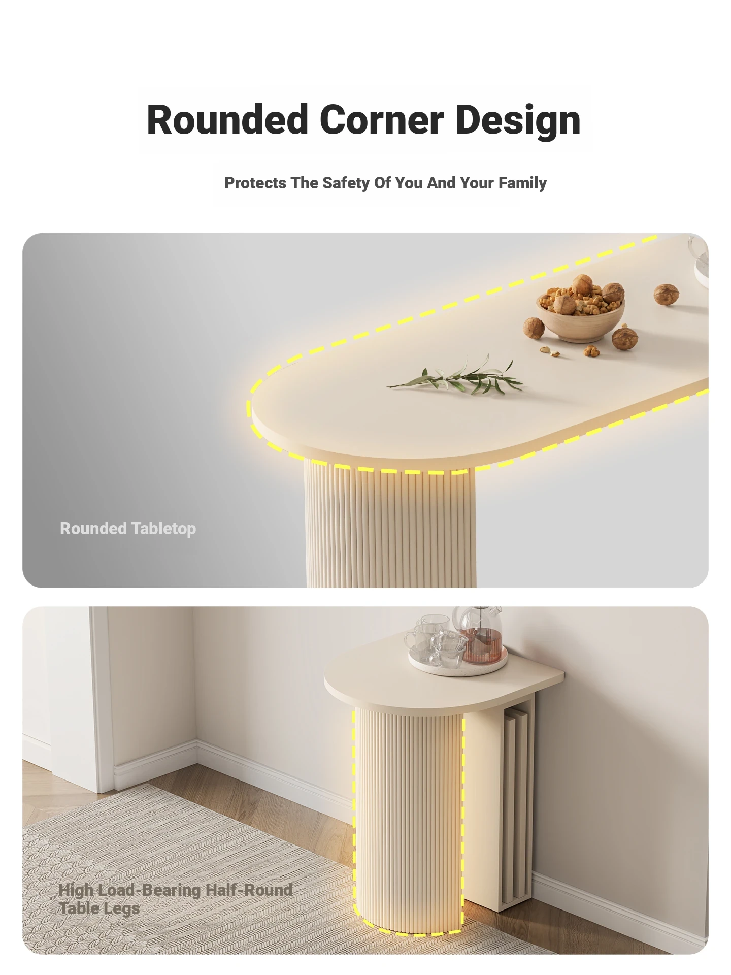 2025 New Compact Folding Dining Table Set - Space-Saving Oval & Semi-Circular Cream-Style Design for Small Homes, with Expandable Features and Stylish Chairs
