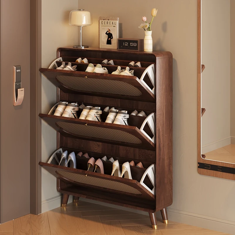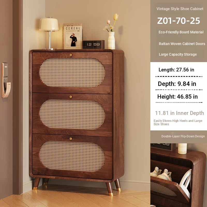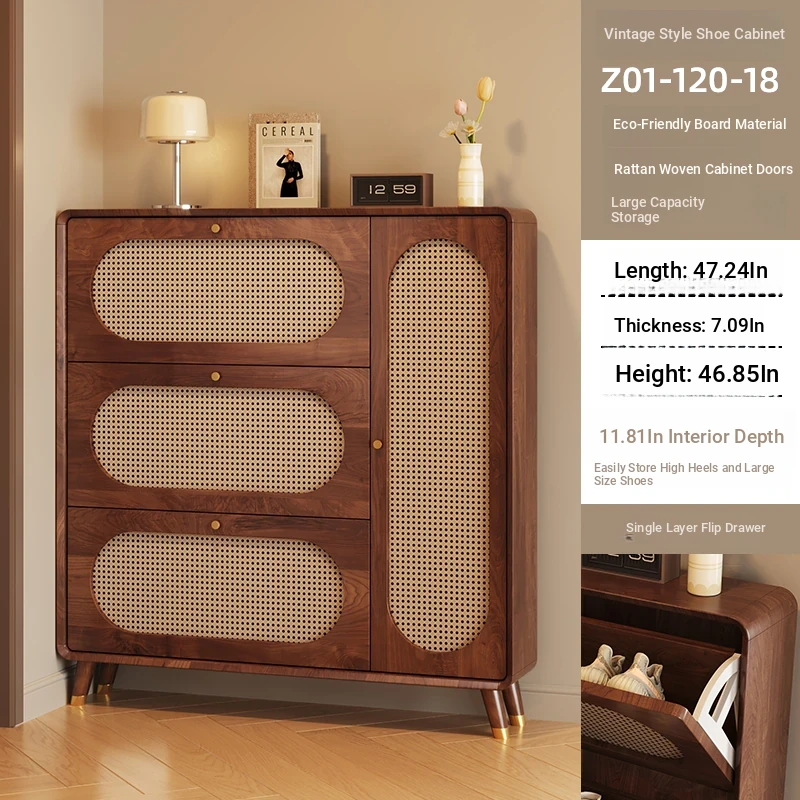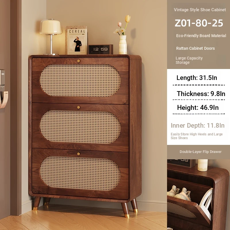 2025 New Stylish Rattan Shoe Cabinet & Storage Organizer - Space-Saving Wall-Mounted Entryway Solution, 2-in-1 Design for Home Use