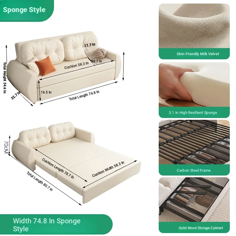 2025 New Stylish Sofa Bed - Versatile Folding Design for Small Spaces, Perfect for Living Rooms, Accommodates Both Single and Double Use, Trendy Choice for Modern Homes