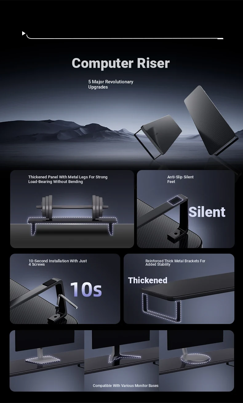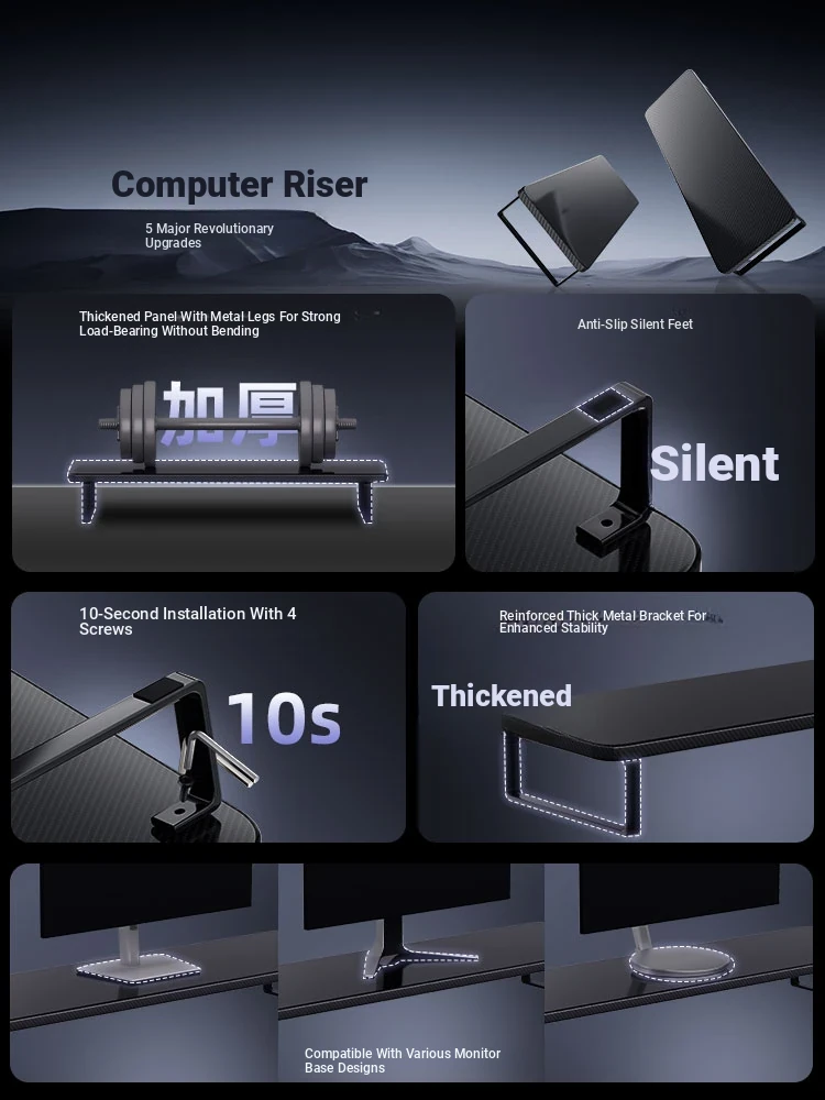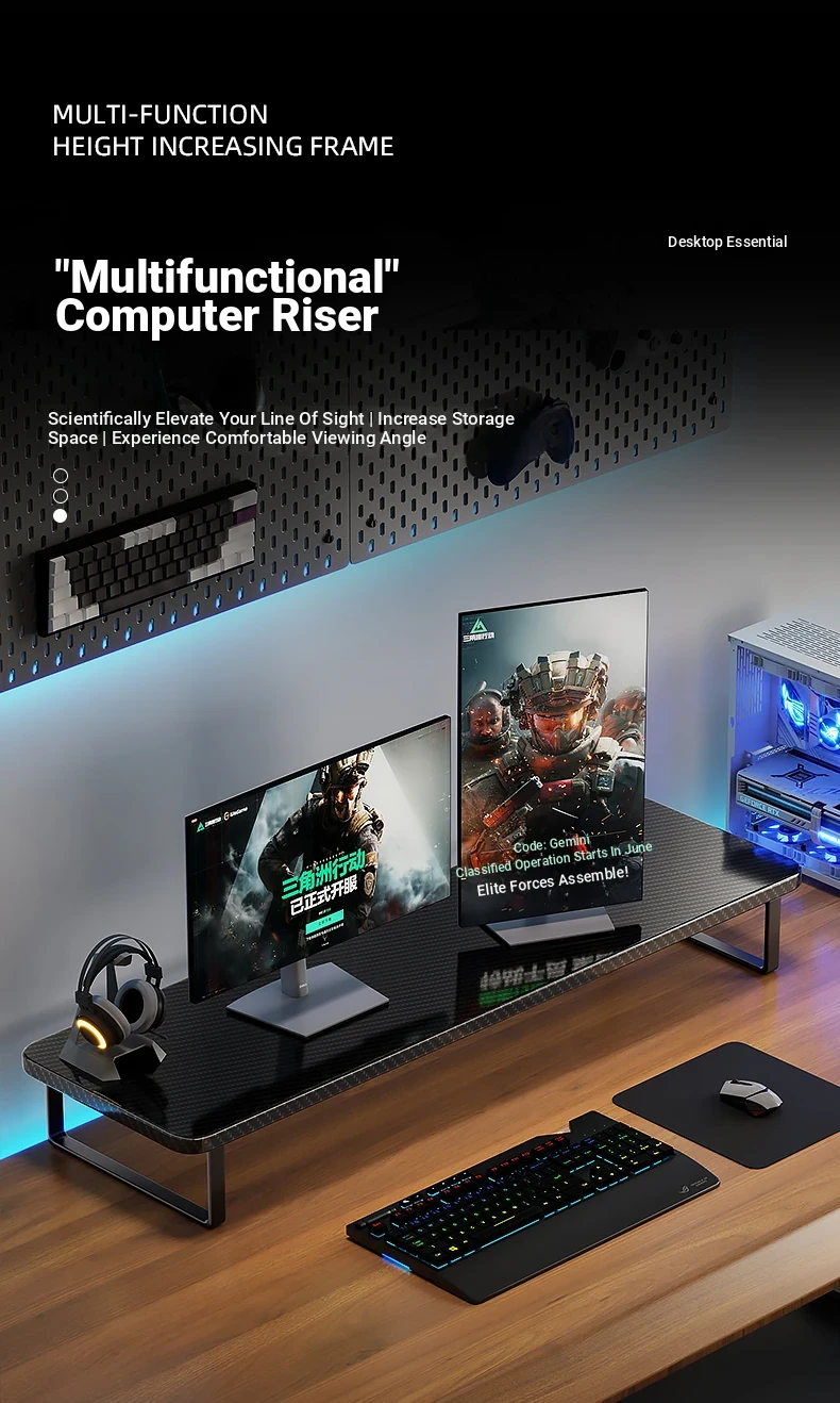 Adjustable Gaming Desk Monitor Stand - Ergonomic Laptop Riser & Desktop Organizer for Enhanced Workspace Efficiency