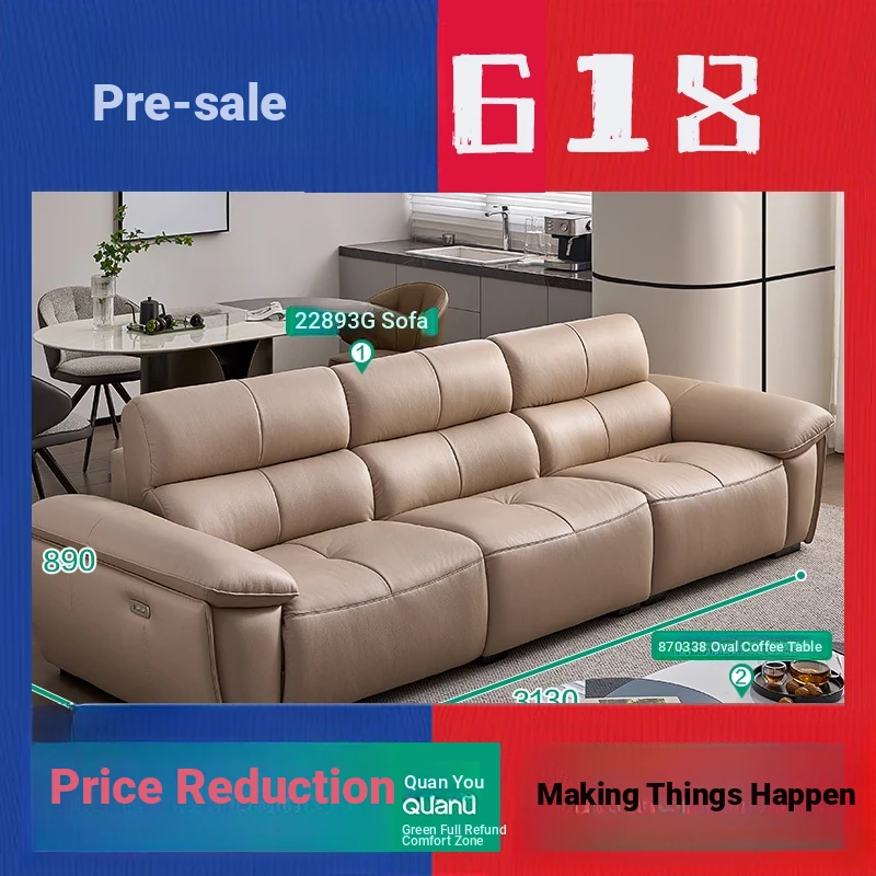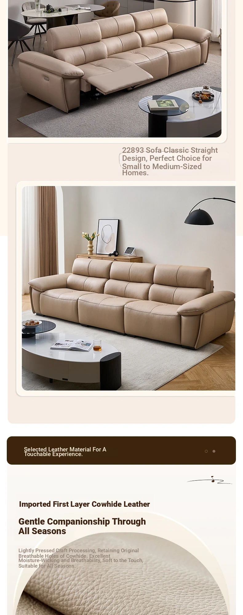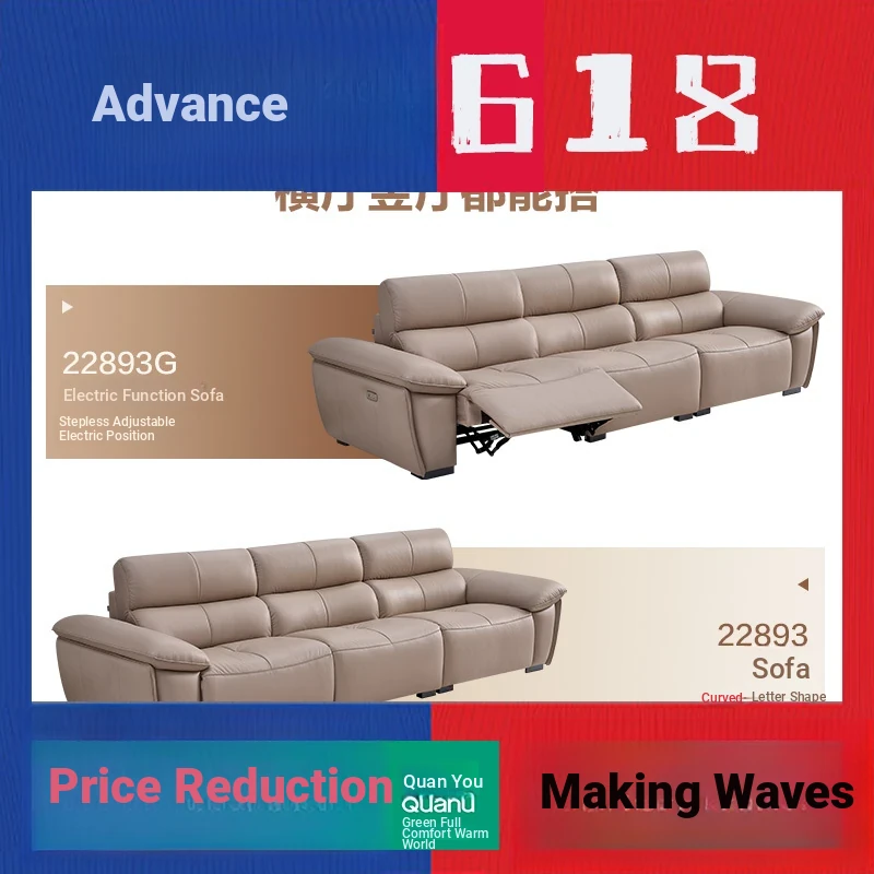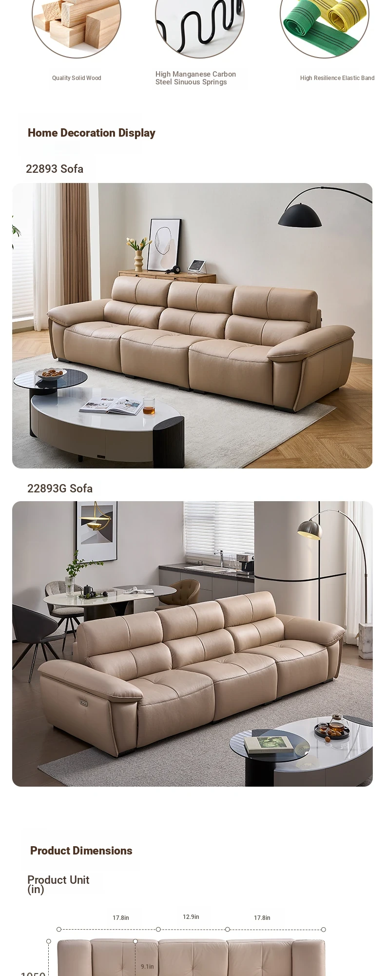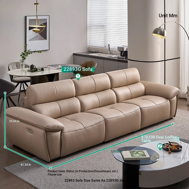 All Friends Furniture Store Style 22893G Imported Top Layer Yellow Cowhide Sofa - Stylish, Minimalist Design with No Wall Clearance