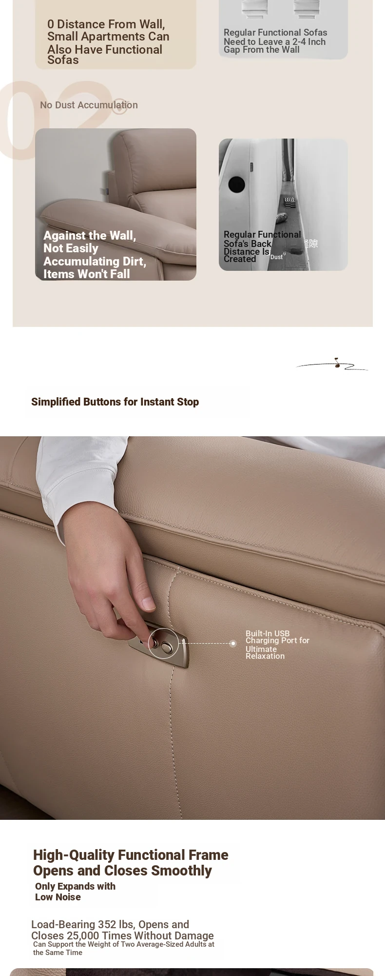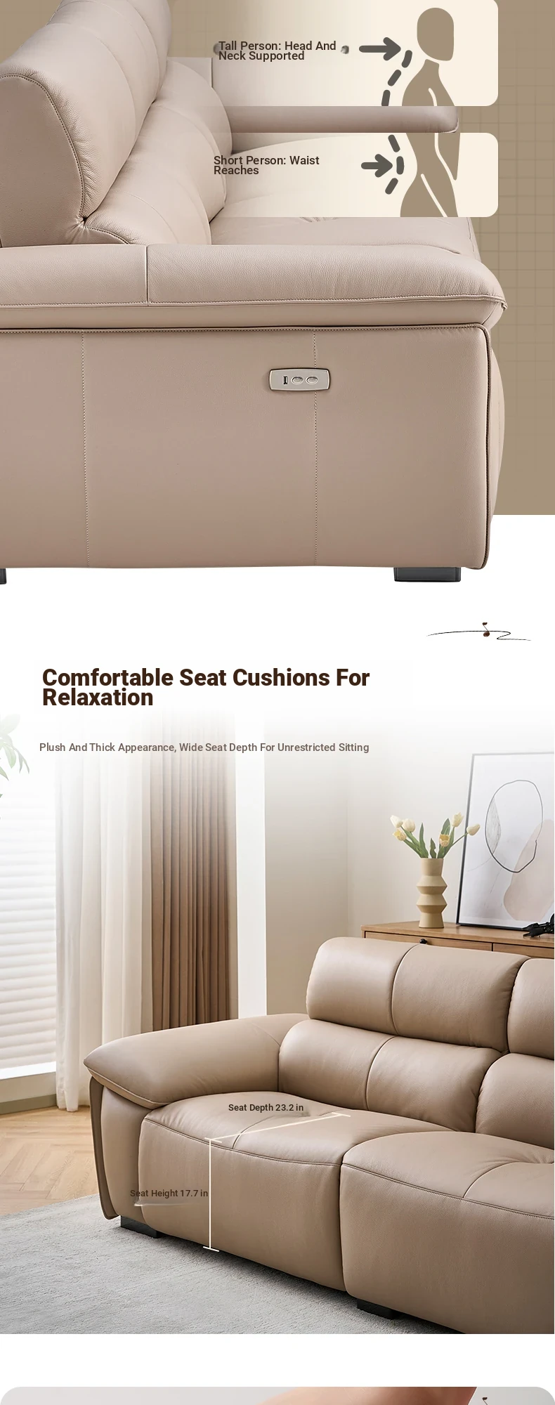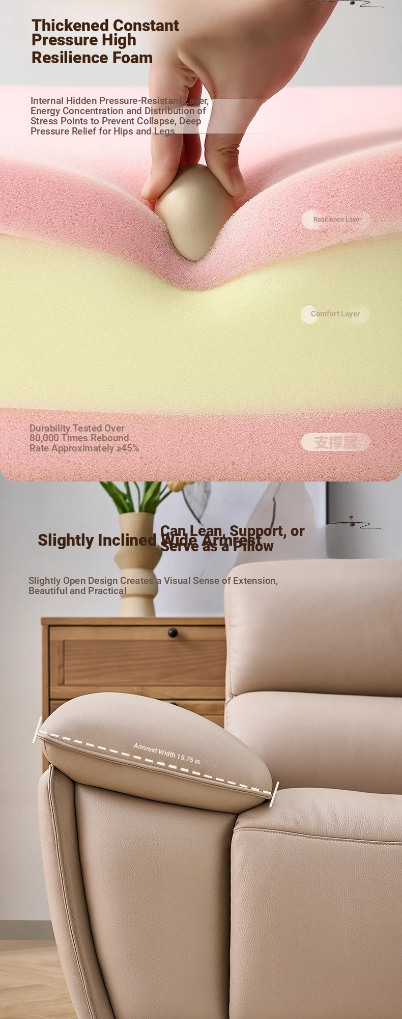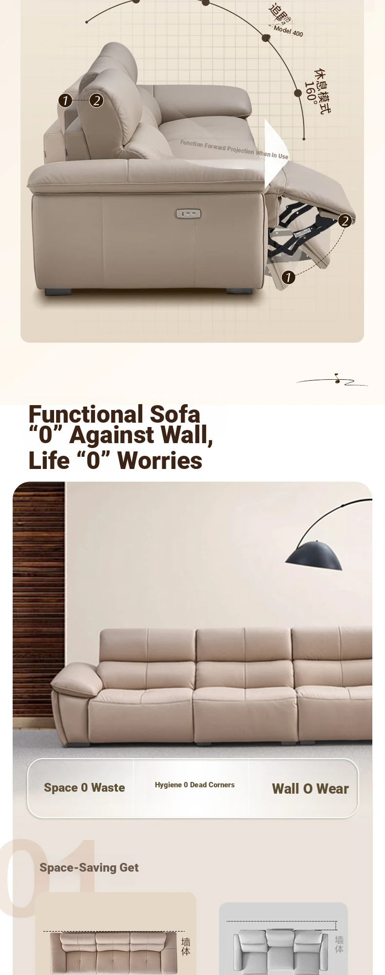 All Friends Furniture Store Style 22893G Imported Top Layer Yellow Cowhide Sofa - Stylish, Minimalist Design with No Wall Clearance