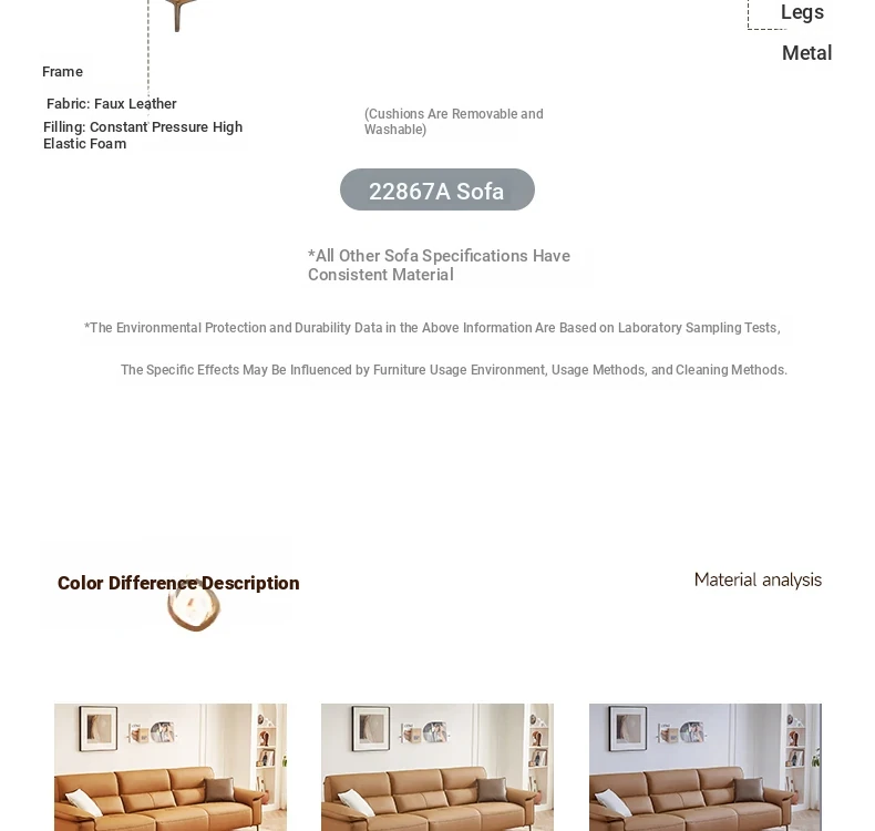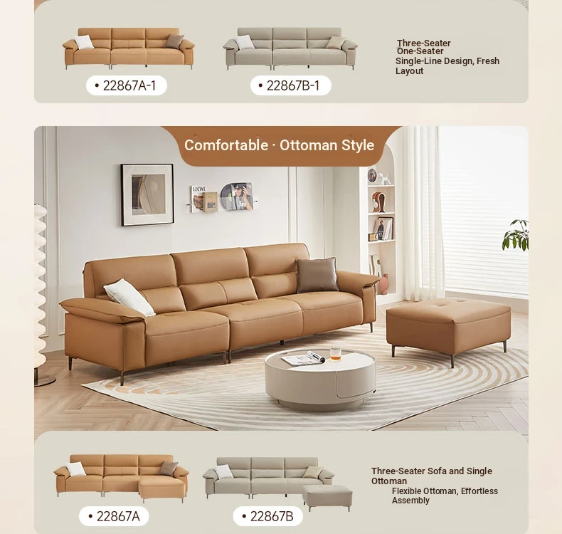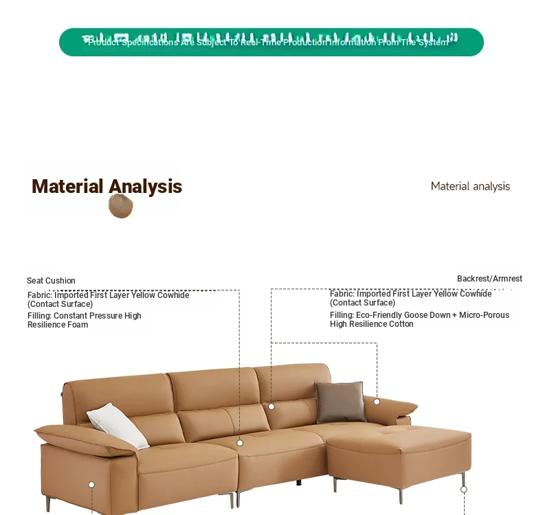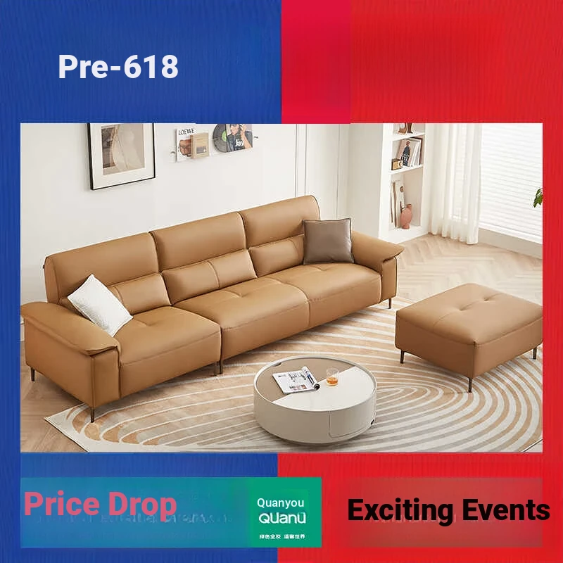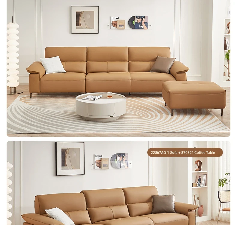 All Friends Home Store 22867AB Imported Top Layer Yellow Cowhide Sofa - Stylish and Minimalist Design with Functional Features, New Arrival!