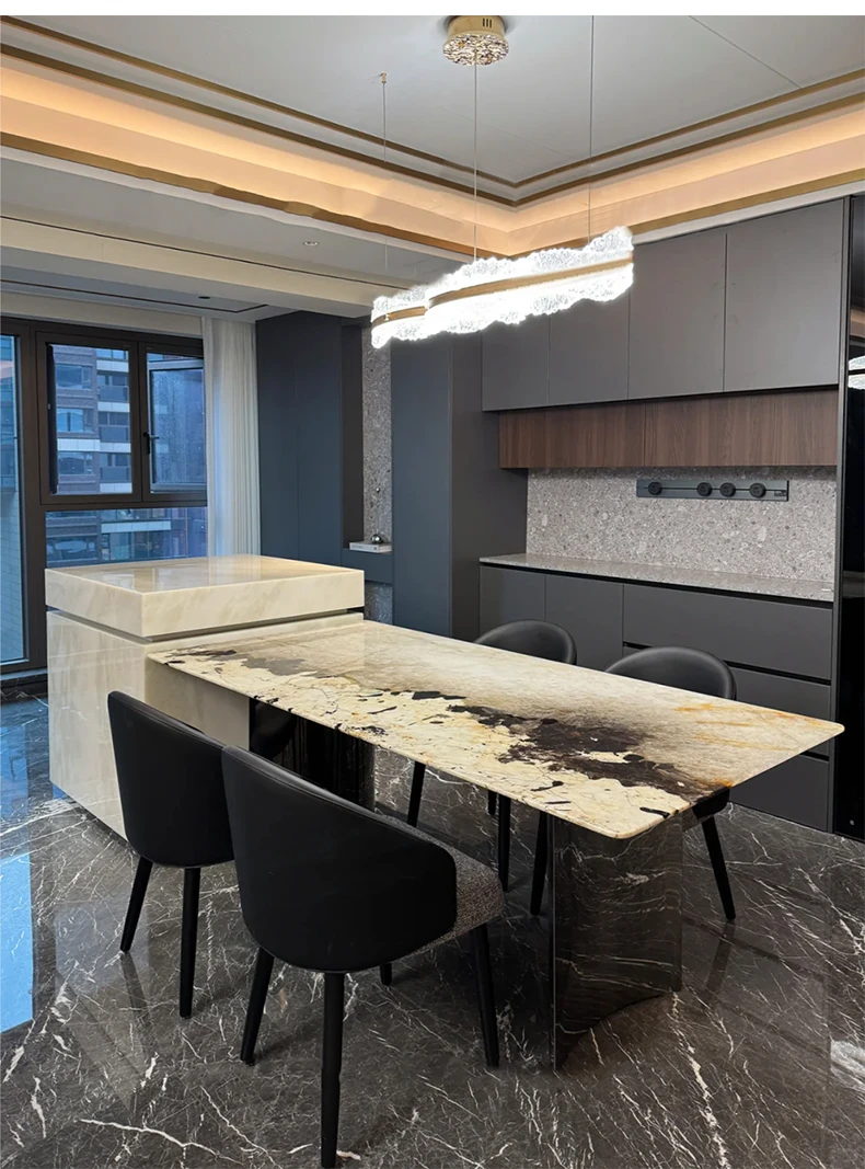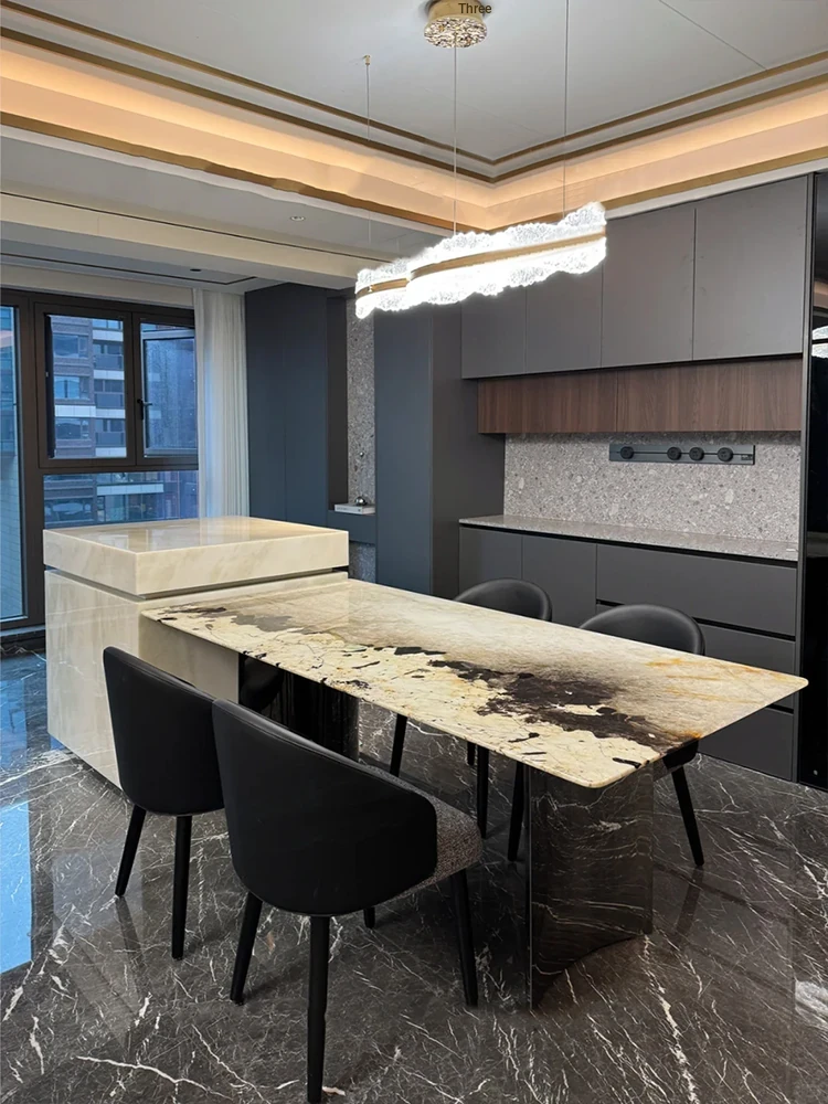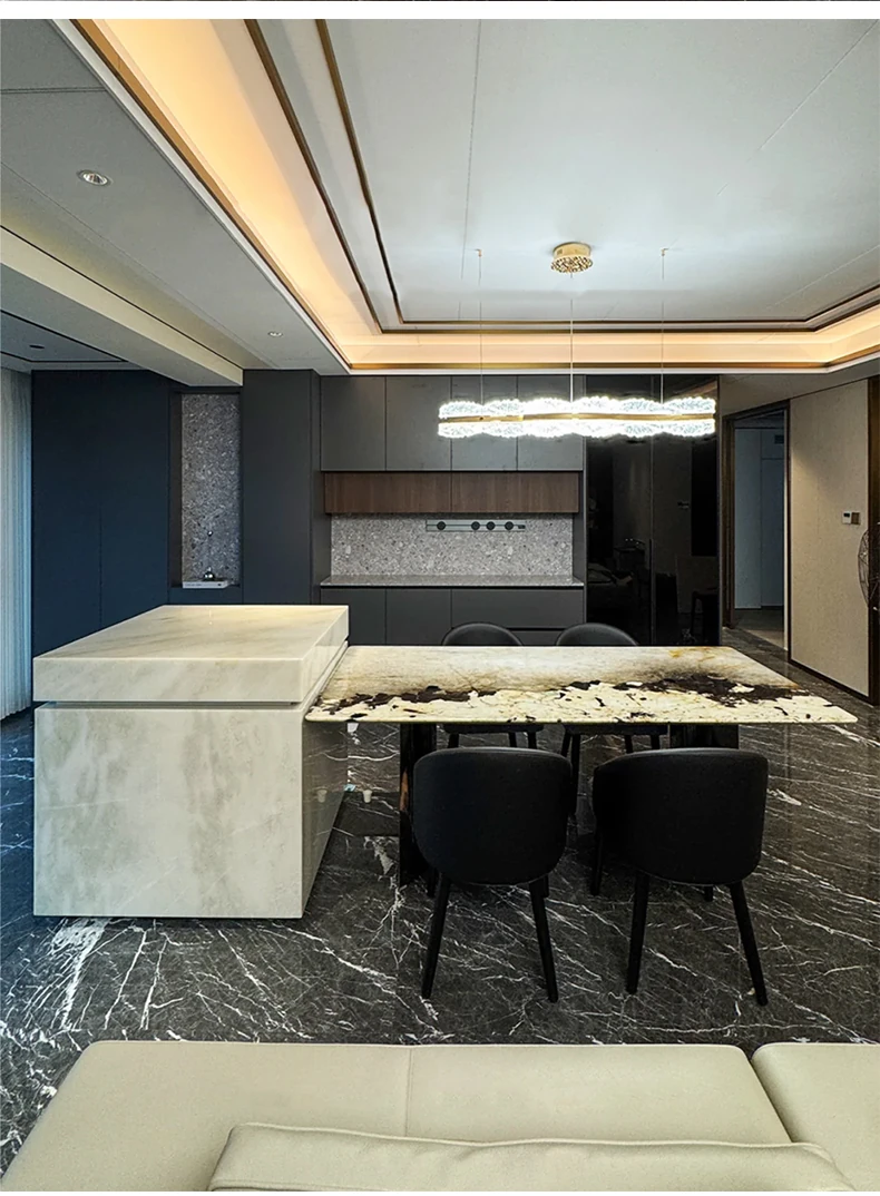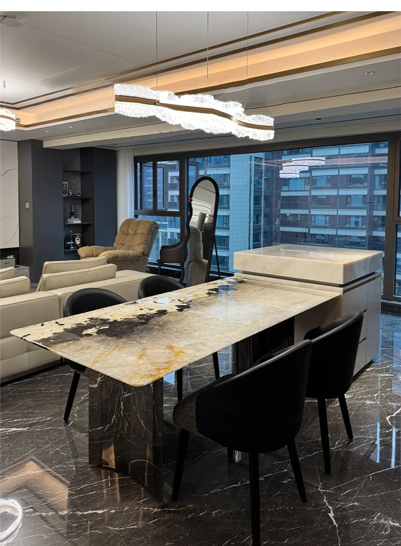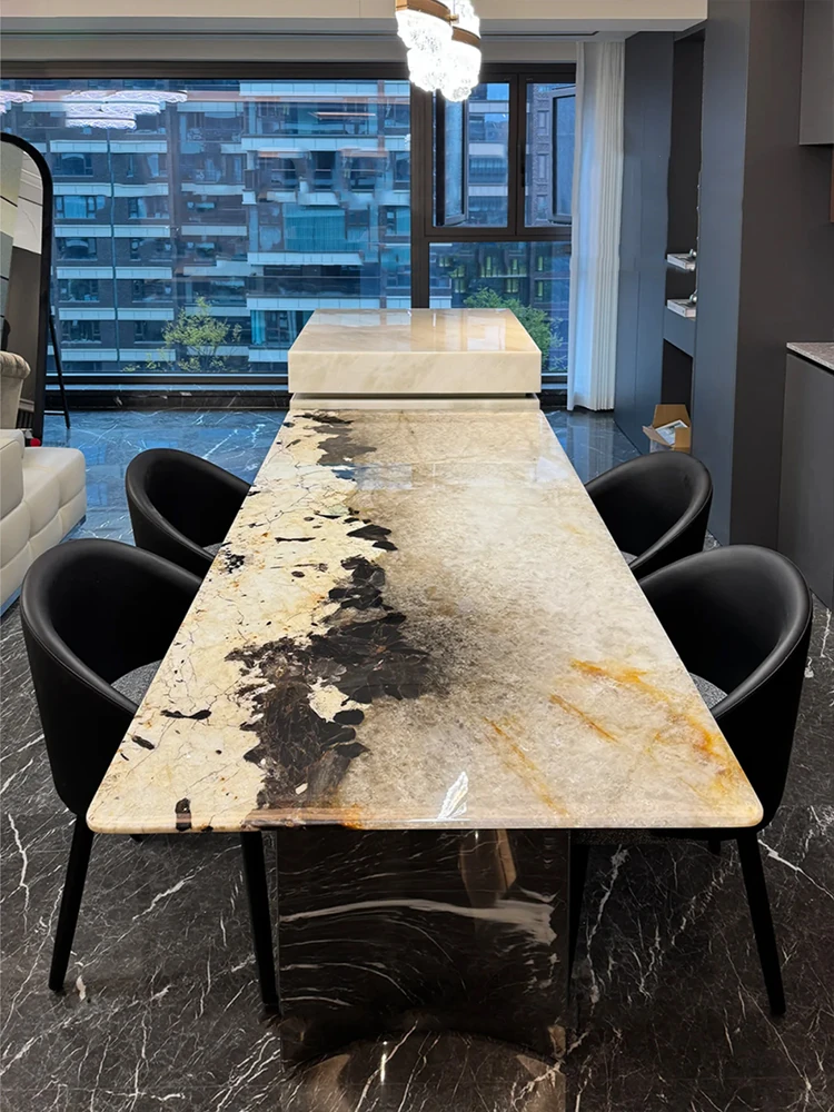 Cangcheng Pure Natural Pandora Luxury Stone Rectangular Dining Table - Elegant Italian Design for High-End Villas and Spacious Dining Rooms