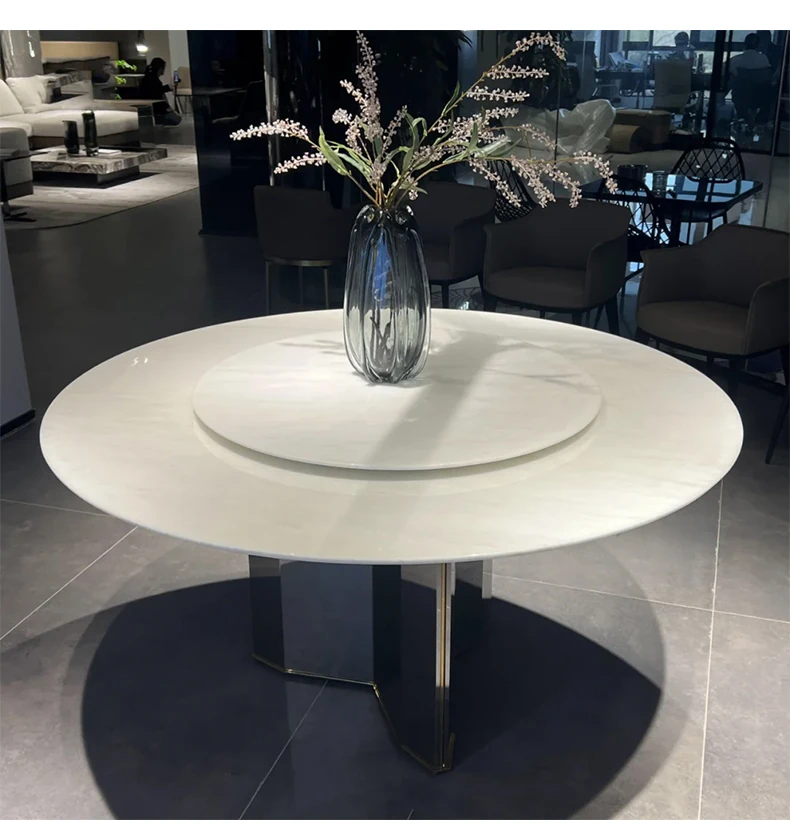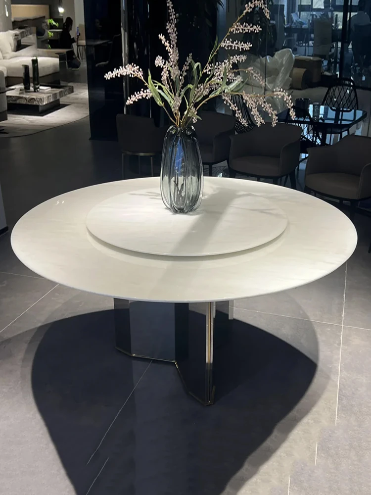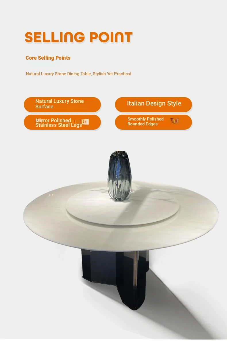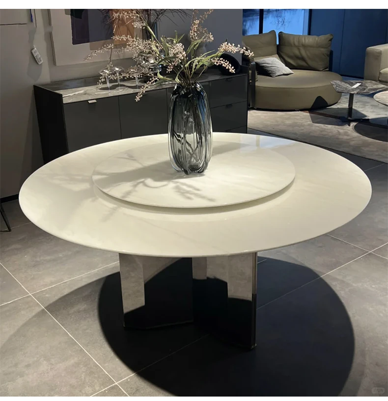 Cengcari Luxury Round Dining Table - Italian Style High-End Villa Table with Natural Marble Top - Elegant and Modern Design for Sophisticated Dining Experiences