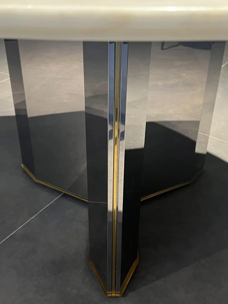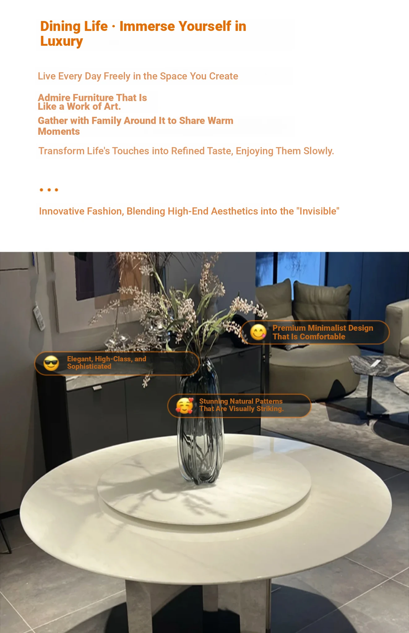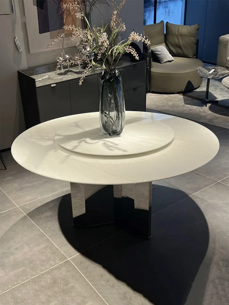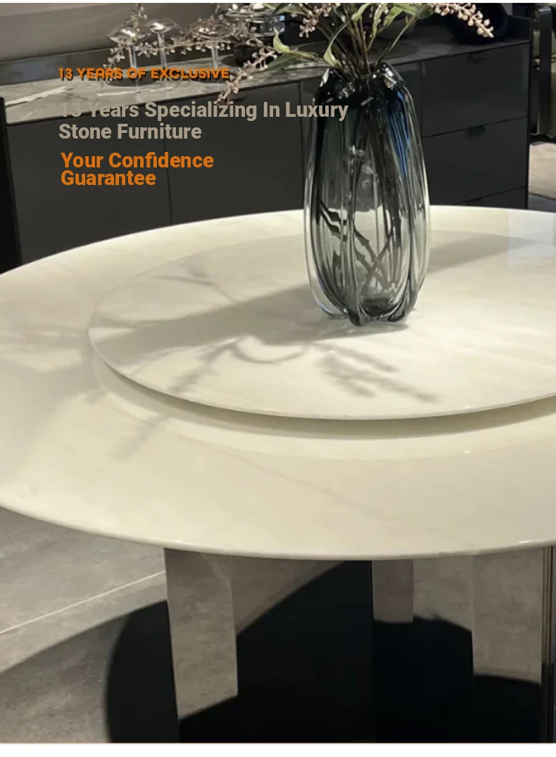 Cengcari Luxury Round Dining Table - Italian Style High-End Villa Table with Natural Marble Top - Elegant and Modern Design for Sophisticated Dining Experiences
