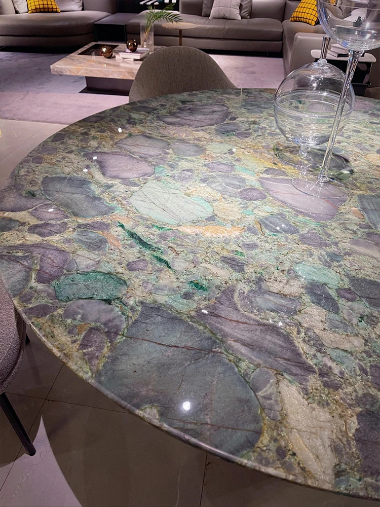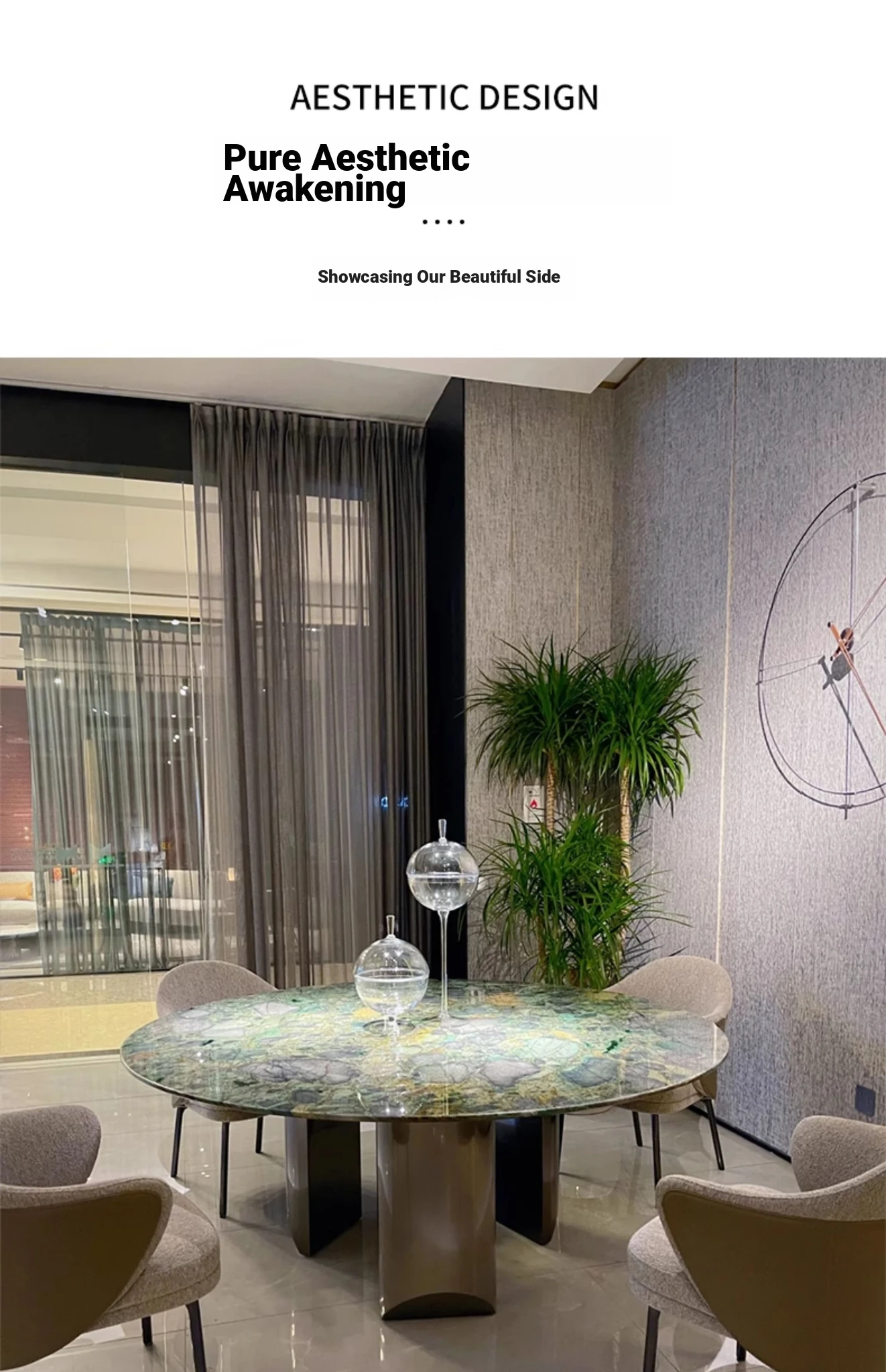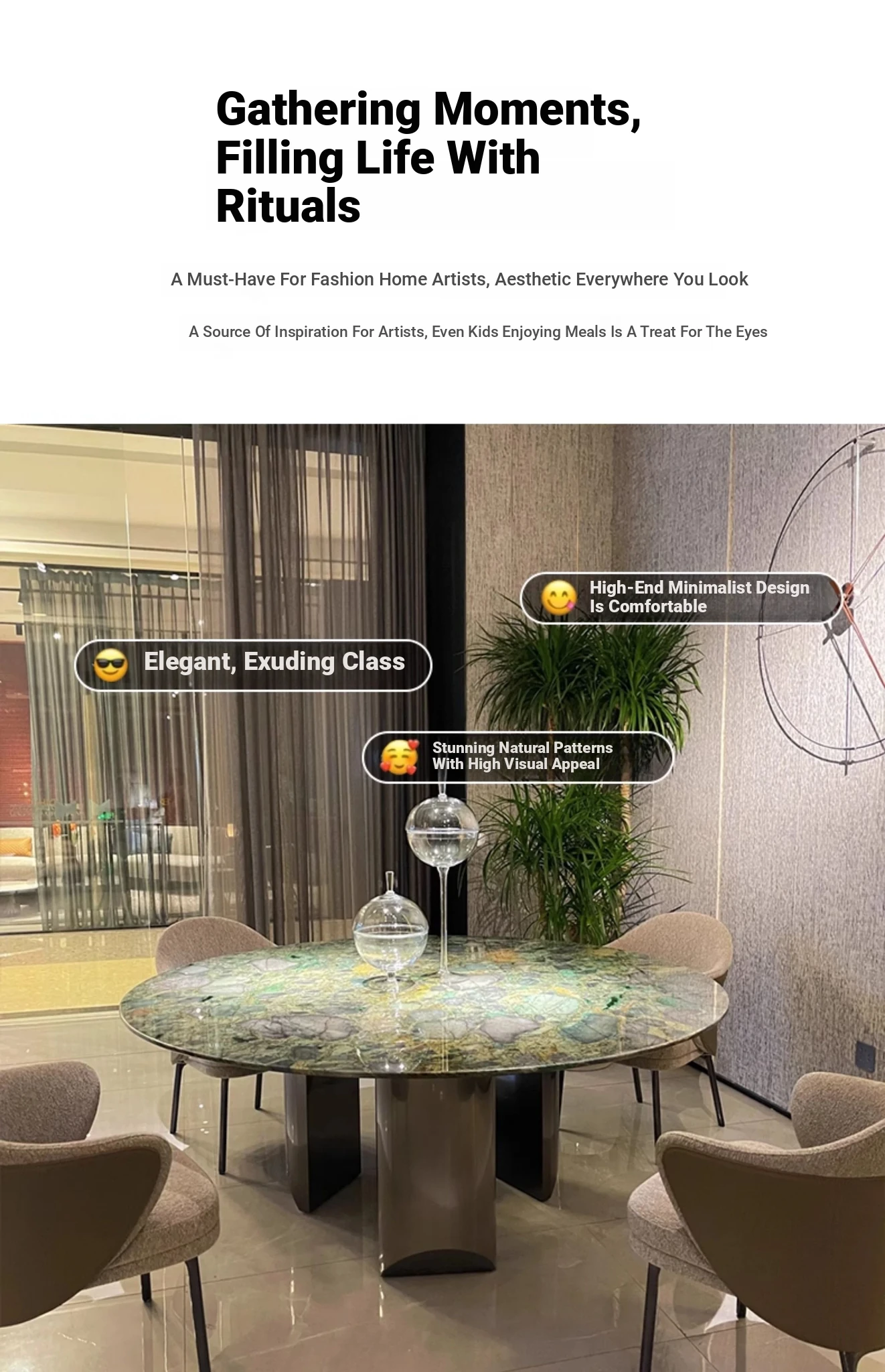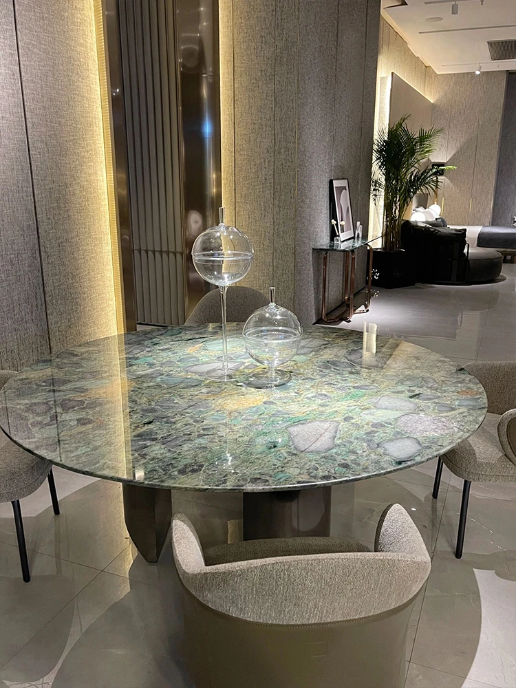 Citrine Natural Emerald Round Dining Table Set - Elegant Italian Luxury for Villas and Spacious Flats - Perfect for Your Dining Room