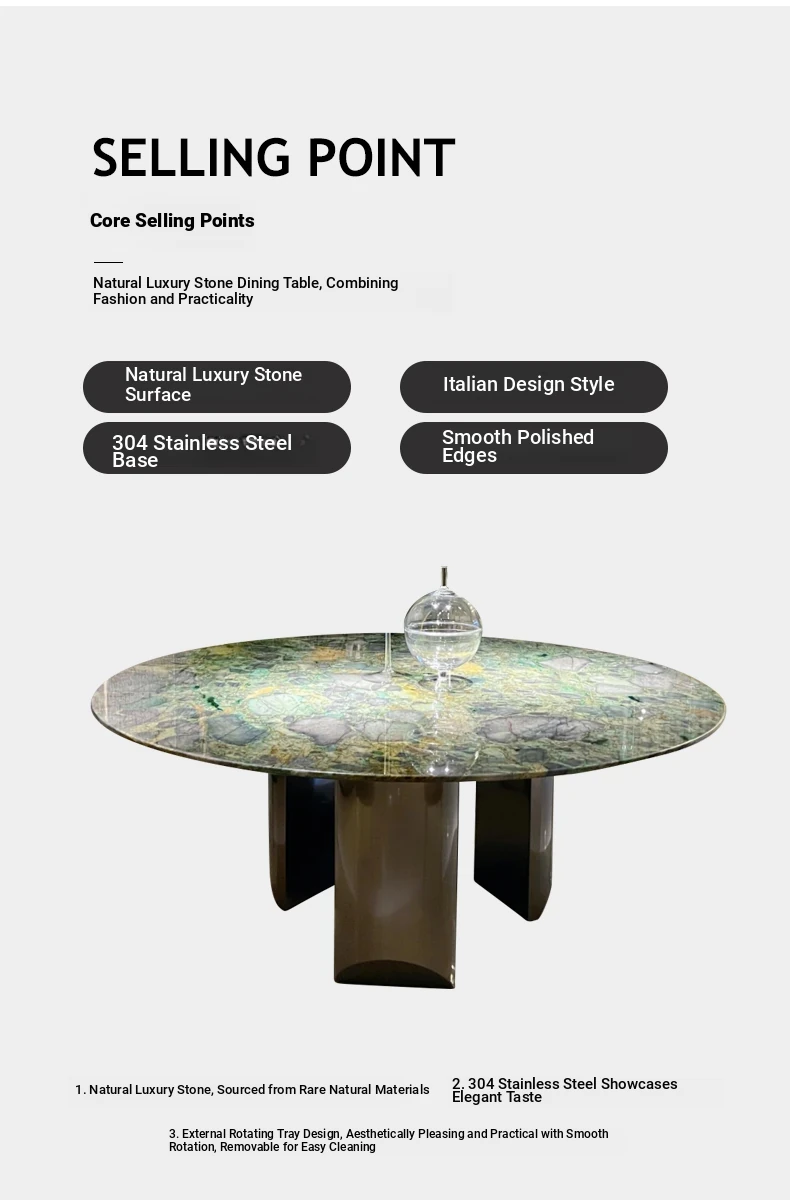 53.15 in +70 turntable +8 chair Emerald Luxury stone dining table (10 for one fake)