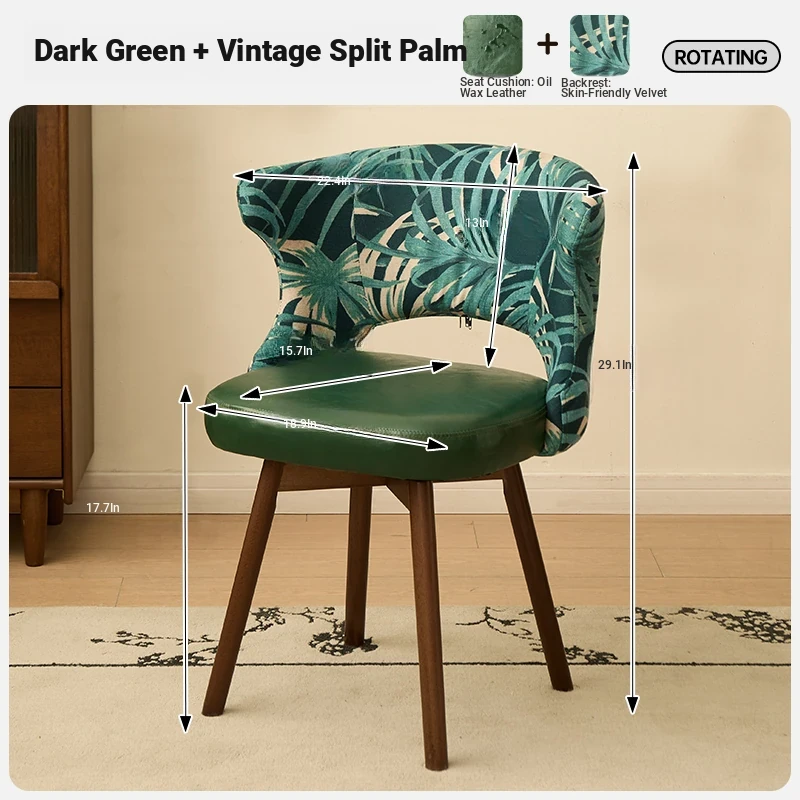 Dark Green + Retro Sanwei Kui (Solid Wood Leg) [360 Rotate]]