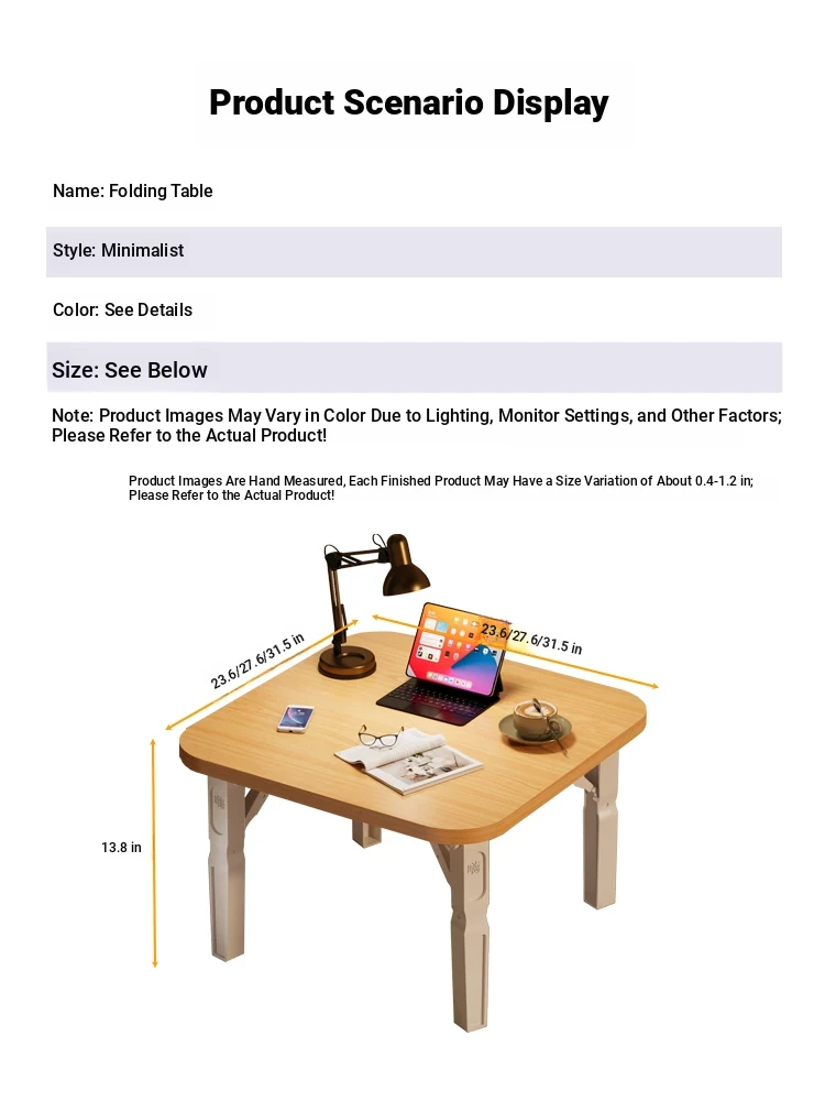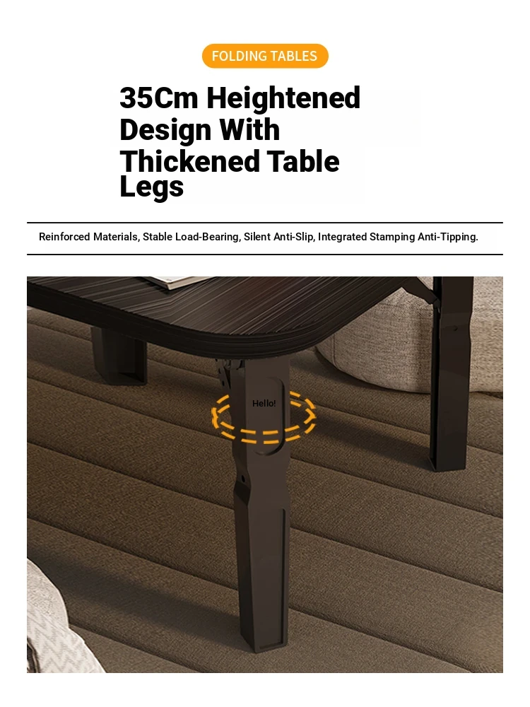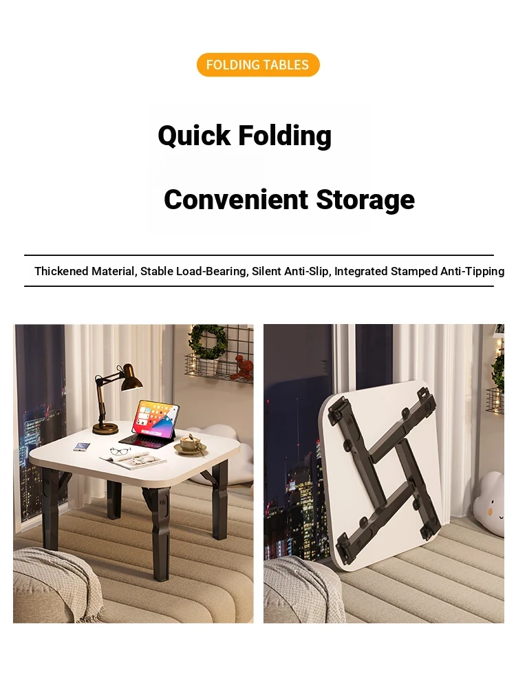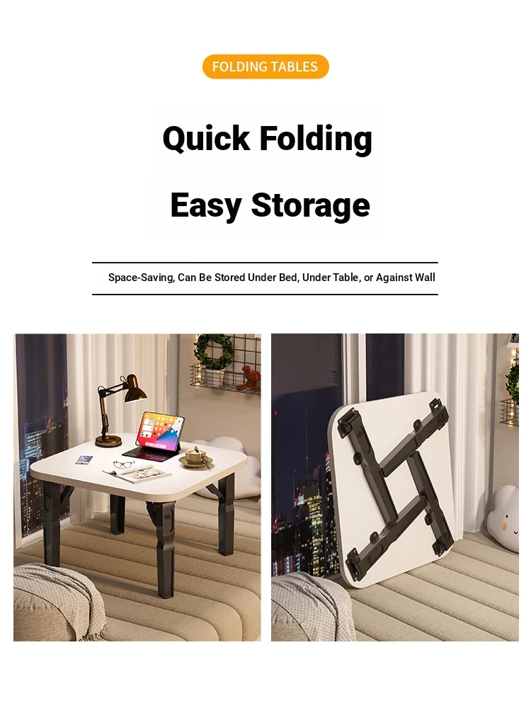 Compact Folding Coffee Table for Bay Windows – Versatile Low Table for Tatami and Bed Use, Ideal for Dining, Work, and Relaxation in Small Spaces. Perfect for Home Use!
