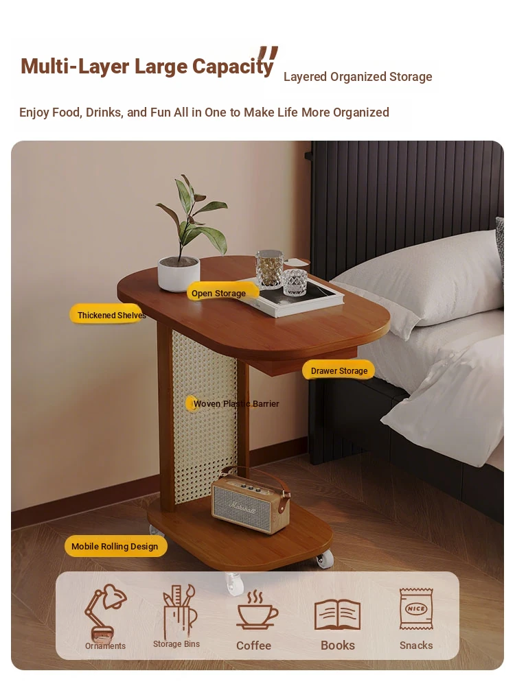 Compact Solid Wood Nightstand - Stylish and Portable Bedside Storage Table for Bedrooms, Perfect as a Small Side Table or Coffee Table by Sofa.