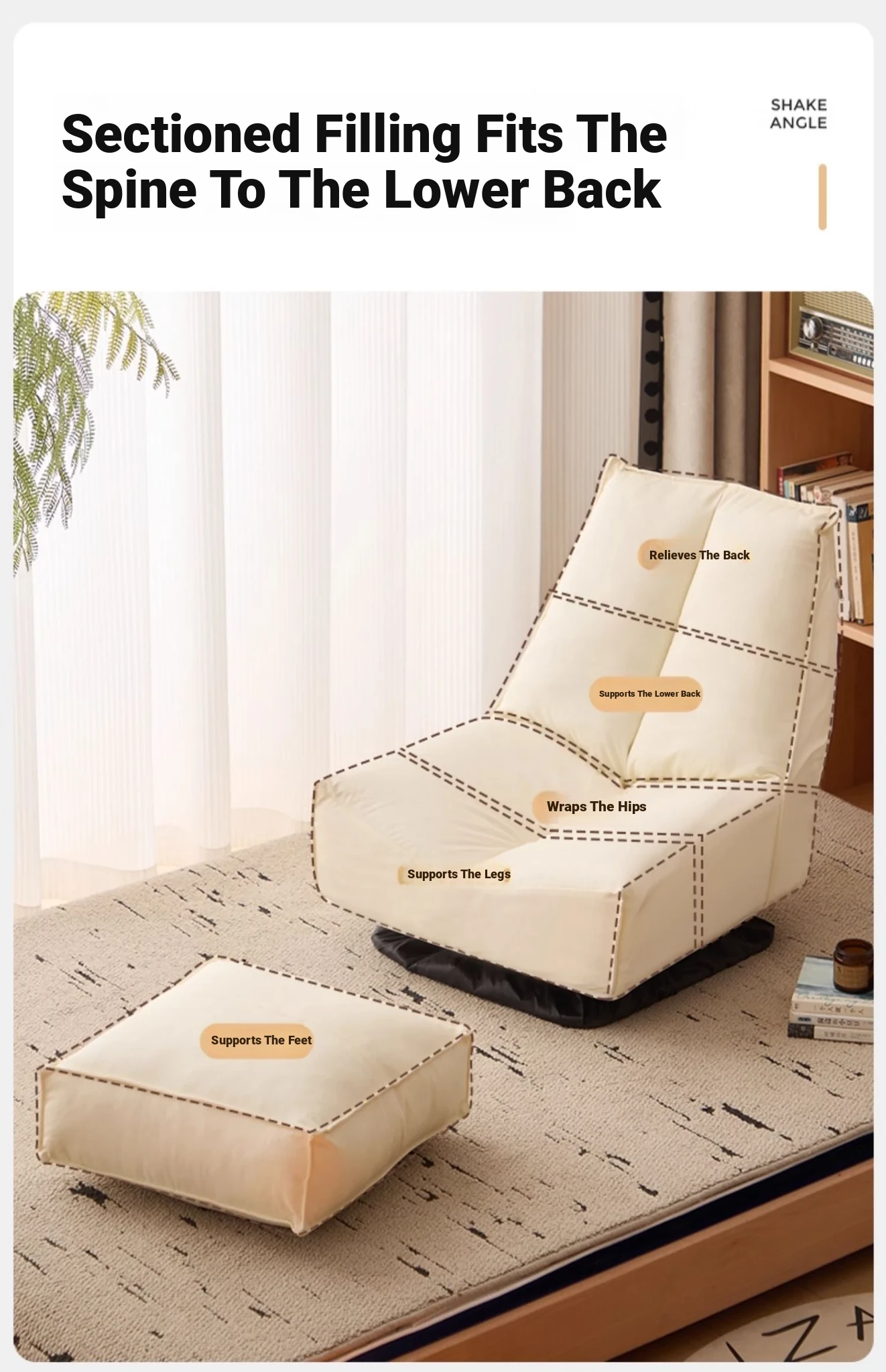 Convertible Lazy Sofa Chair - Reclining Tatami Armchair for Living Room - Rotatable Reading Chair with Back Support - Perfect for Relaxation and Leisure Activities