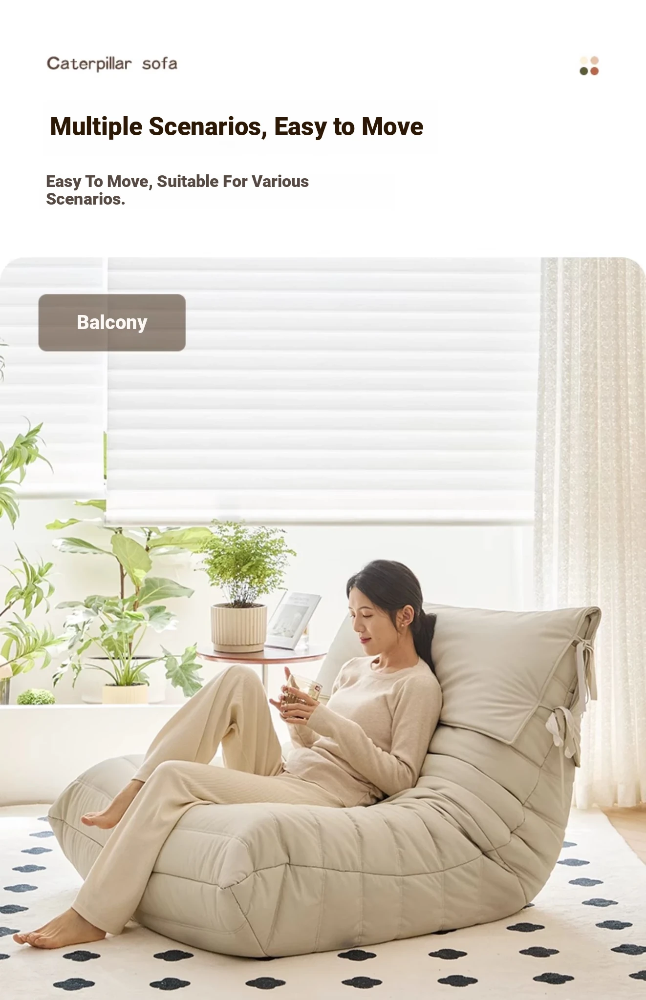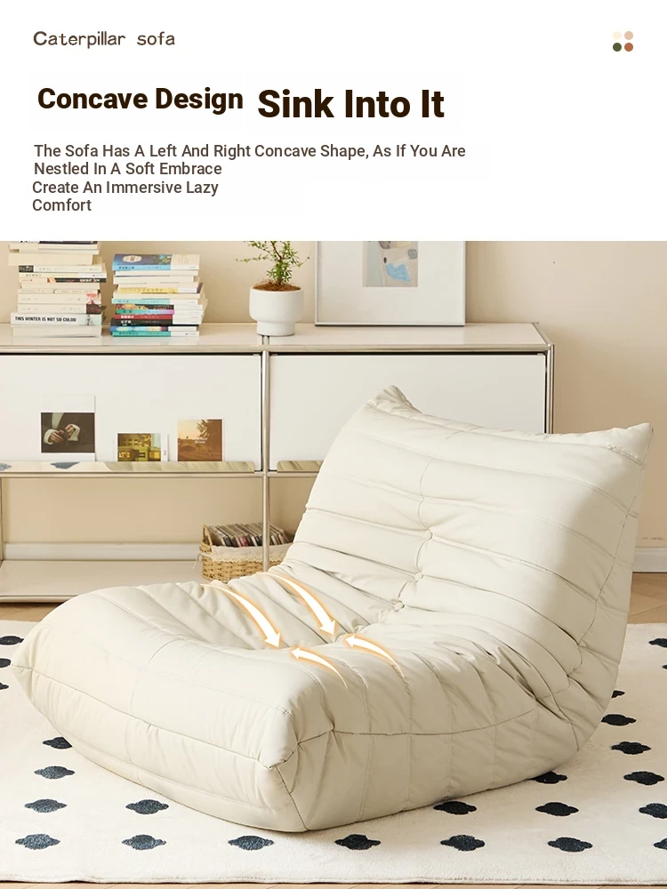 Cozy Lazy Sofa Chair for Balcony - Single-Seat Tatami Lounge Chair, Perfect for Small Spaces, Relax in Style with Our Caterpillar-Inspired Design