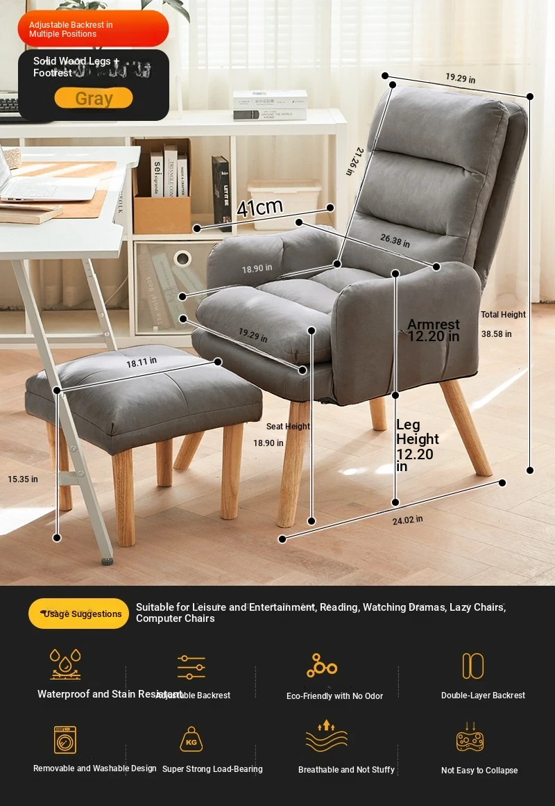 Grey + pedal (no-wash technology cloth) [backrest multi-gear adjustable] [solid wood leg]]