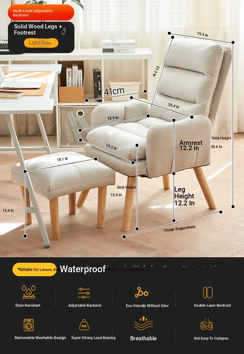 Rice Gray + pedal (wash-free technology cloth) [backrest multi-gear adjustable] [solid wood leg]]