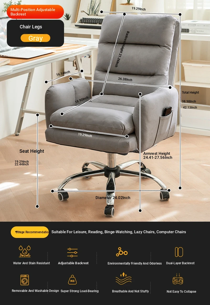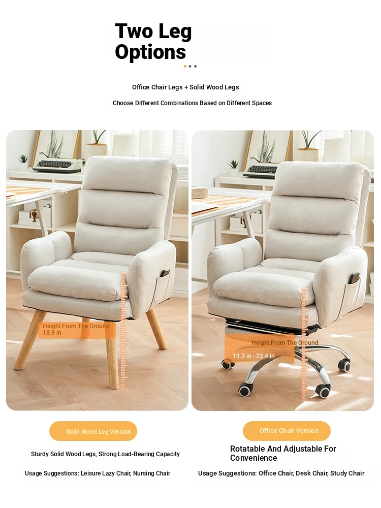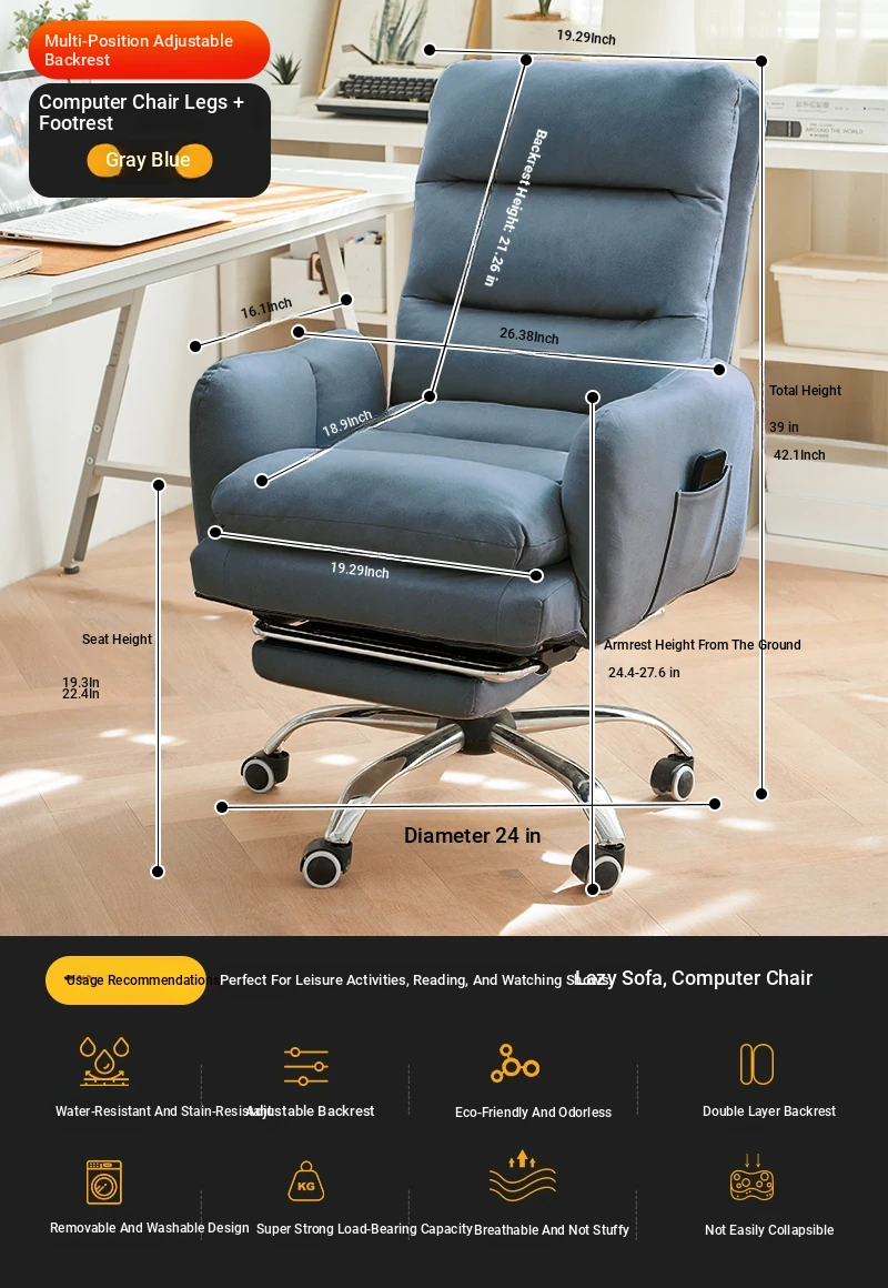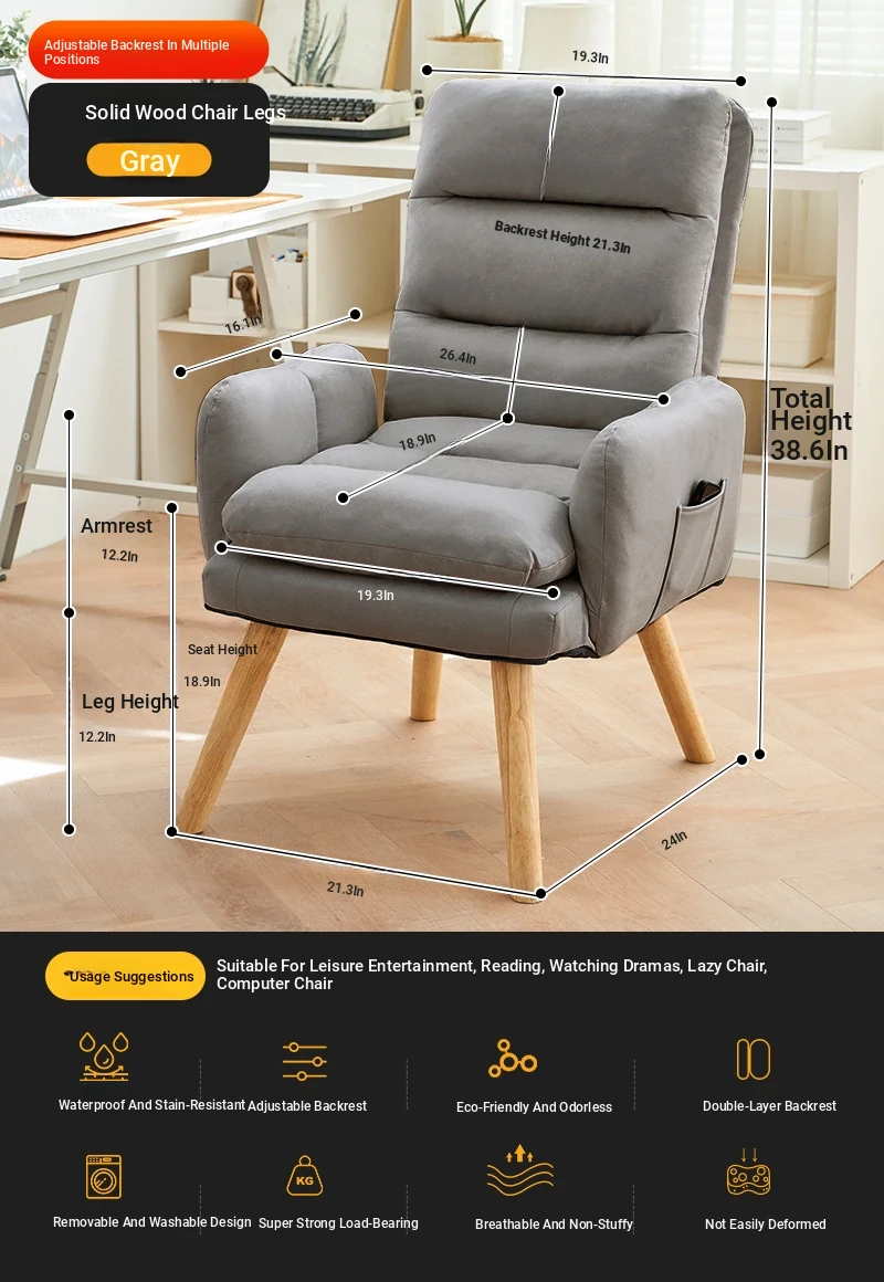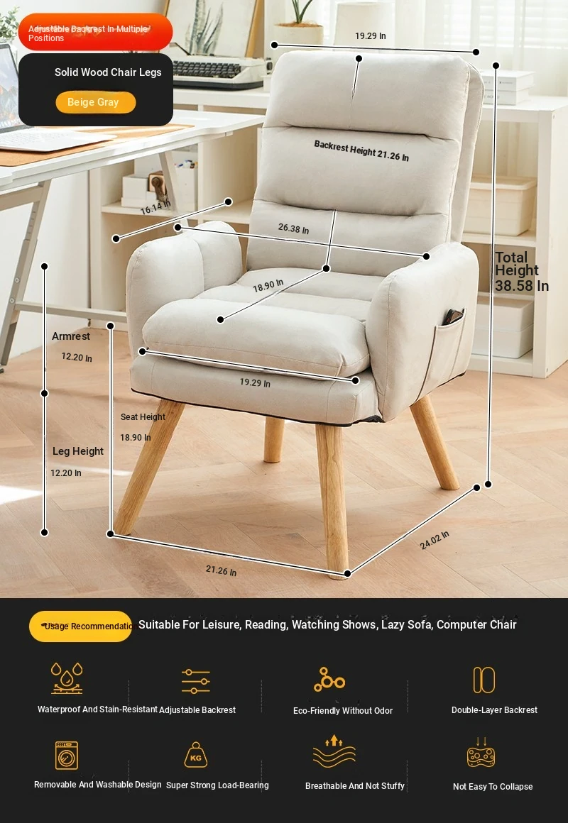 Cozy Lazy Sofa Chair for Bedroom - Comfortable Home Computer Desk Chair, Ideal for Long Hours of Work and Study with Supportive Backrest