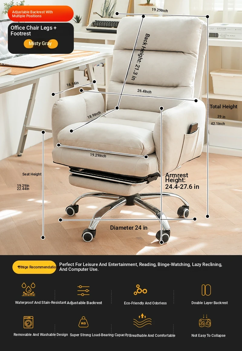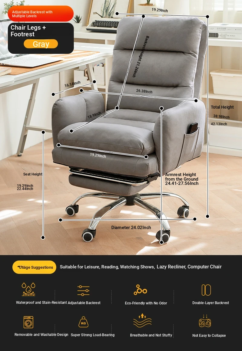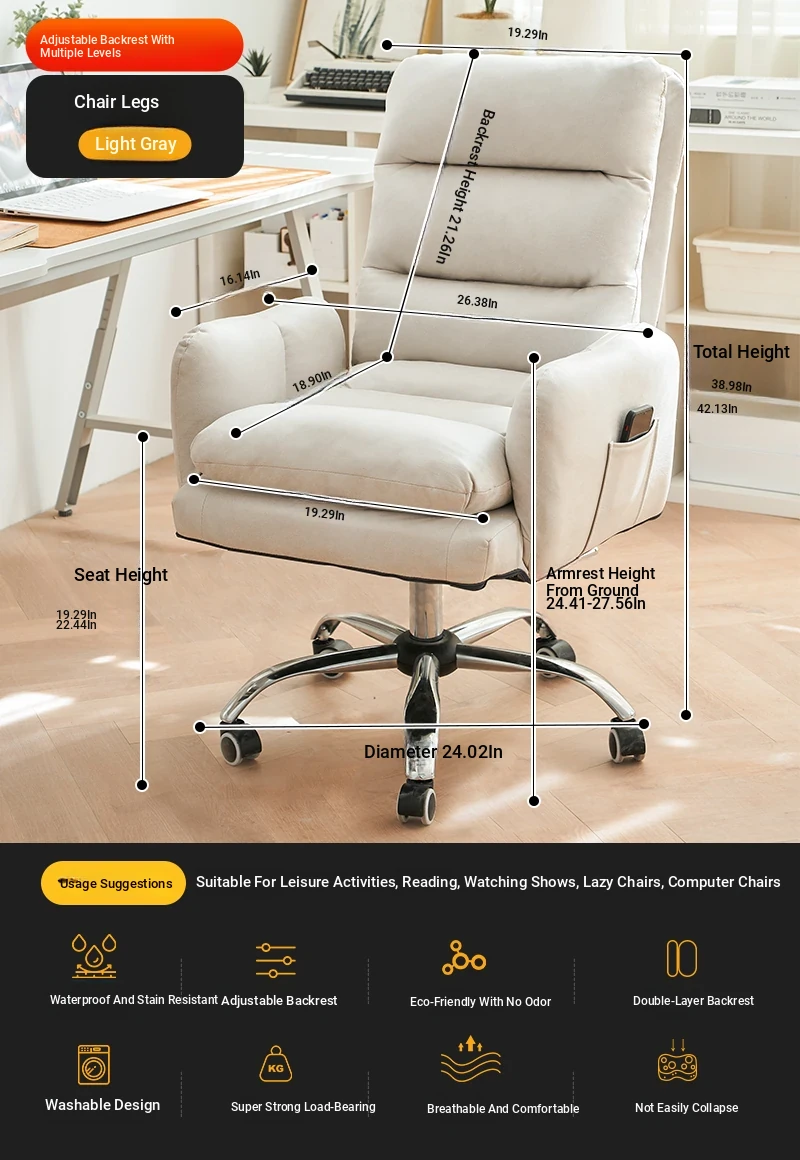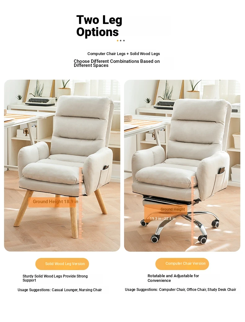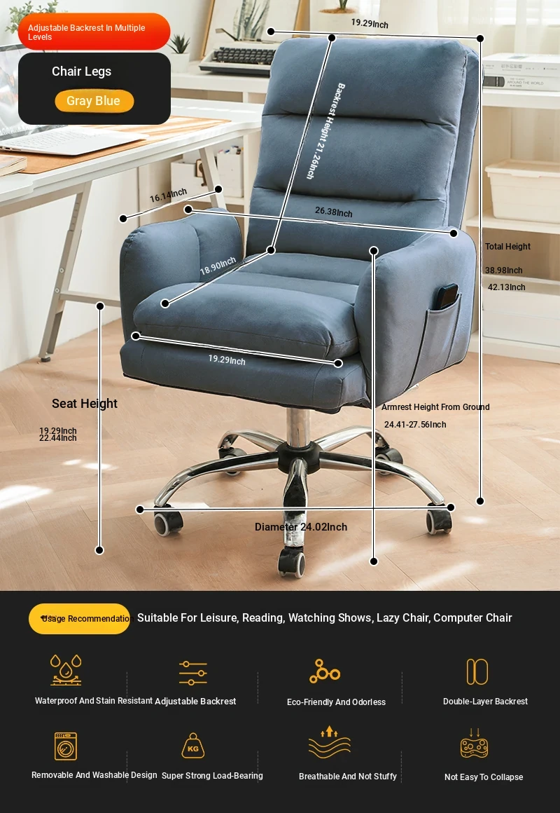Cozy Lazy Sofa Chair for Bedroom - Comfortable Home Computer Desk Chair, Ideal for Long Hours of Work and Study with Supportive Backrest