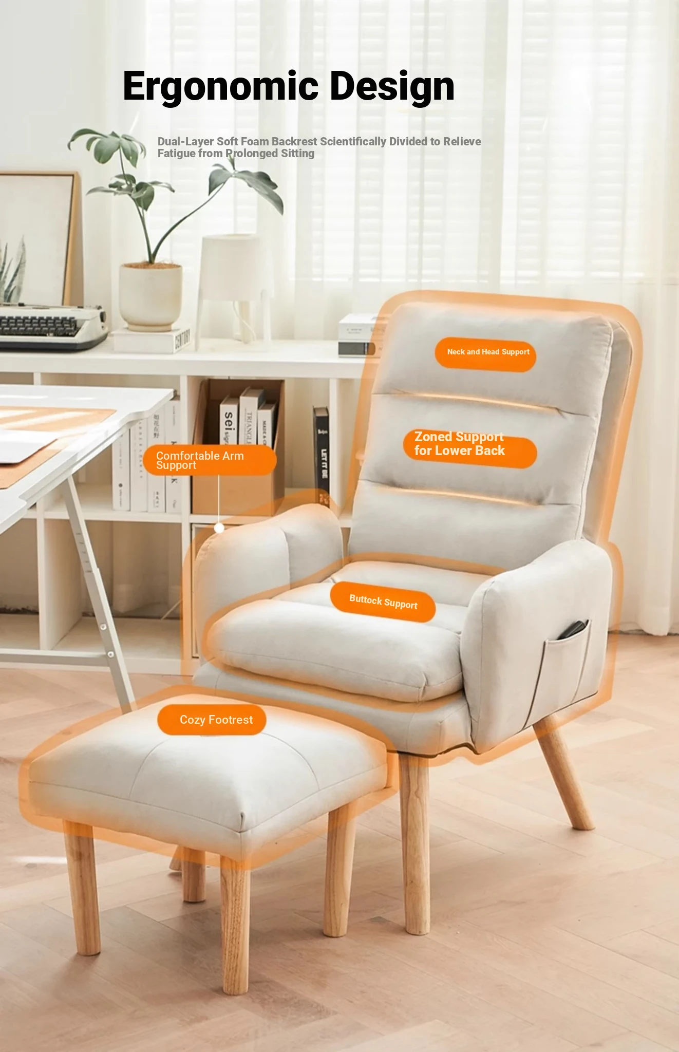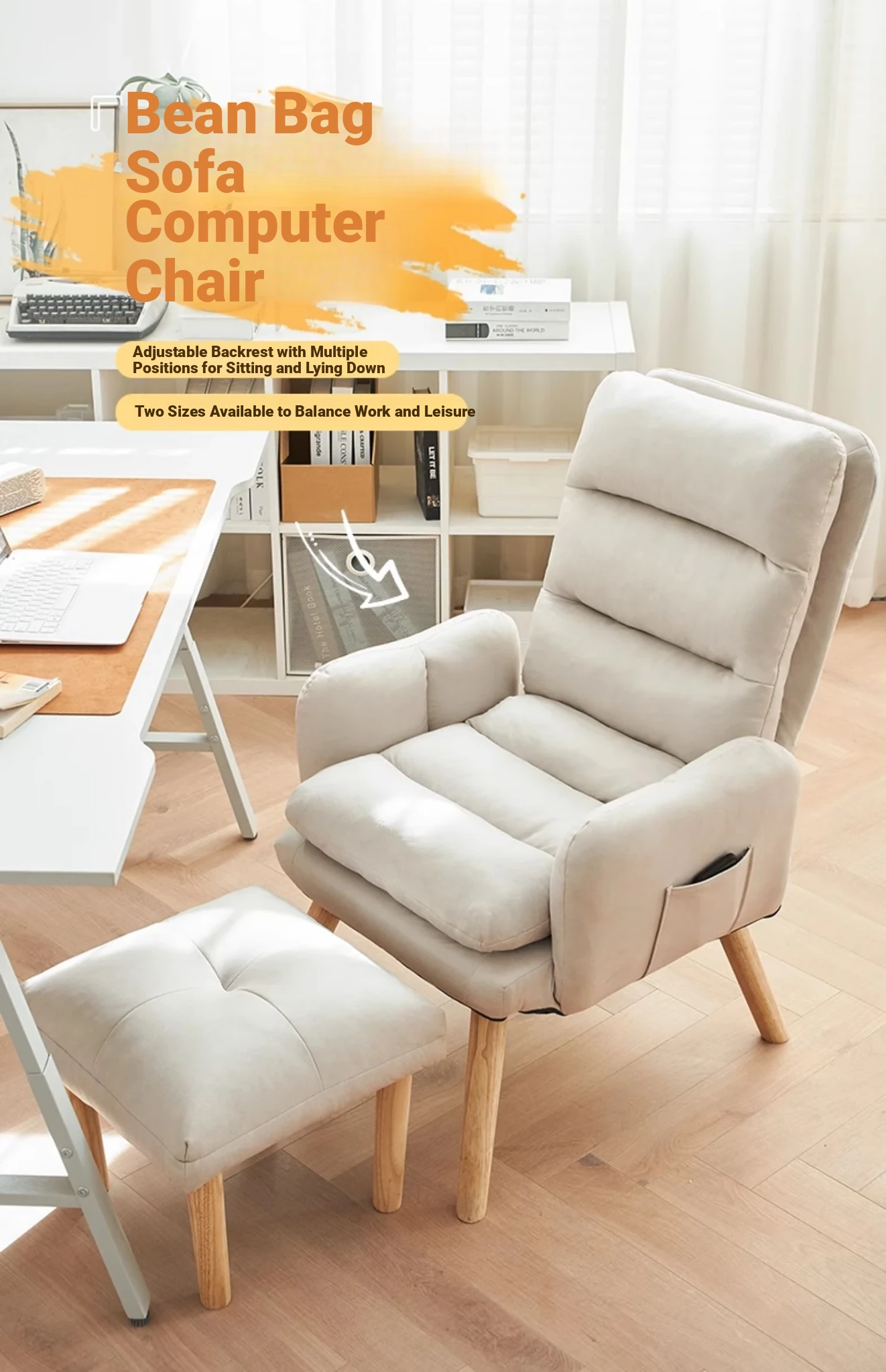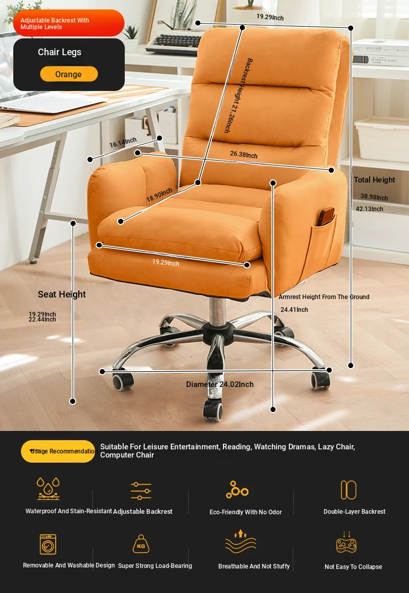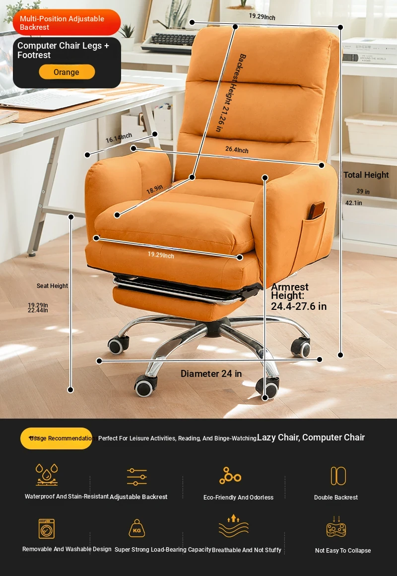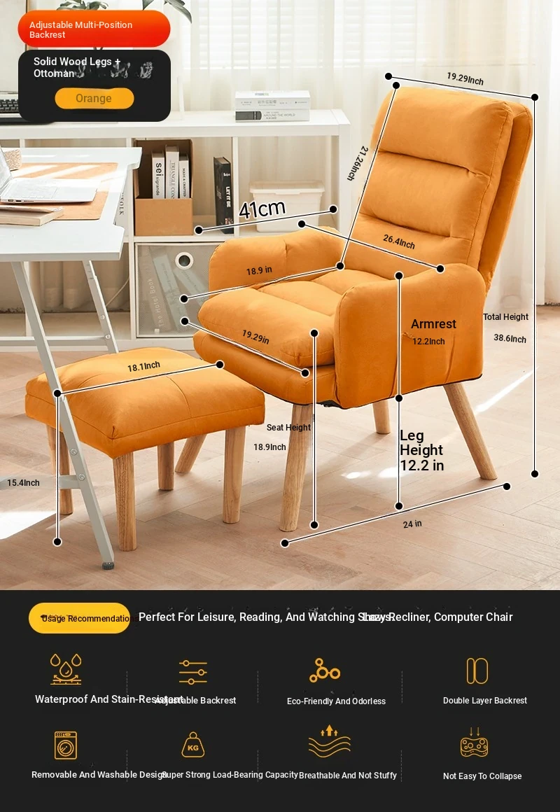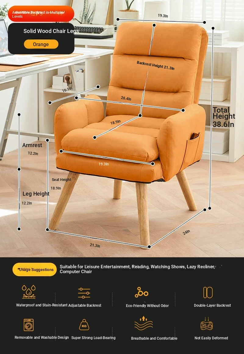 Orange + Foot (No-Wash Technology Cloth) [Backrest Multi-Gear Adjustable] [Solid Wood Leg]]