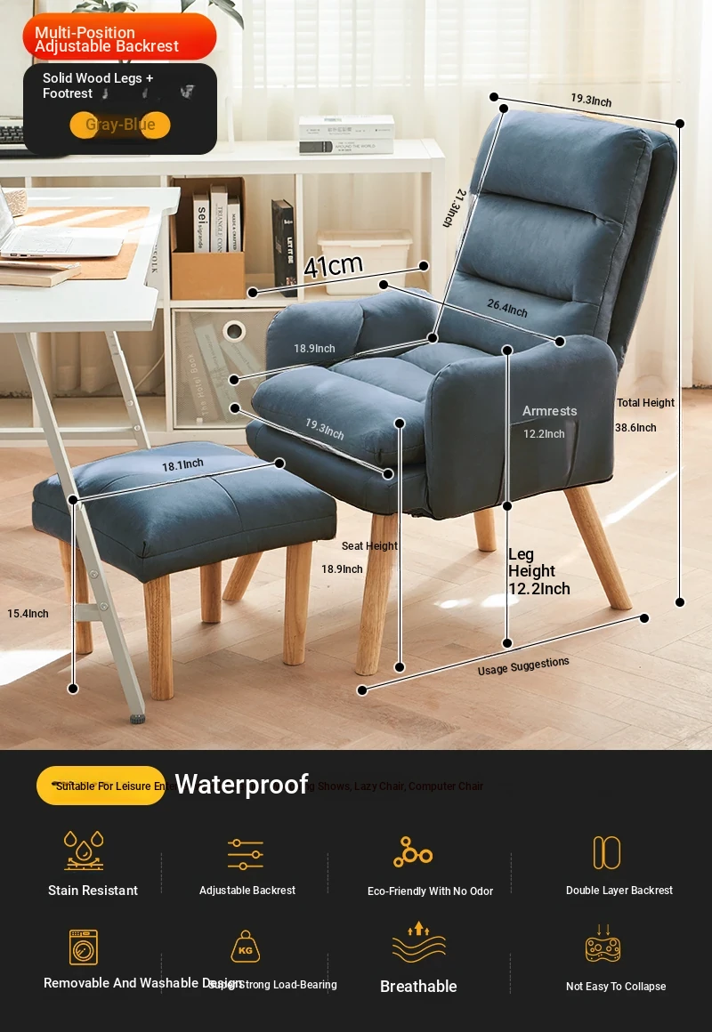 Gray blue + pedal (no-wash technology cloth) [backrest multi-gear adjustable] [solid wood leg]]