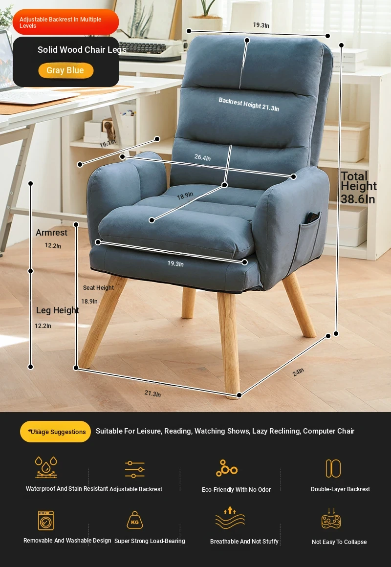 Gray Blue (washable technology cloth) [backrest multi-adjustable] [solid wood leg]]