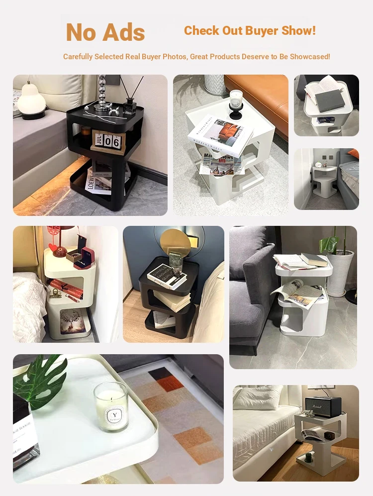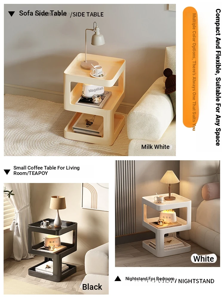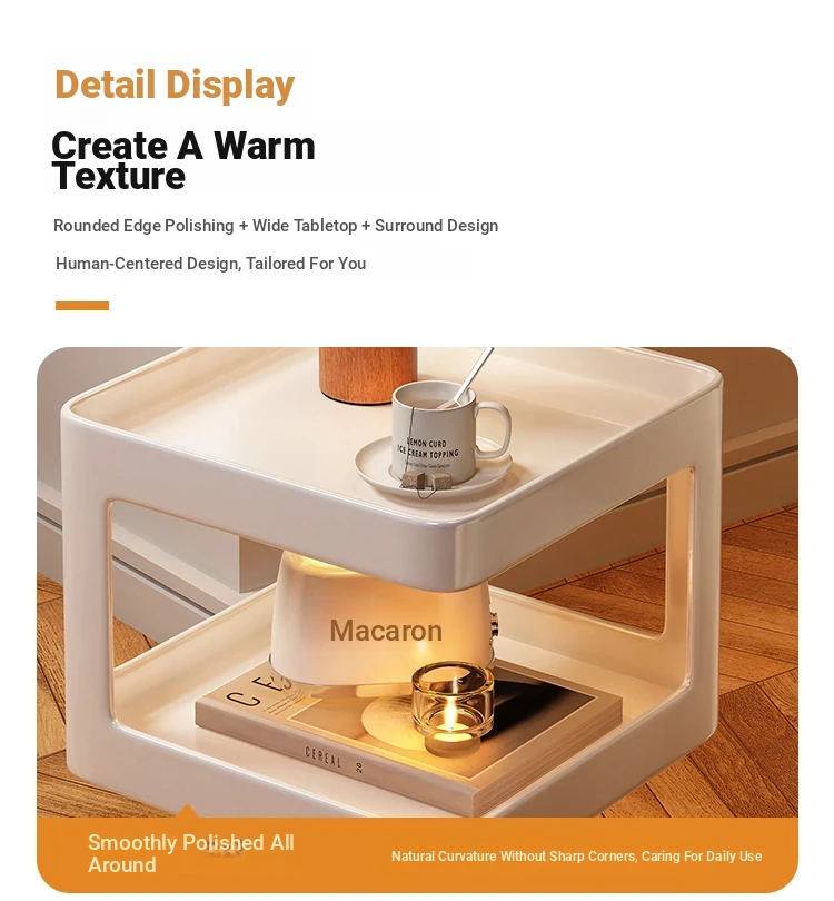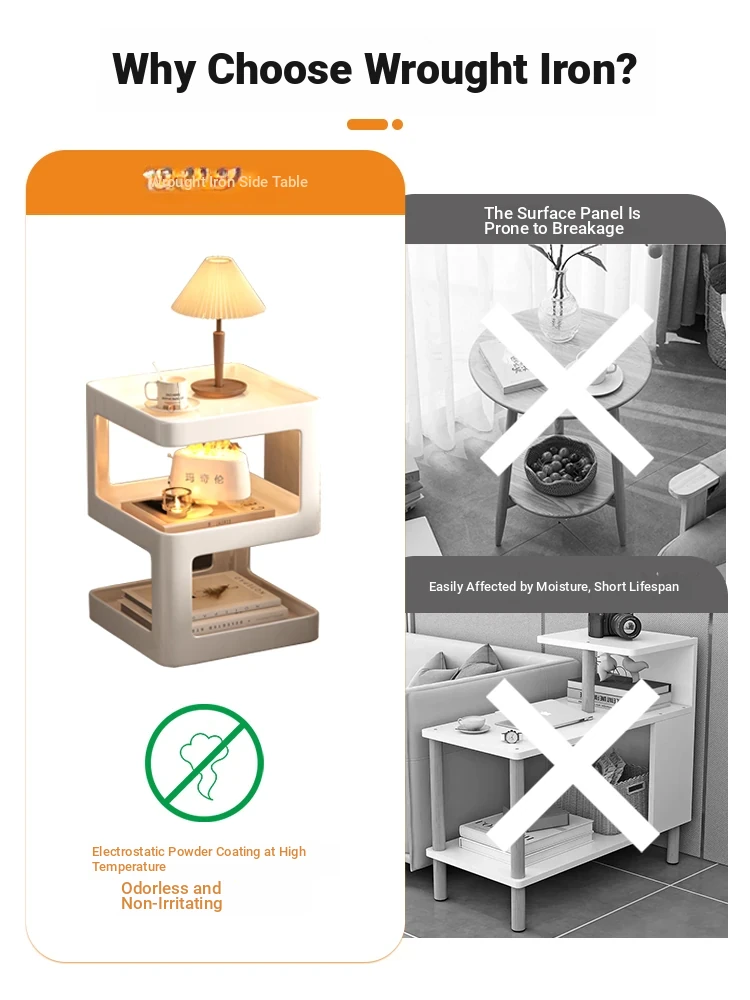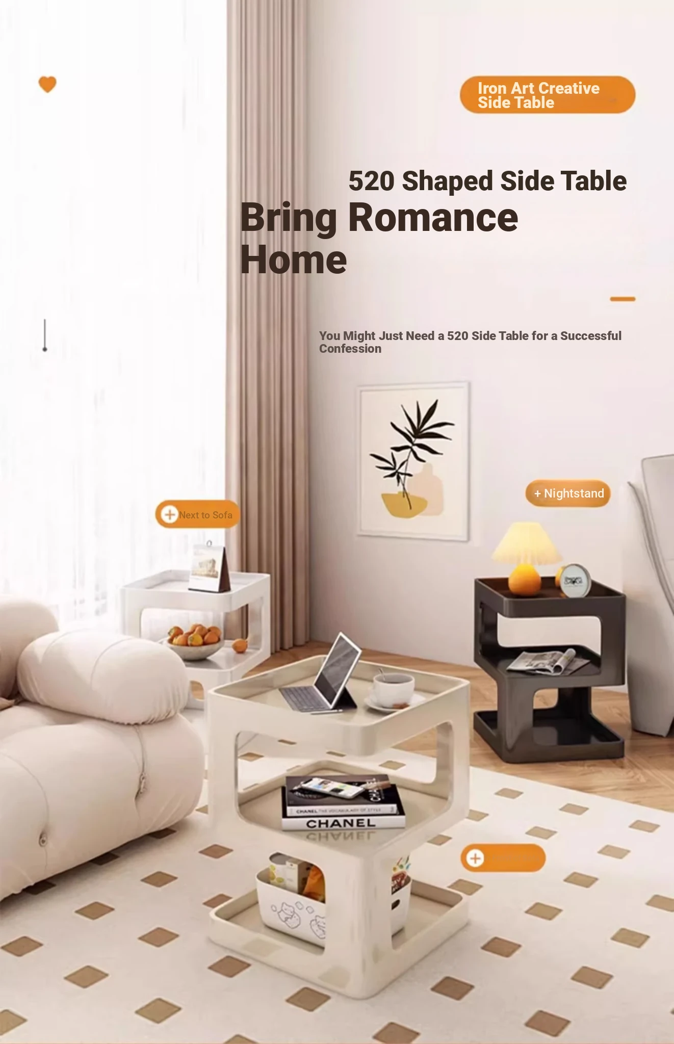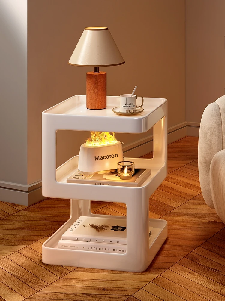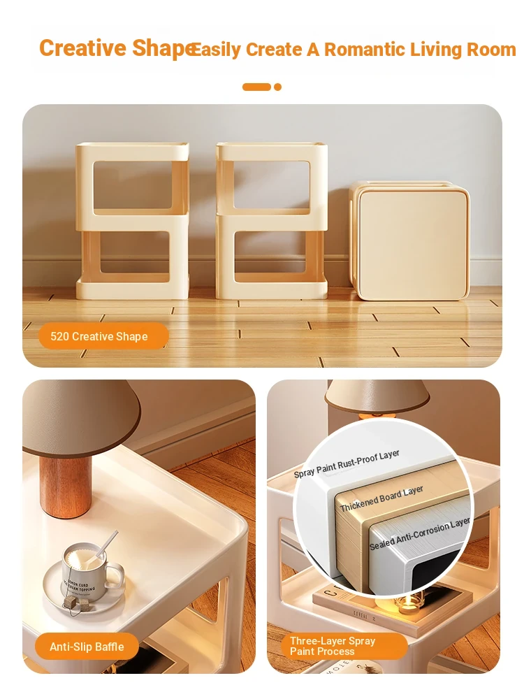 Creamy Wind Sofa Side Table - Creative Luxury Coffee Table for Living Room, Stylish Iron Bedside Cabinet, Minimalist Bedroom Corner Table