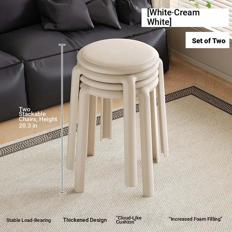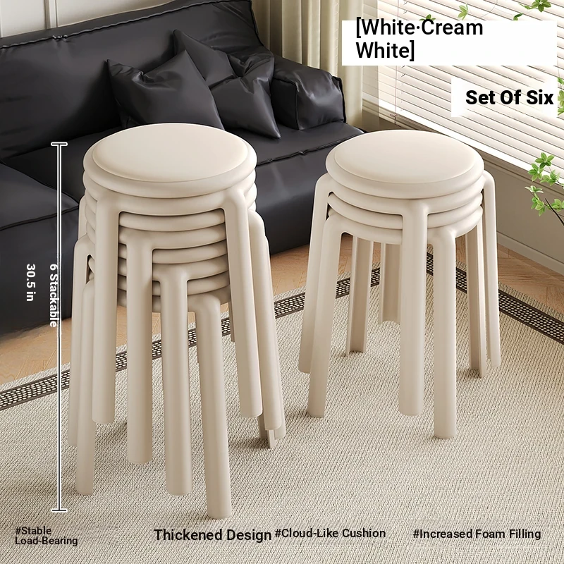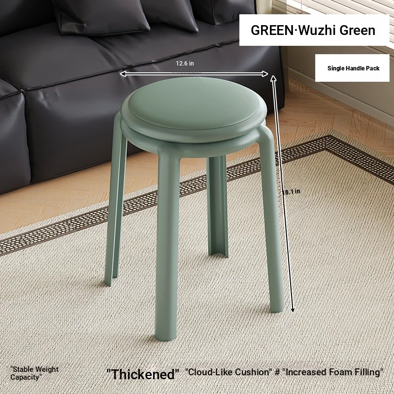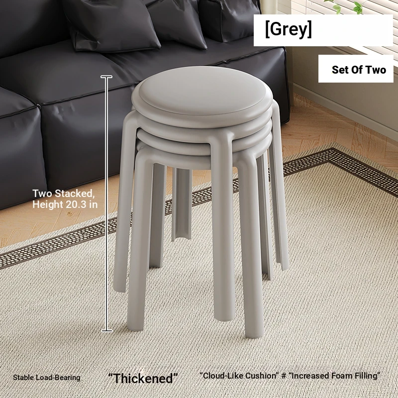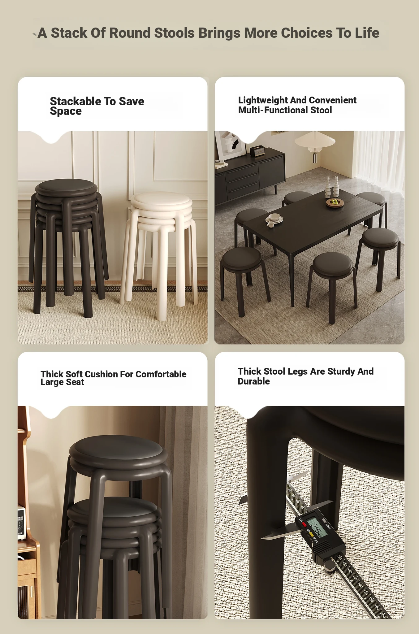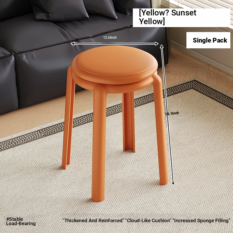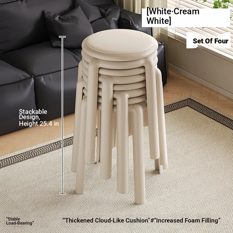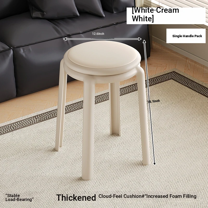 Durable Stackable Soft Padded Plastic Stool - Thickened Round Home Chair for Dining Room and Living Room, Perfect as Extra High Seat