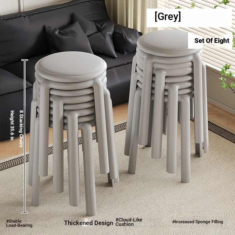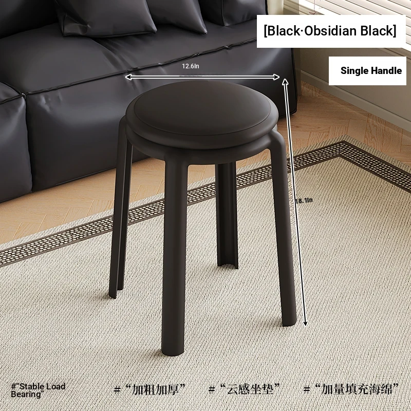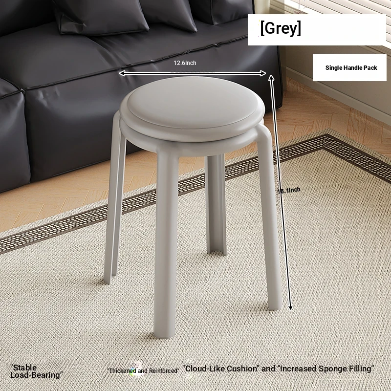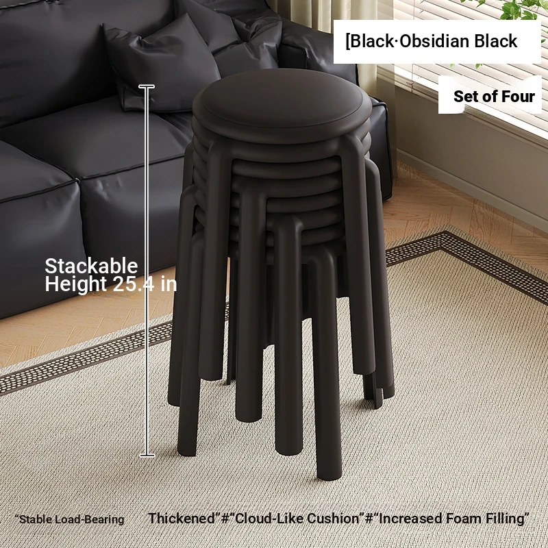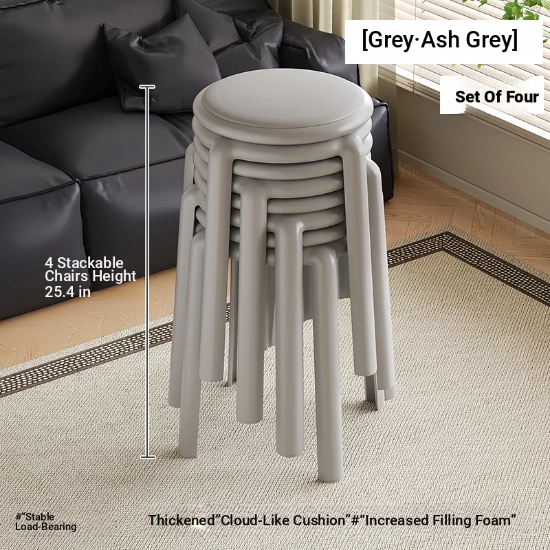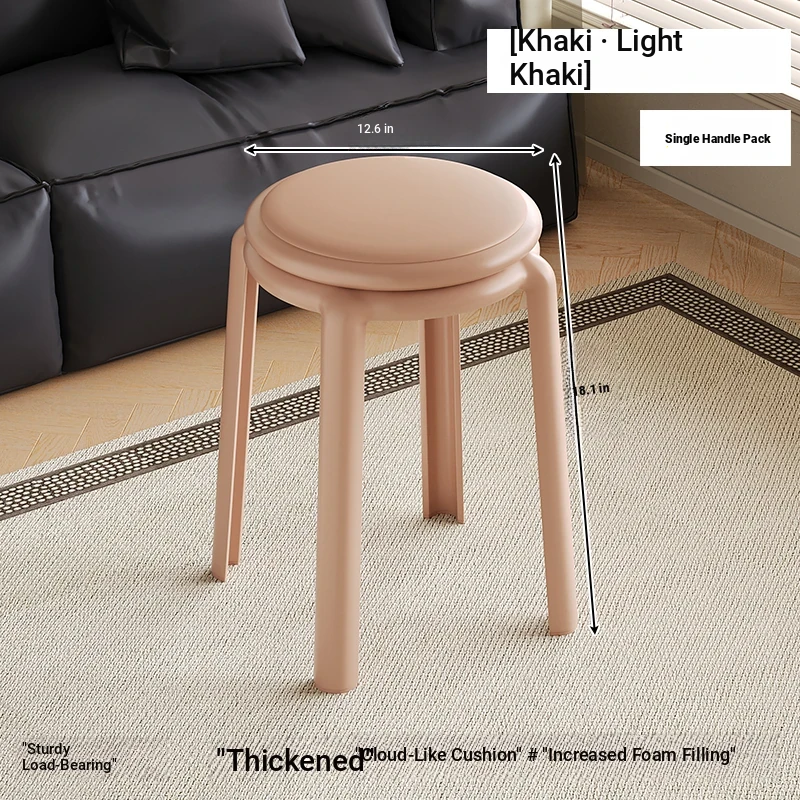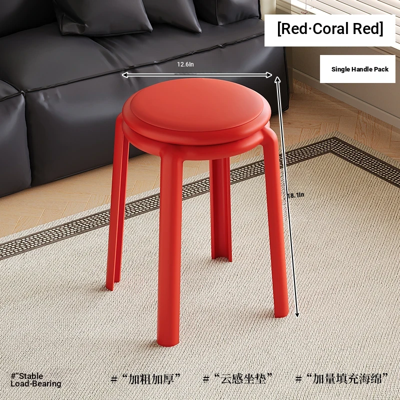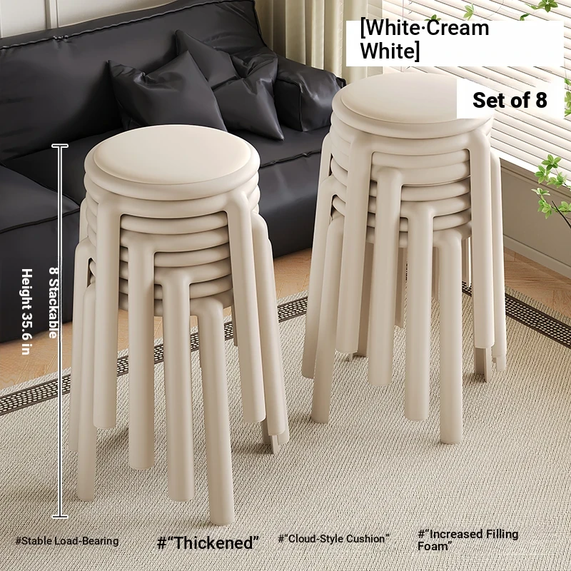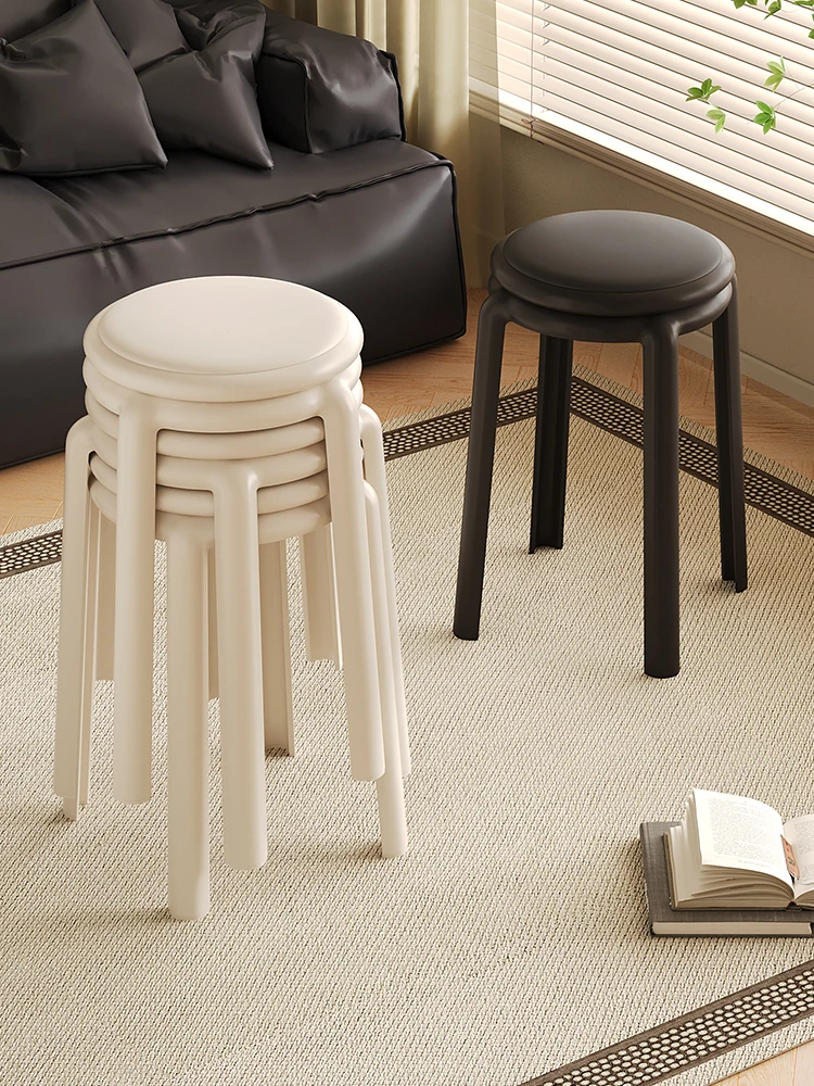 Durable Stackable Soft Padded Plastic Stool - Thickened Round Home Chair for Dining Room and Living Room, Perfect as Extra High Seat