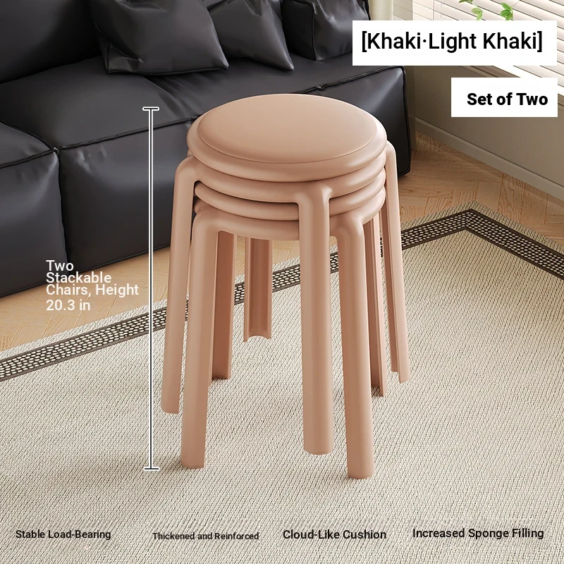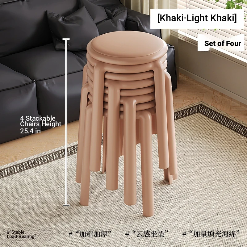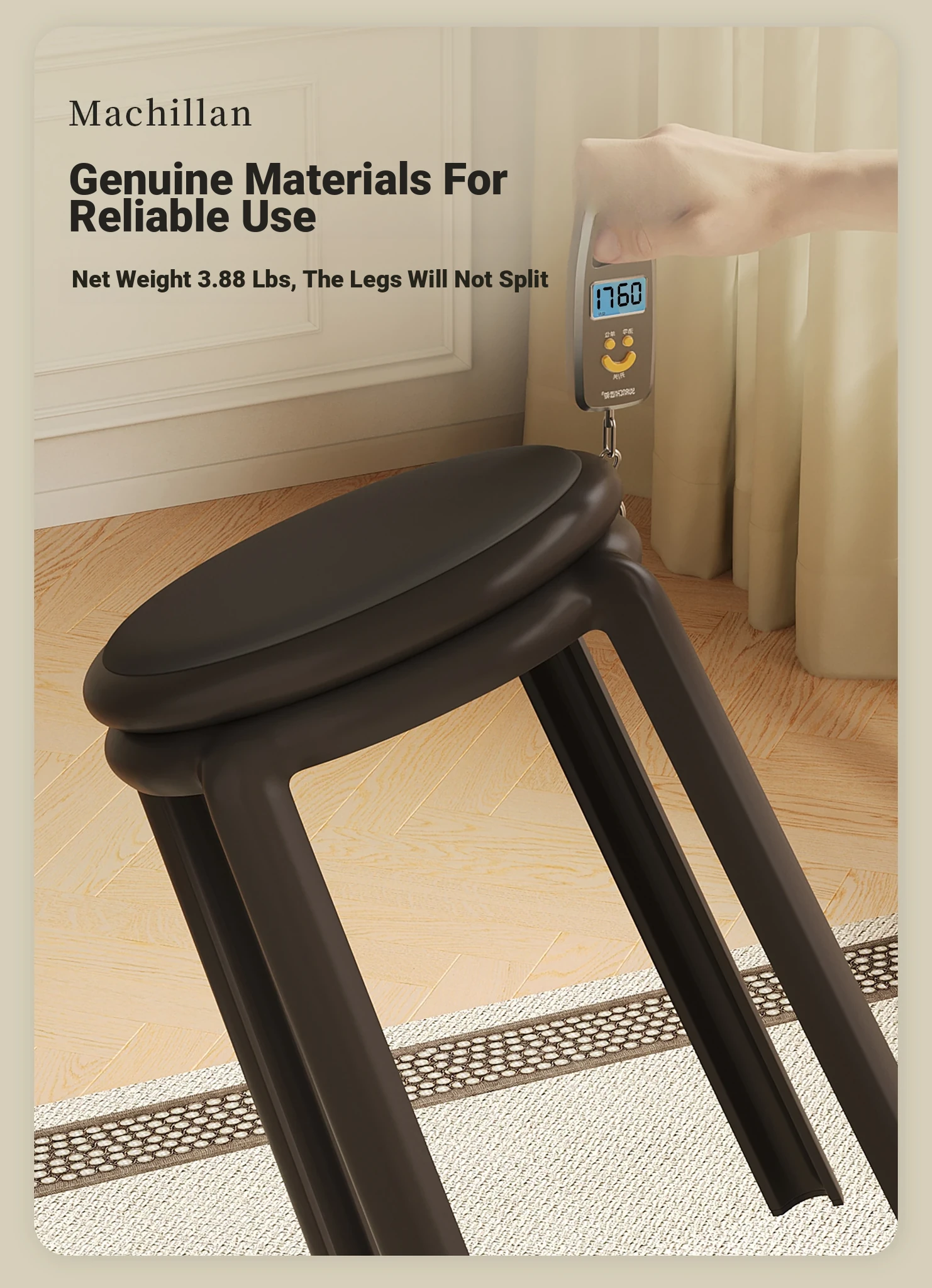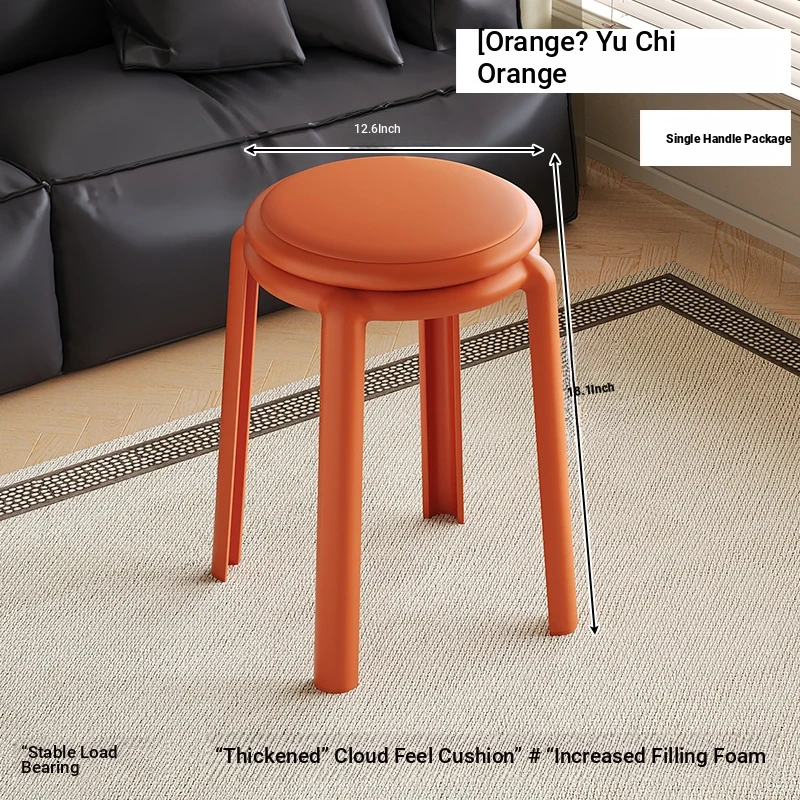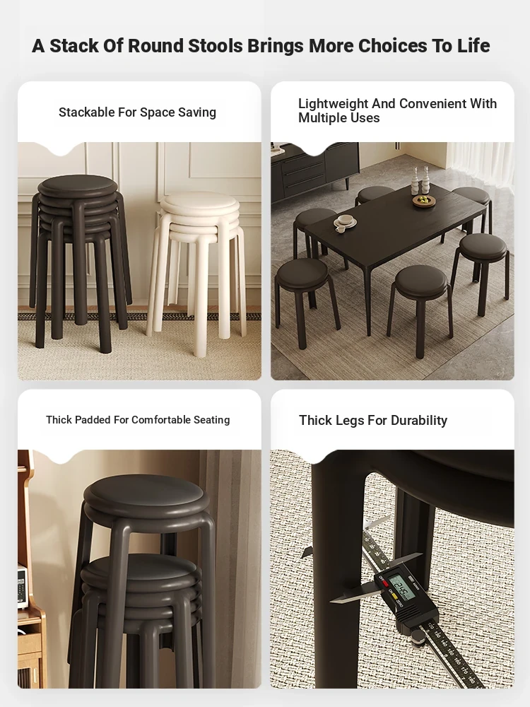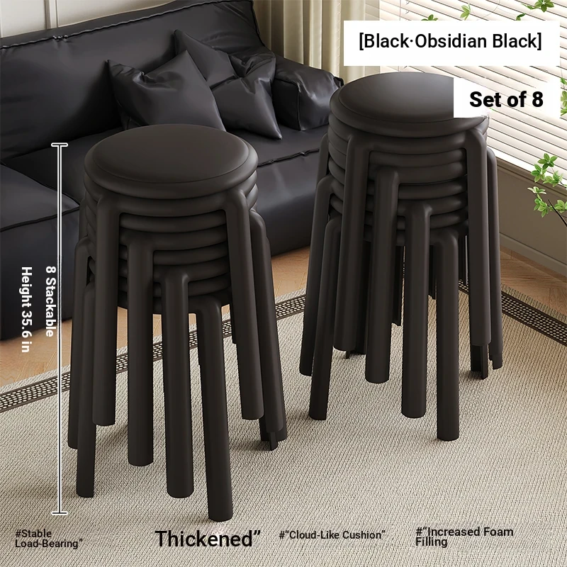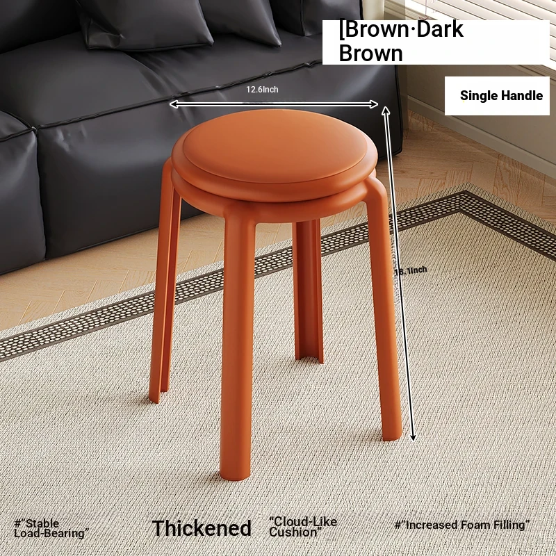 Durable Stackable Soft Padded Plastic Stool - Thickened Round Home Chair for Dining Room and Living Room, Perfect as Extra High Seat