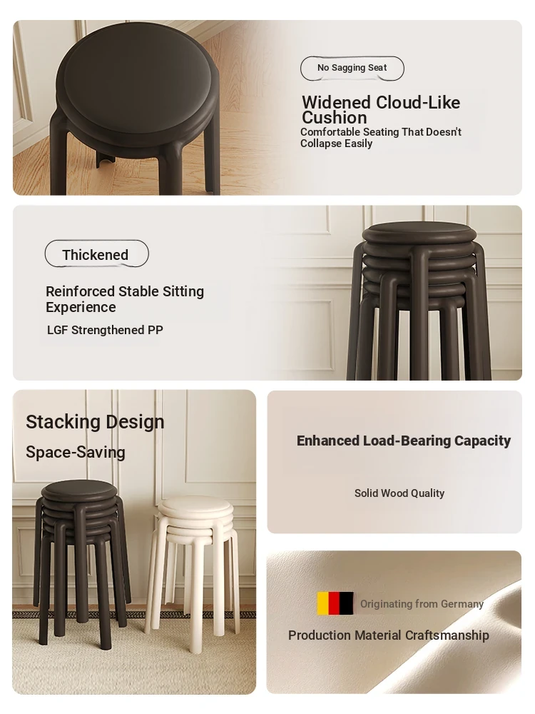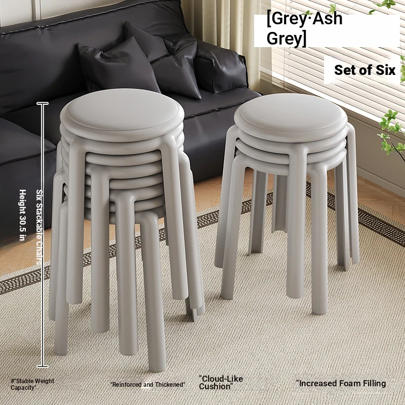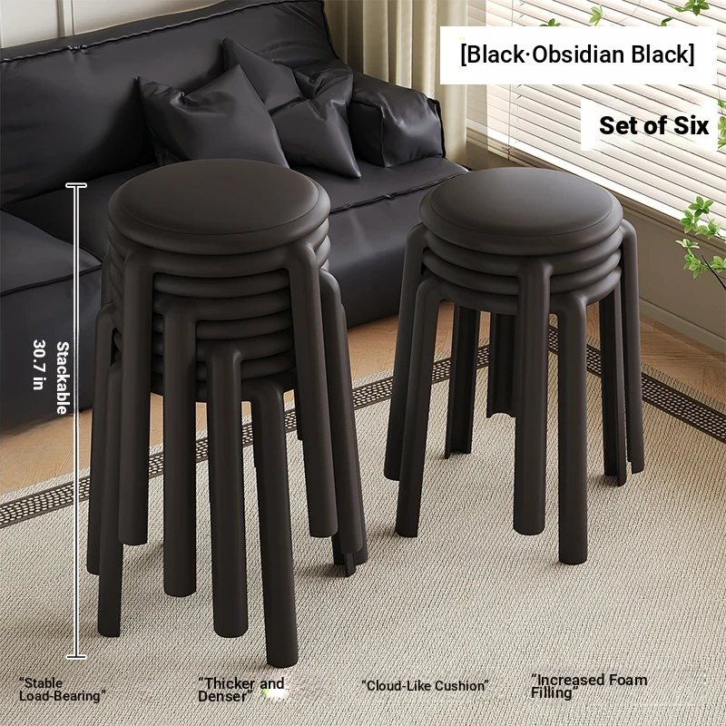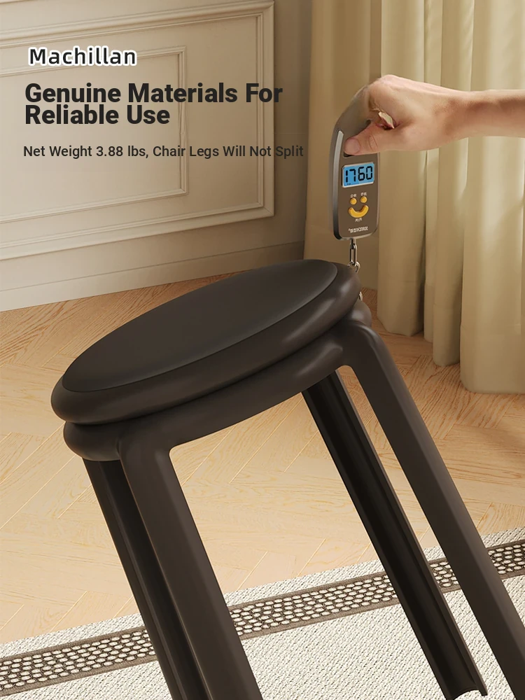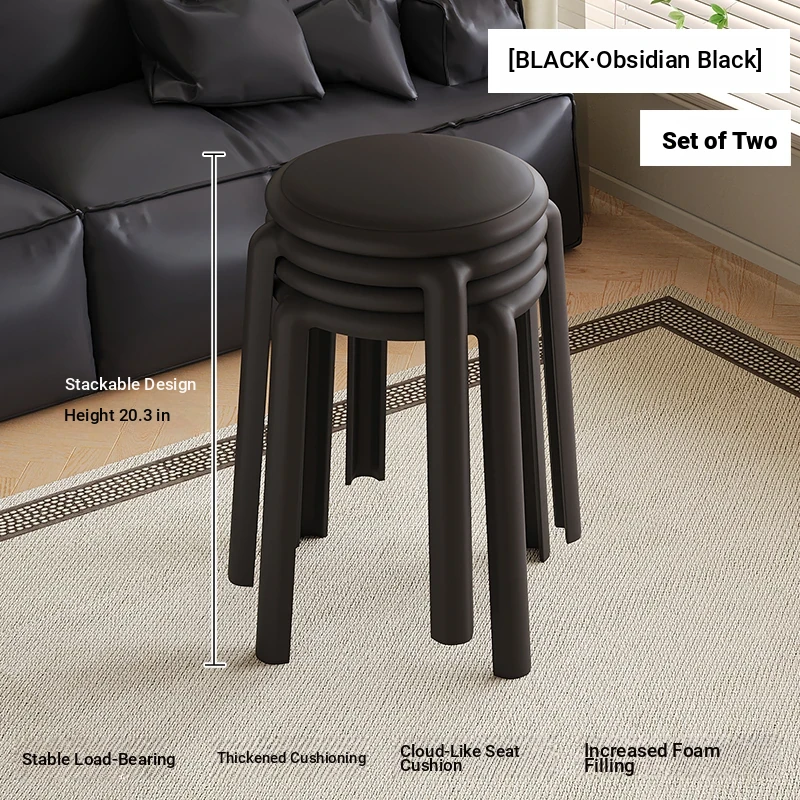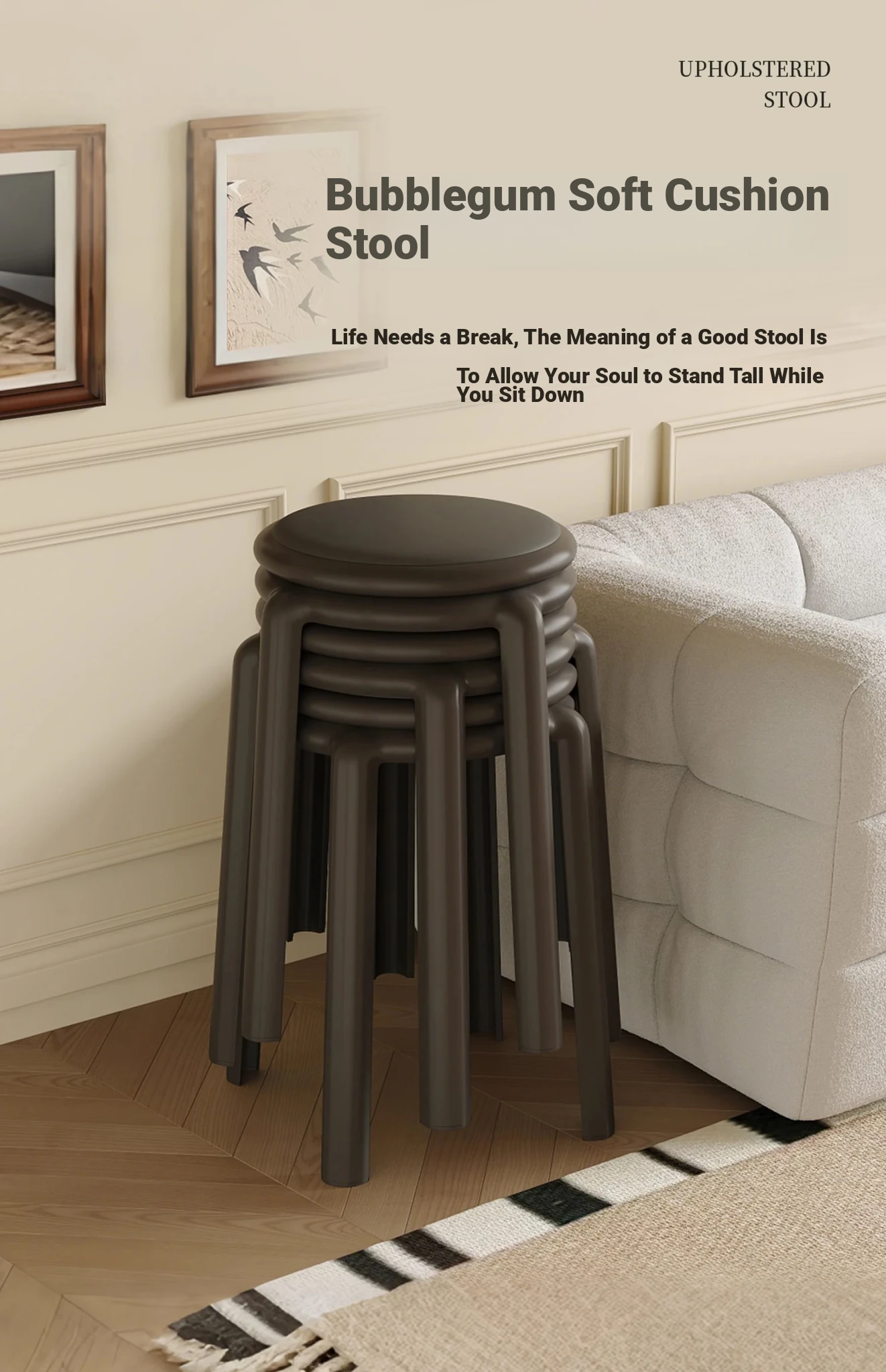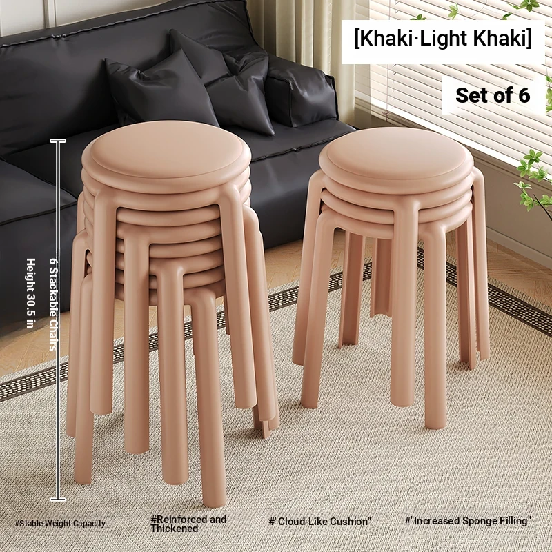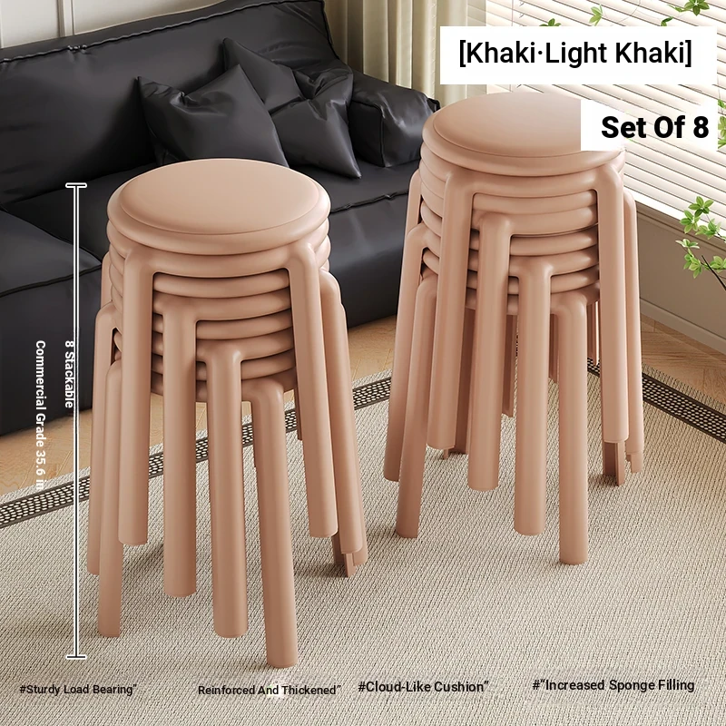 Durable Stackable Soft Padded Plastic Stool - Thickened Round Home Chair for Dining Room and Living Room, Perfect as Extra High Seat