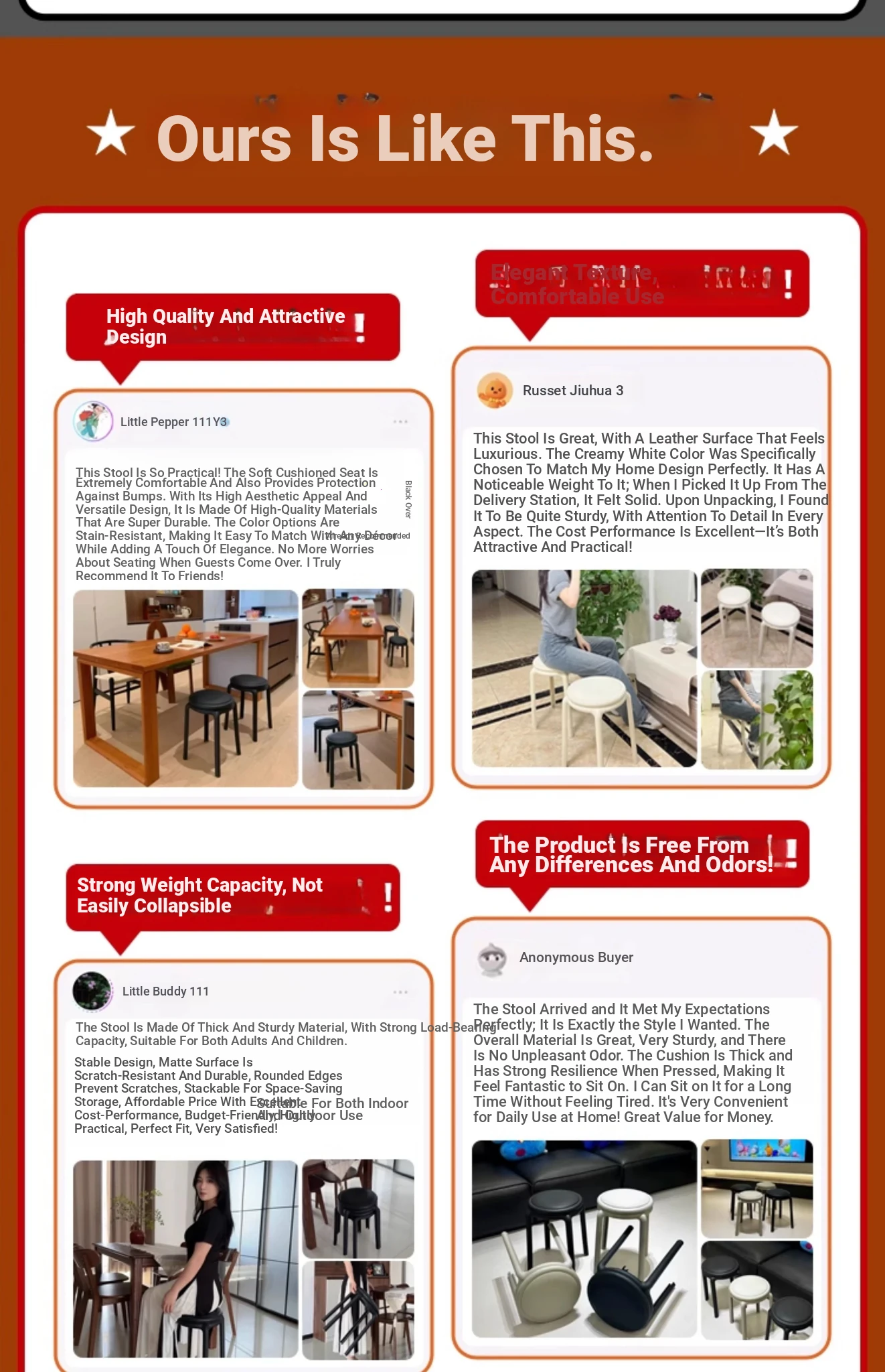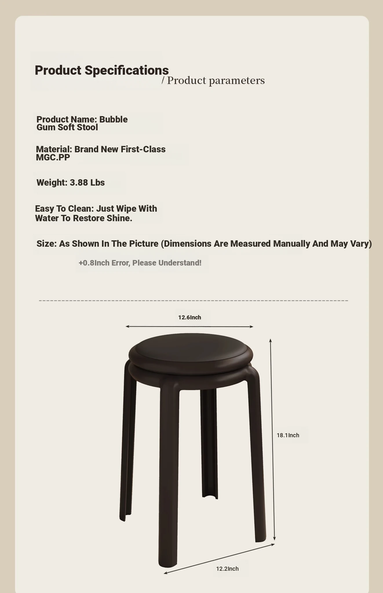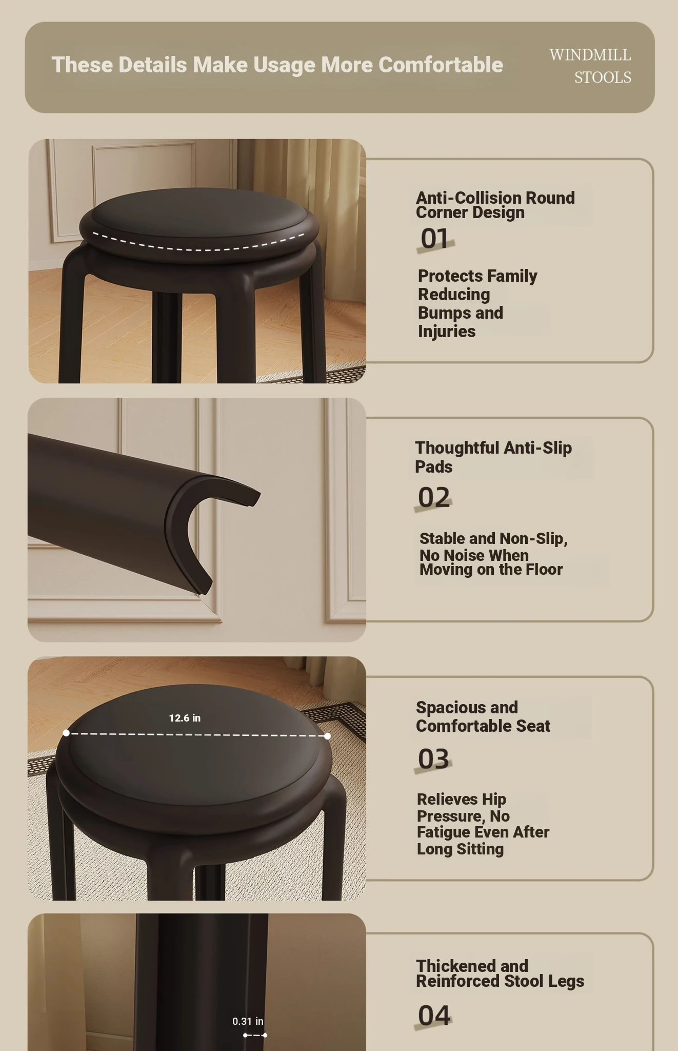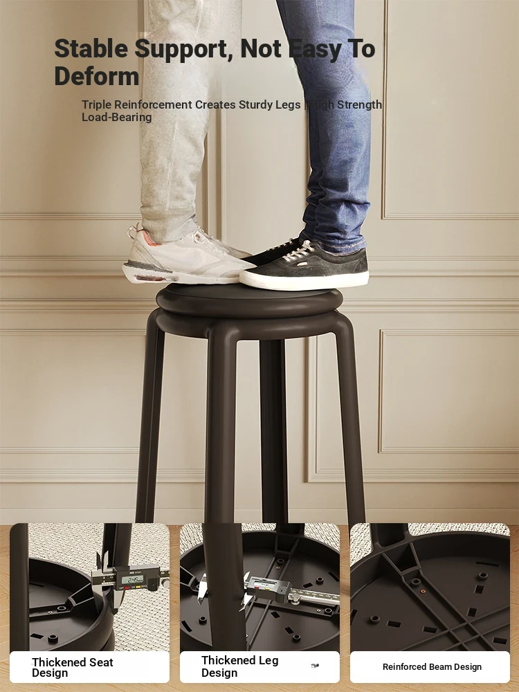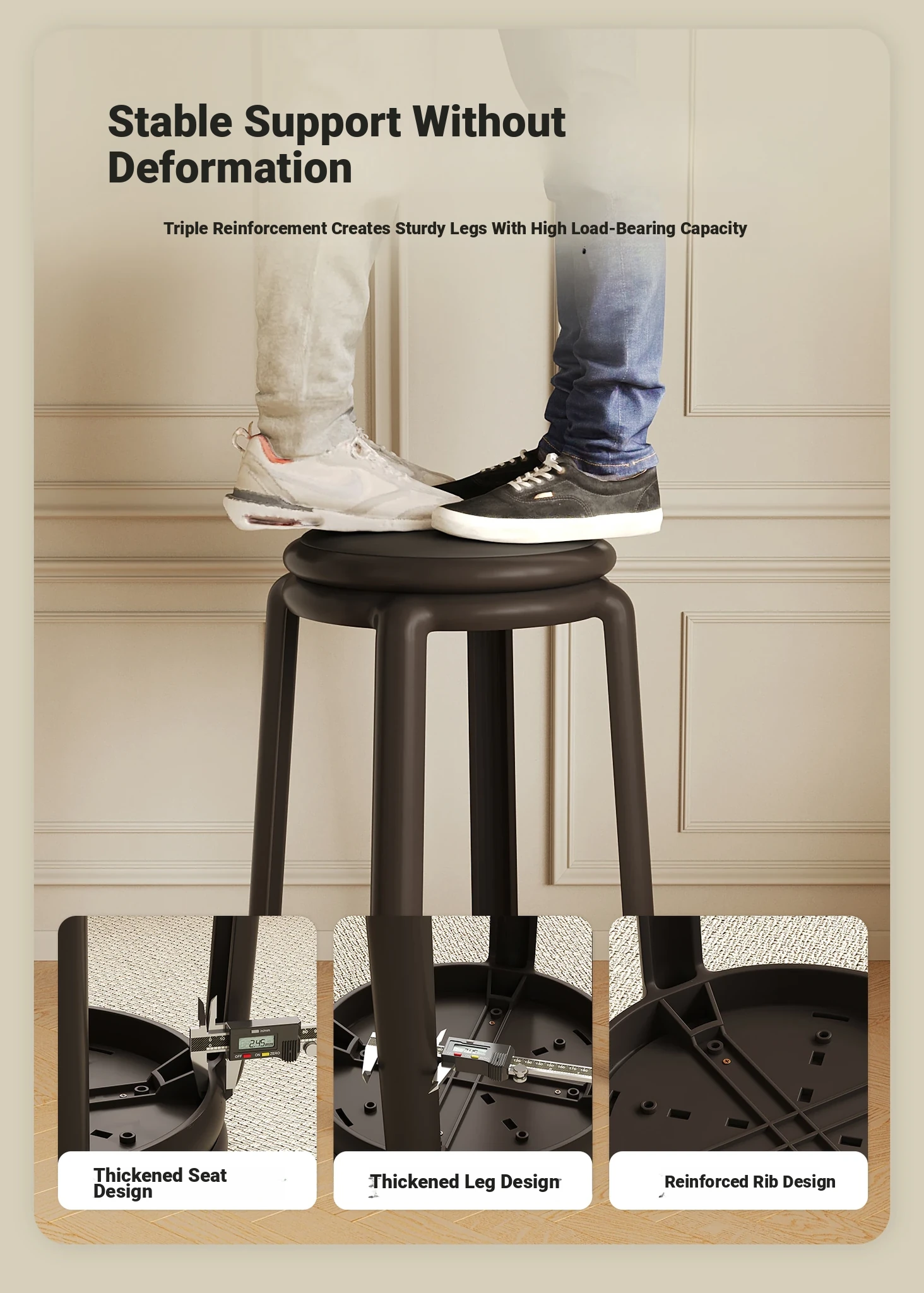 Durable Stackable Soft Padded Plastic Stool - Thickened Round Home Chair for Dining Room and Living Room, Perfect as Extra High Seat