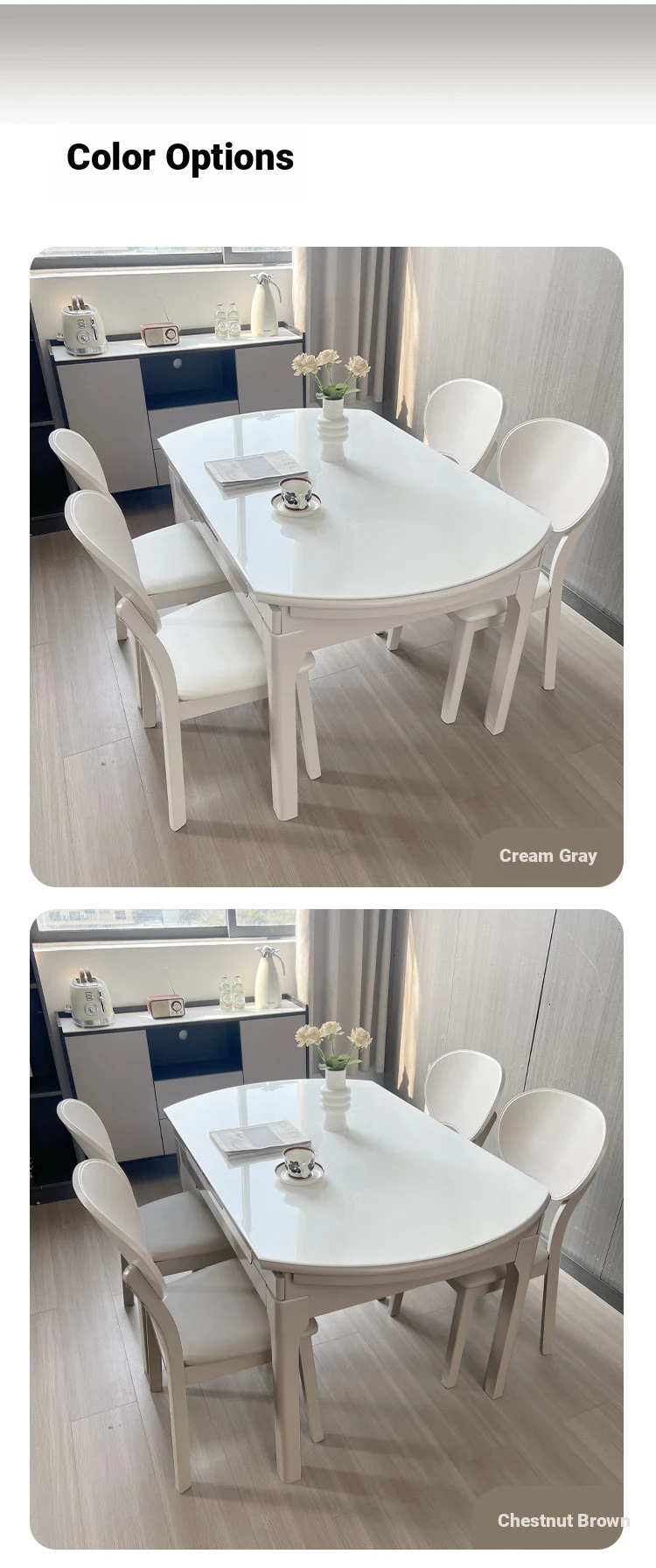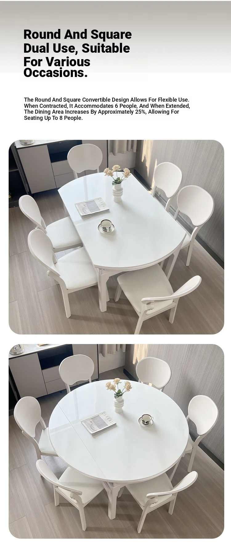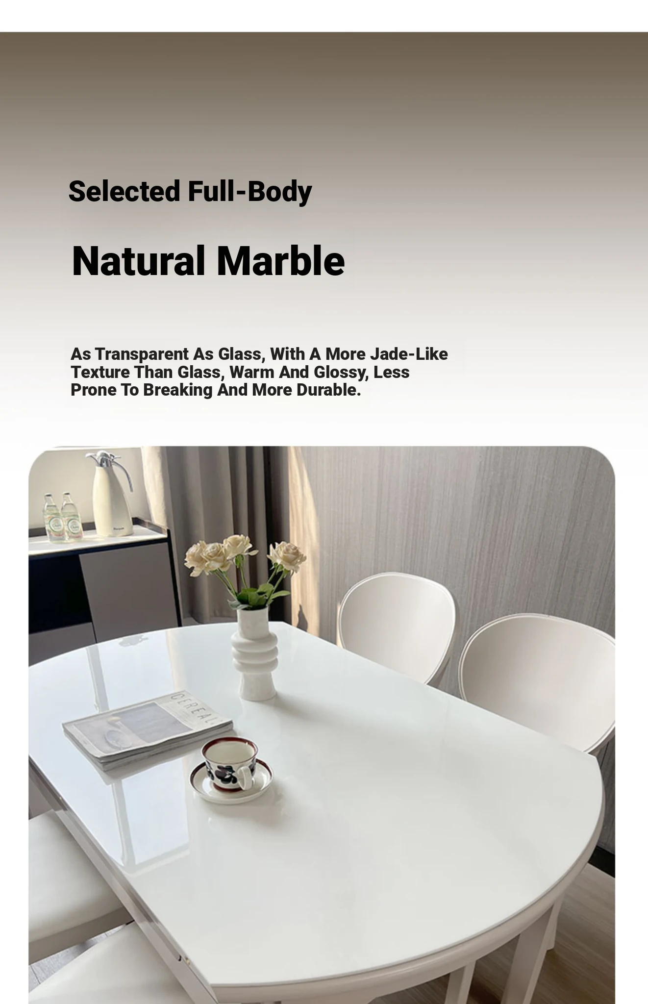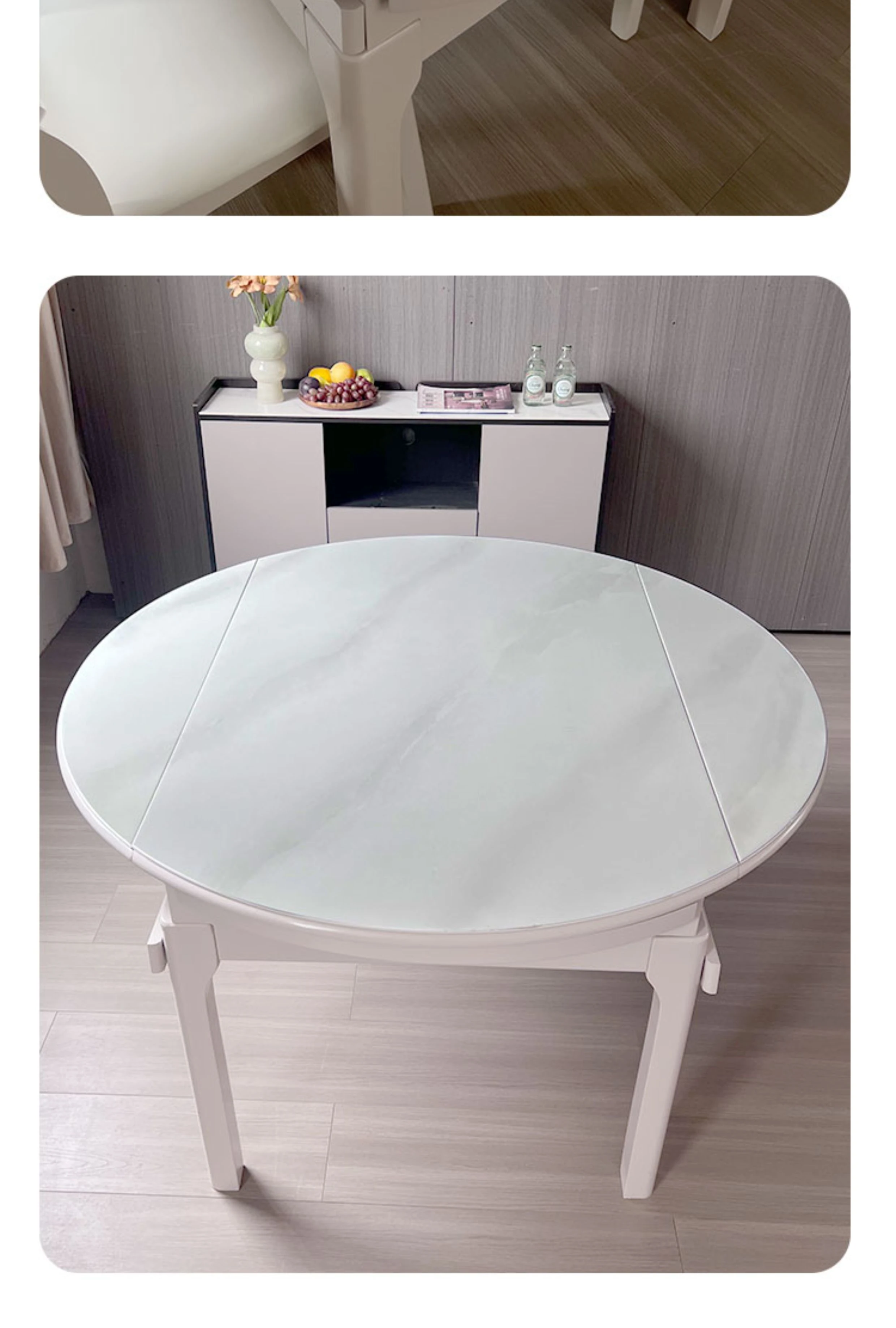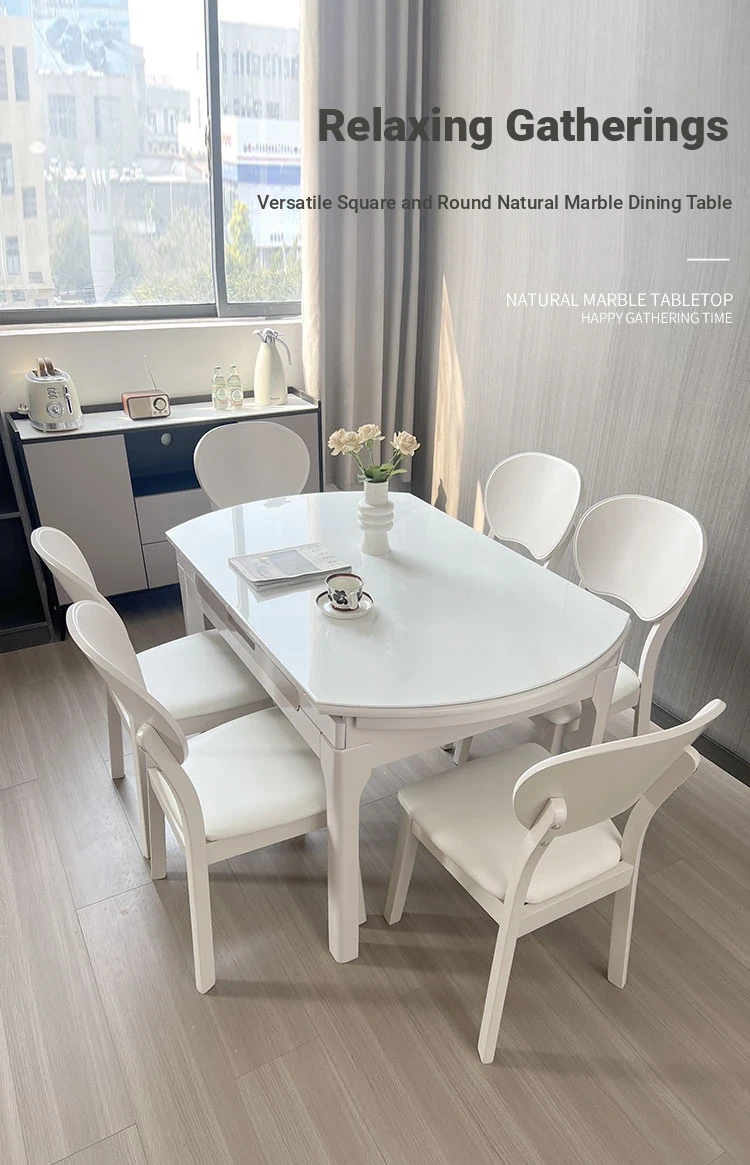 Elegant Cream-Colored Natural Marble Dining Table and Chair Set - Extendable Round Design for Home Use, Premium Quality Solid Wood Dining Table with a Luxurious Touch