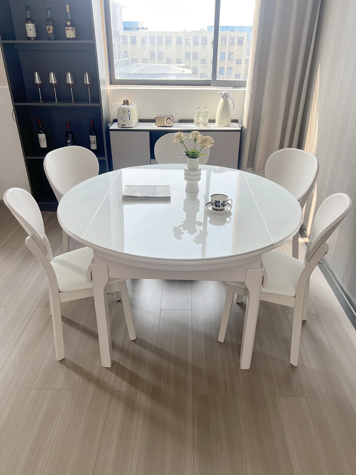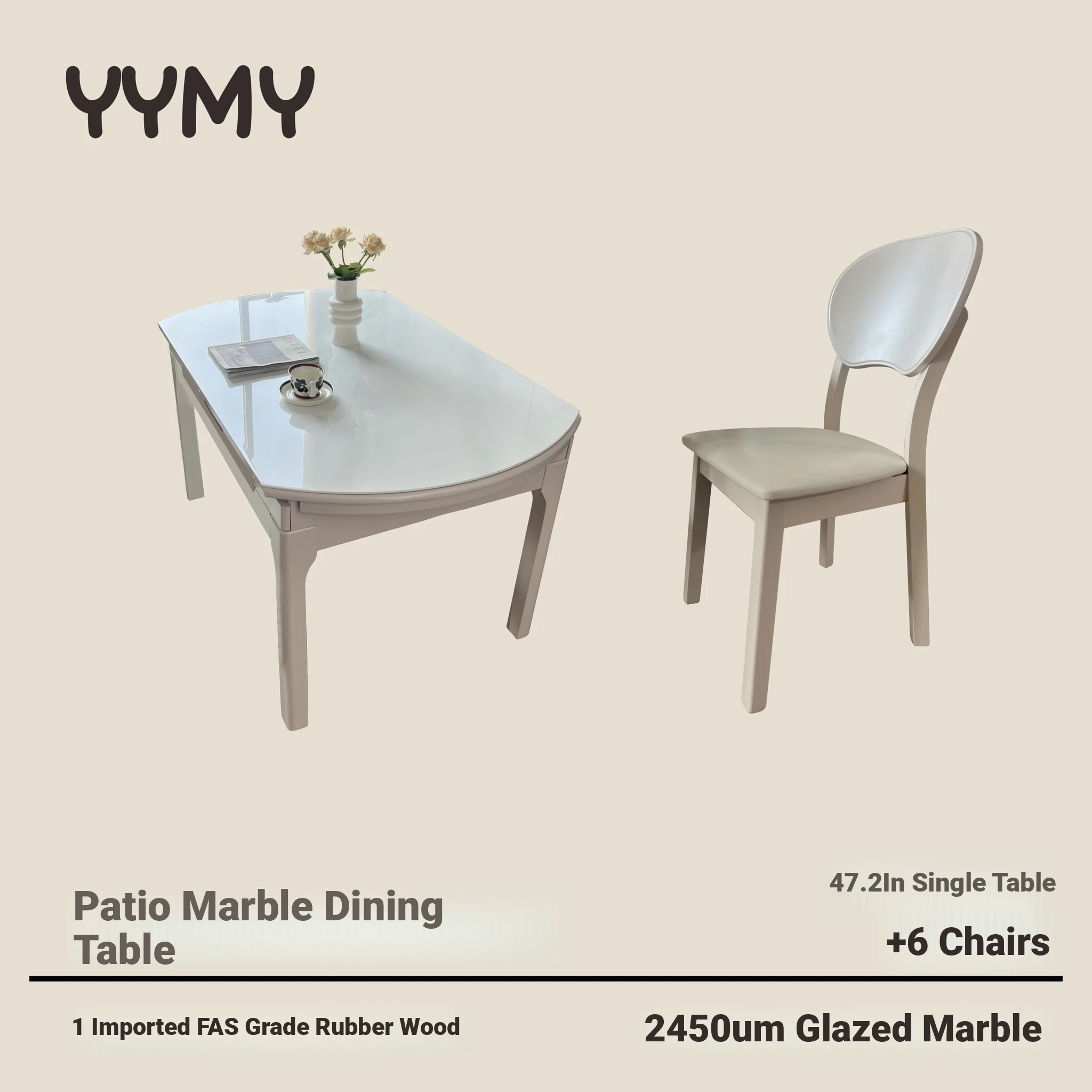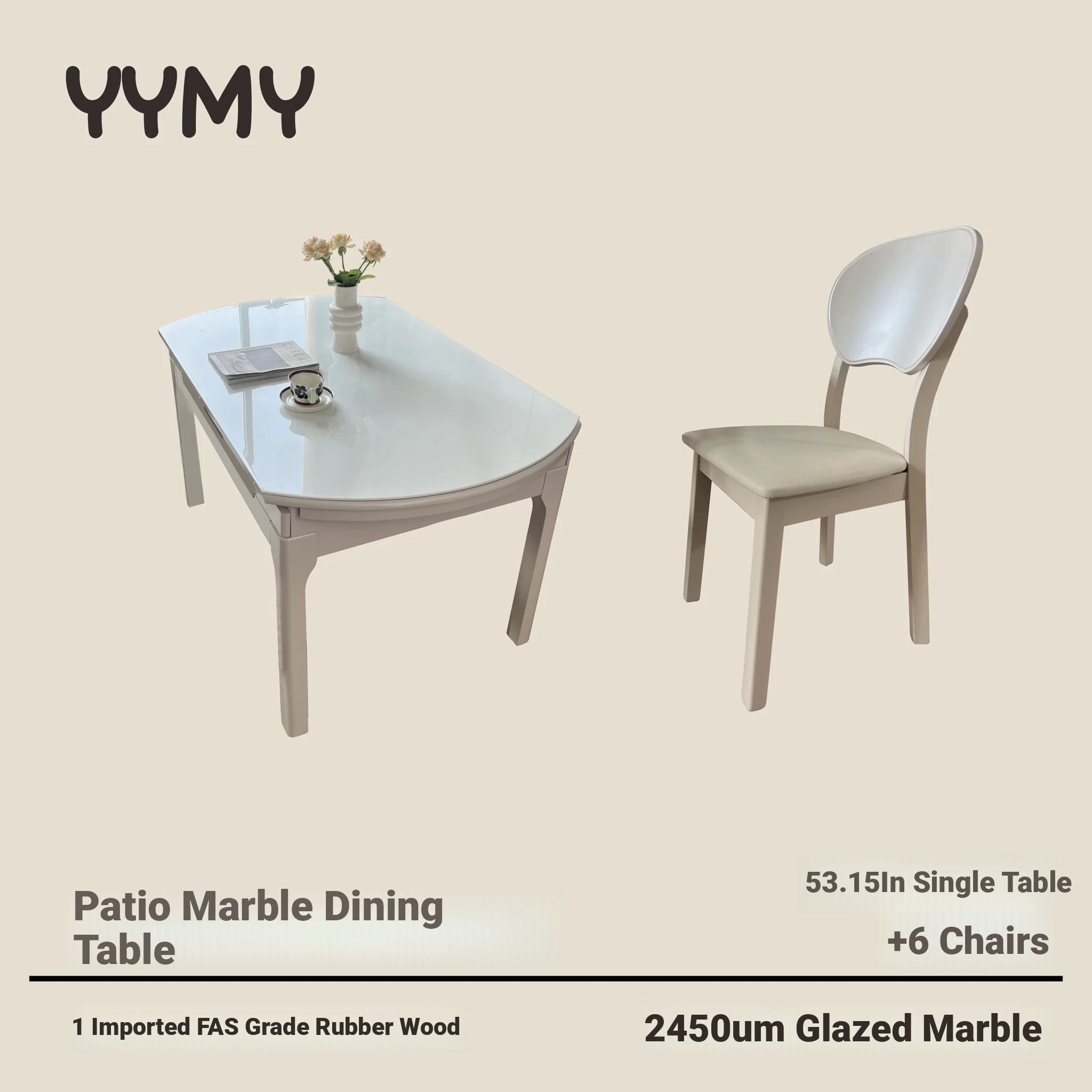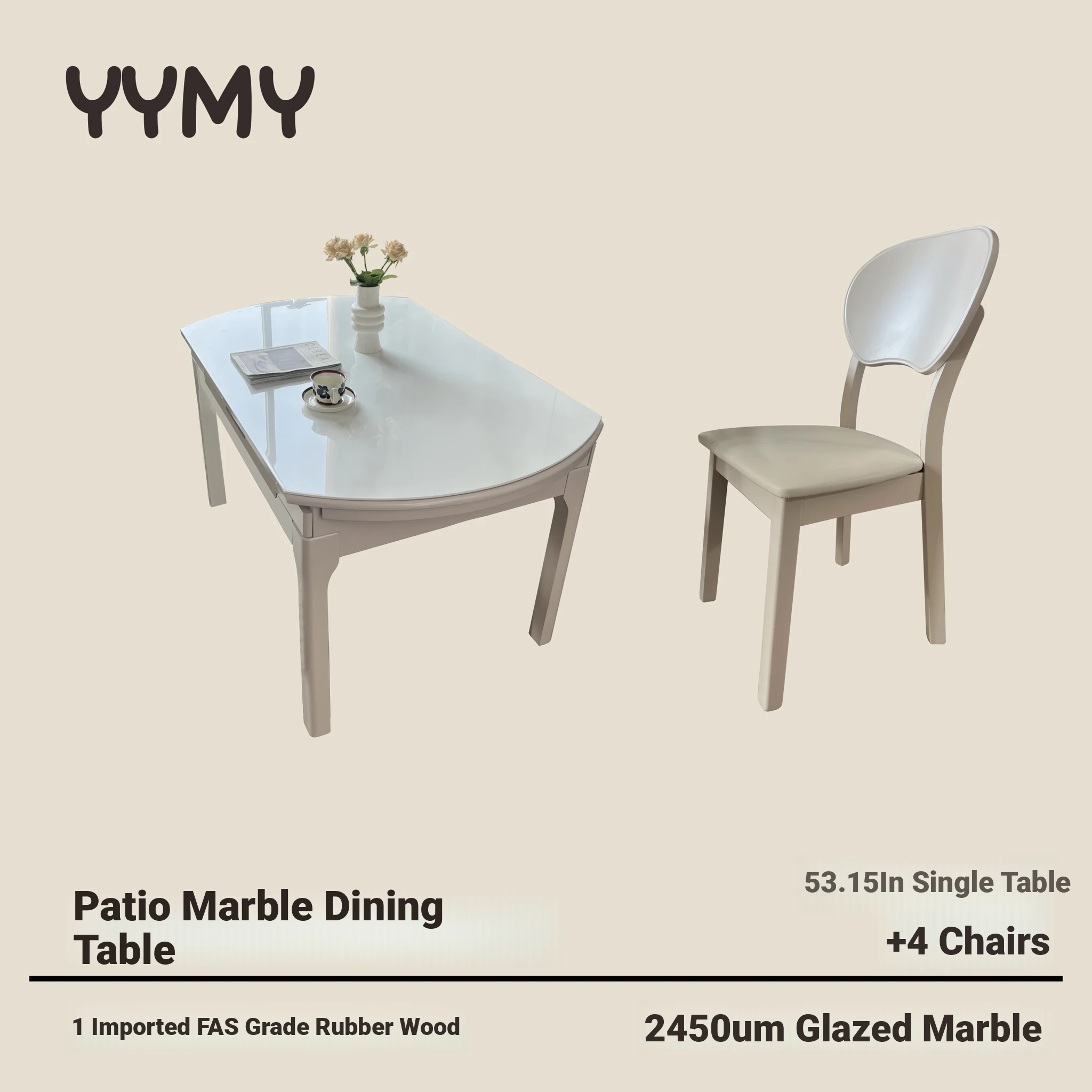 Elegant Cream-Colored Natural Marble Dining Table and Chair Set - Extendable Round Design for Home Use, Premium Quality Solid Wood Dining Table with a Luxurious Touch