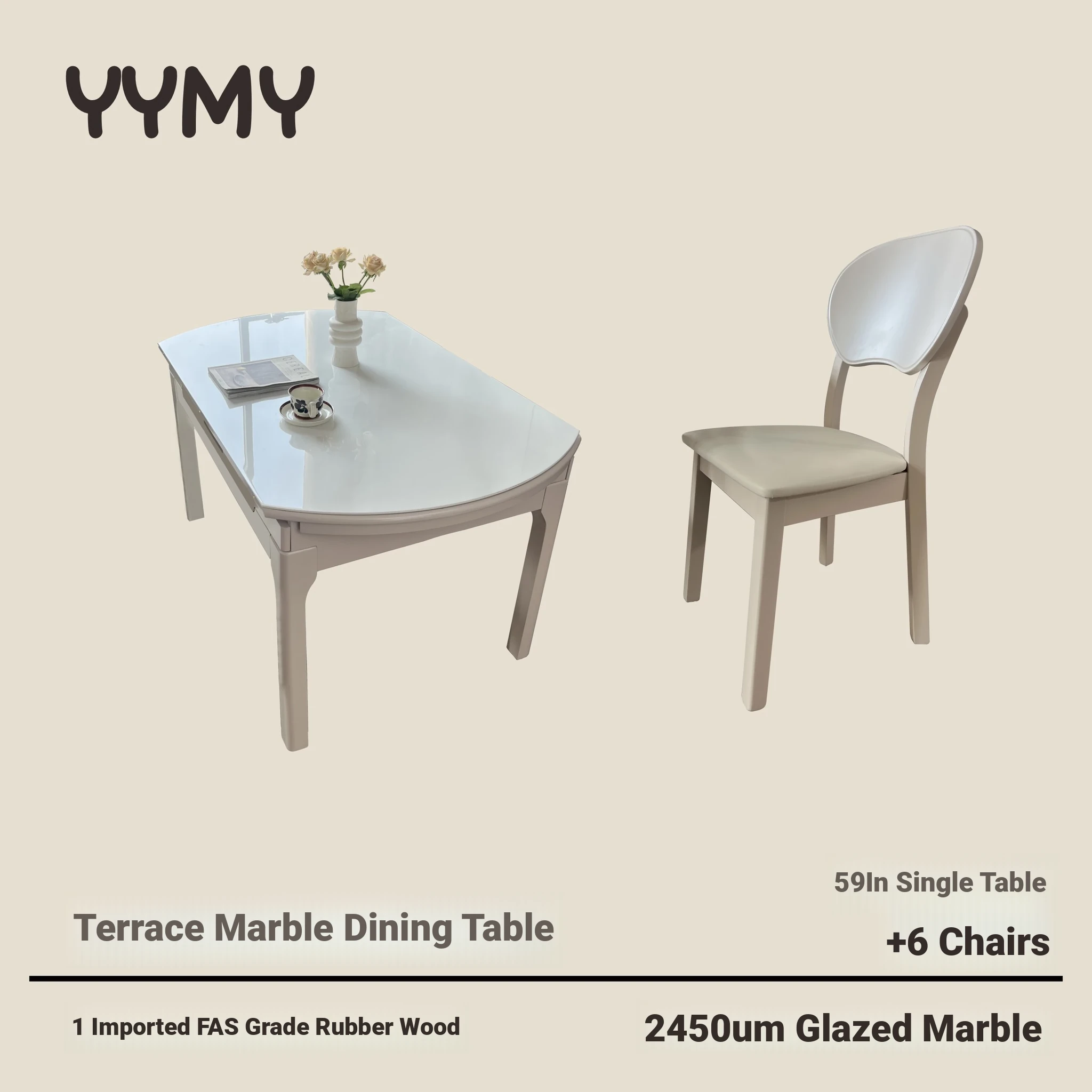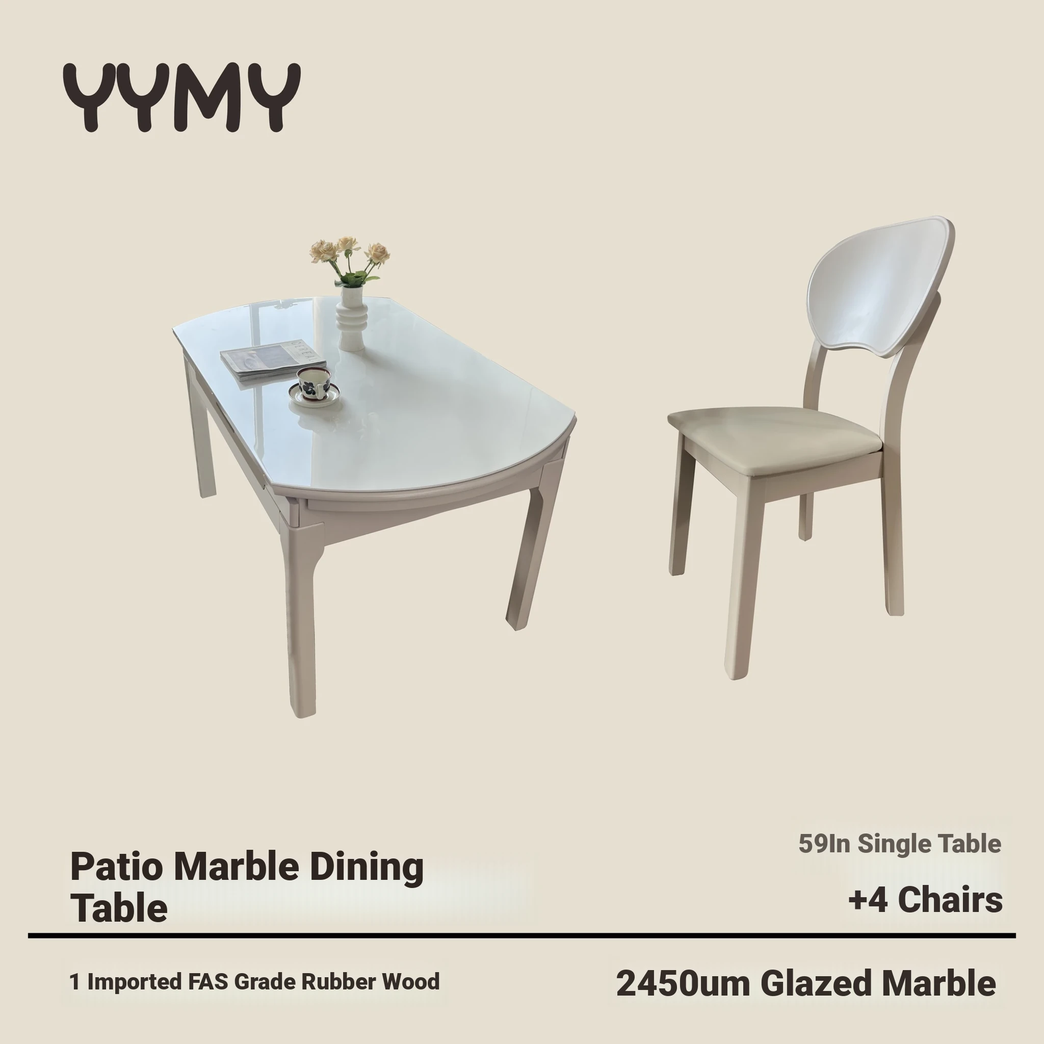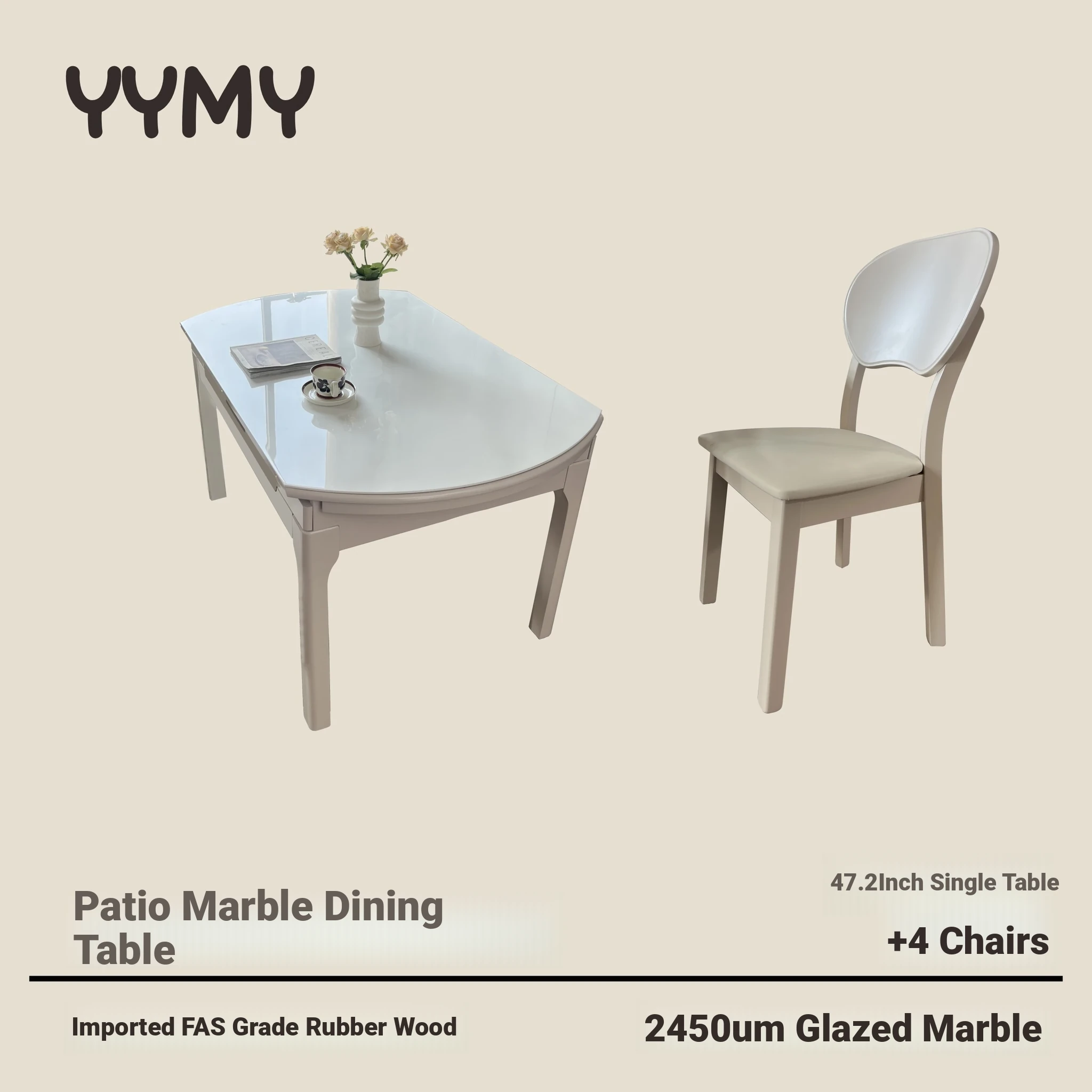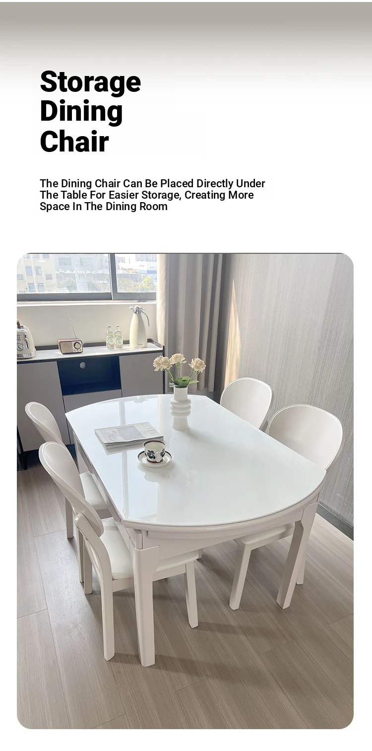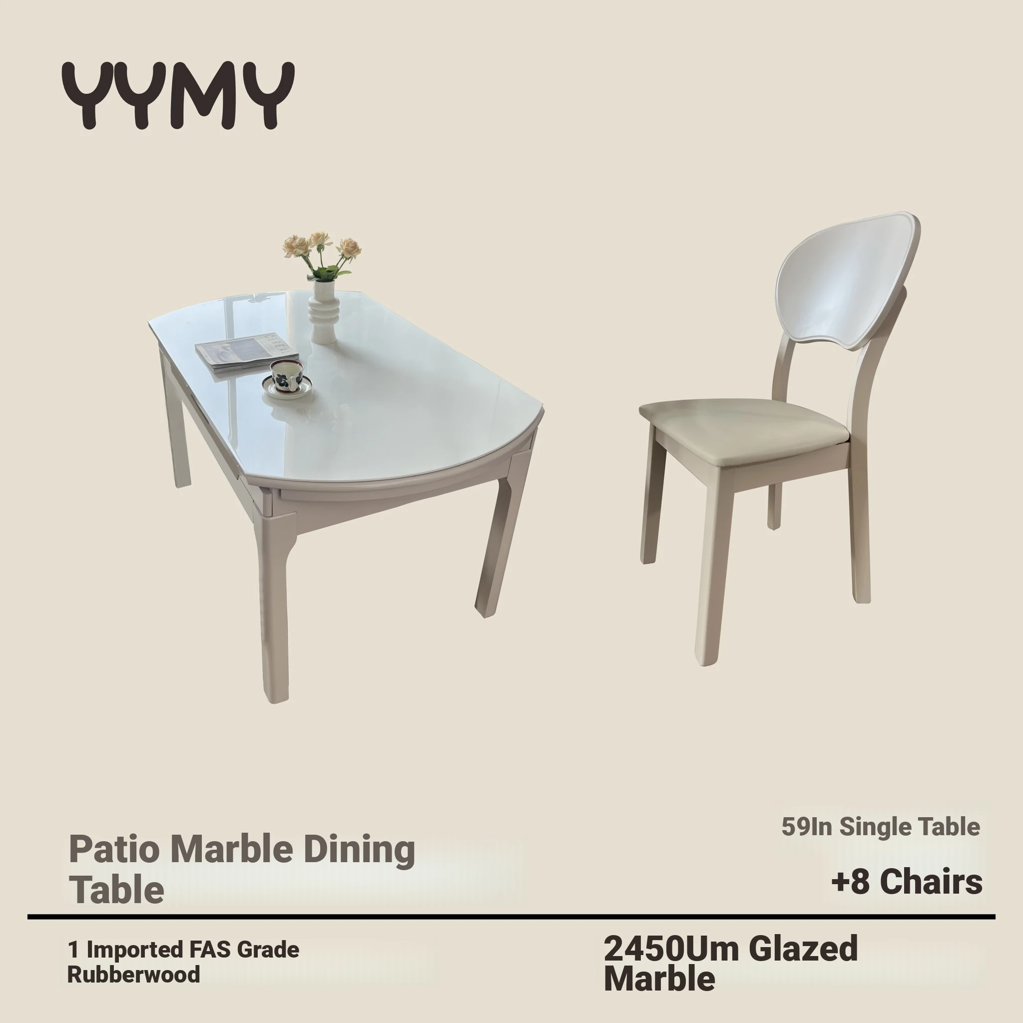 Elegant Cream-Colored Natural Marble Dining Table and Chair Set - Extendable Round Design for Home Use, Premium Quality Solid Wood Dining Table with a Luxurious Touch