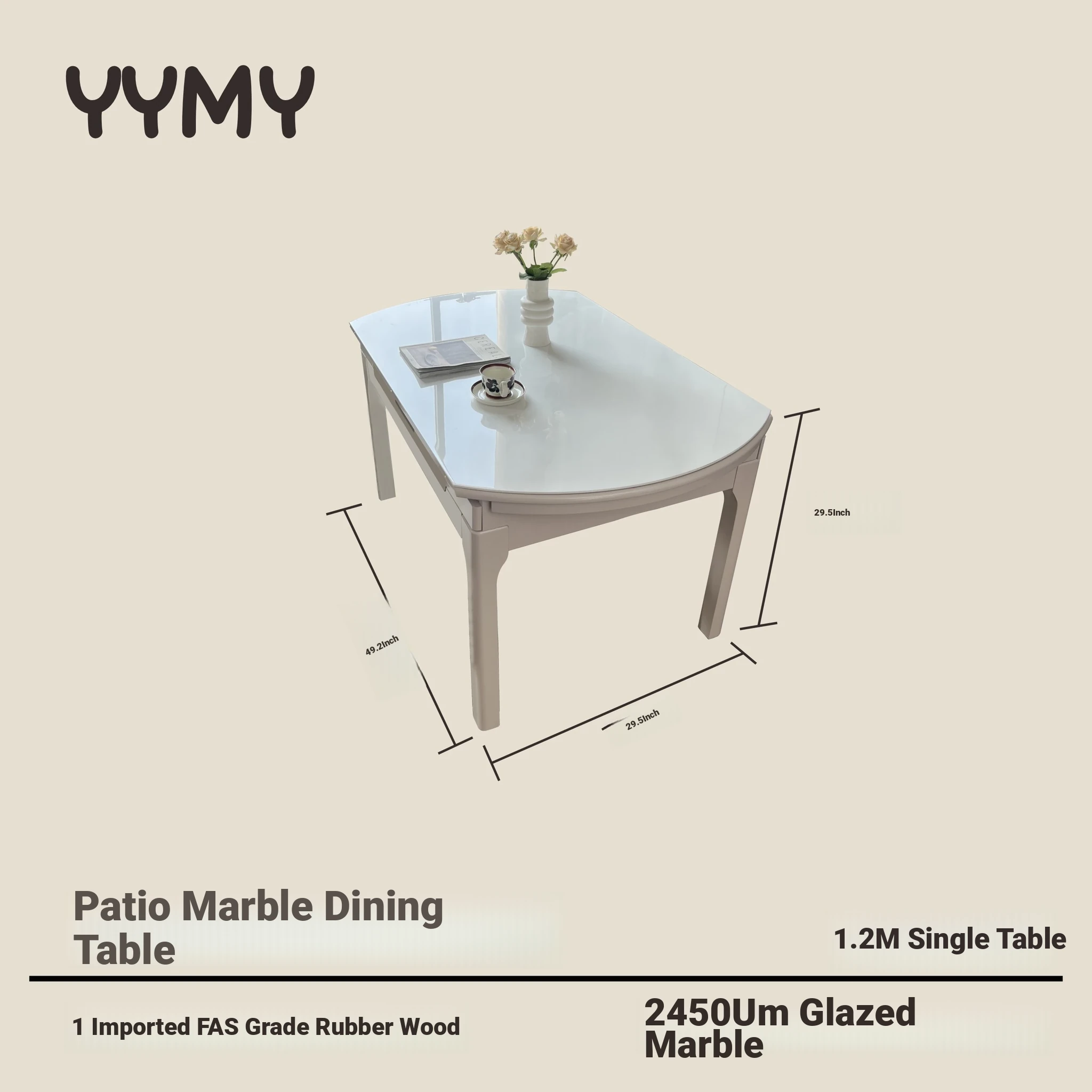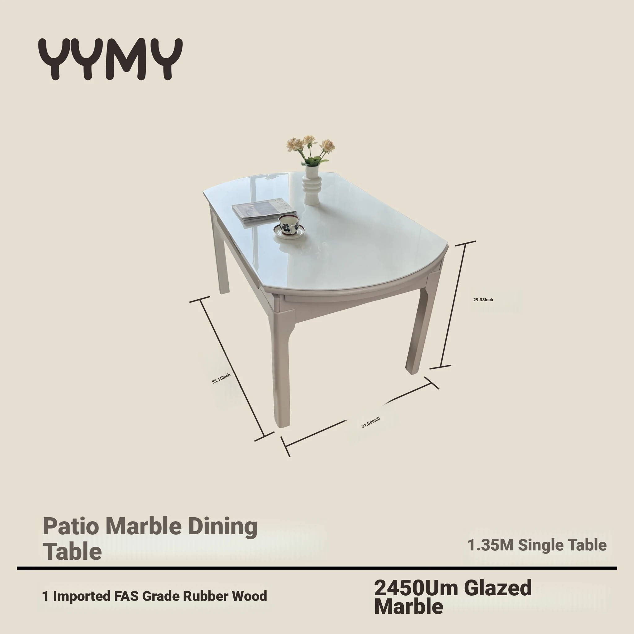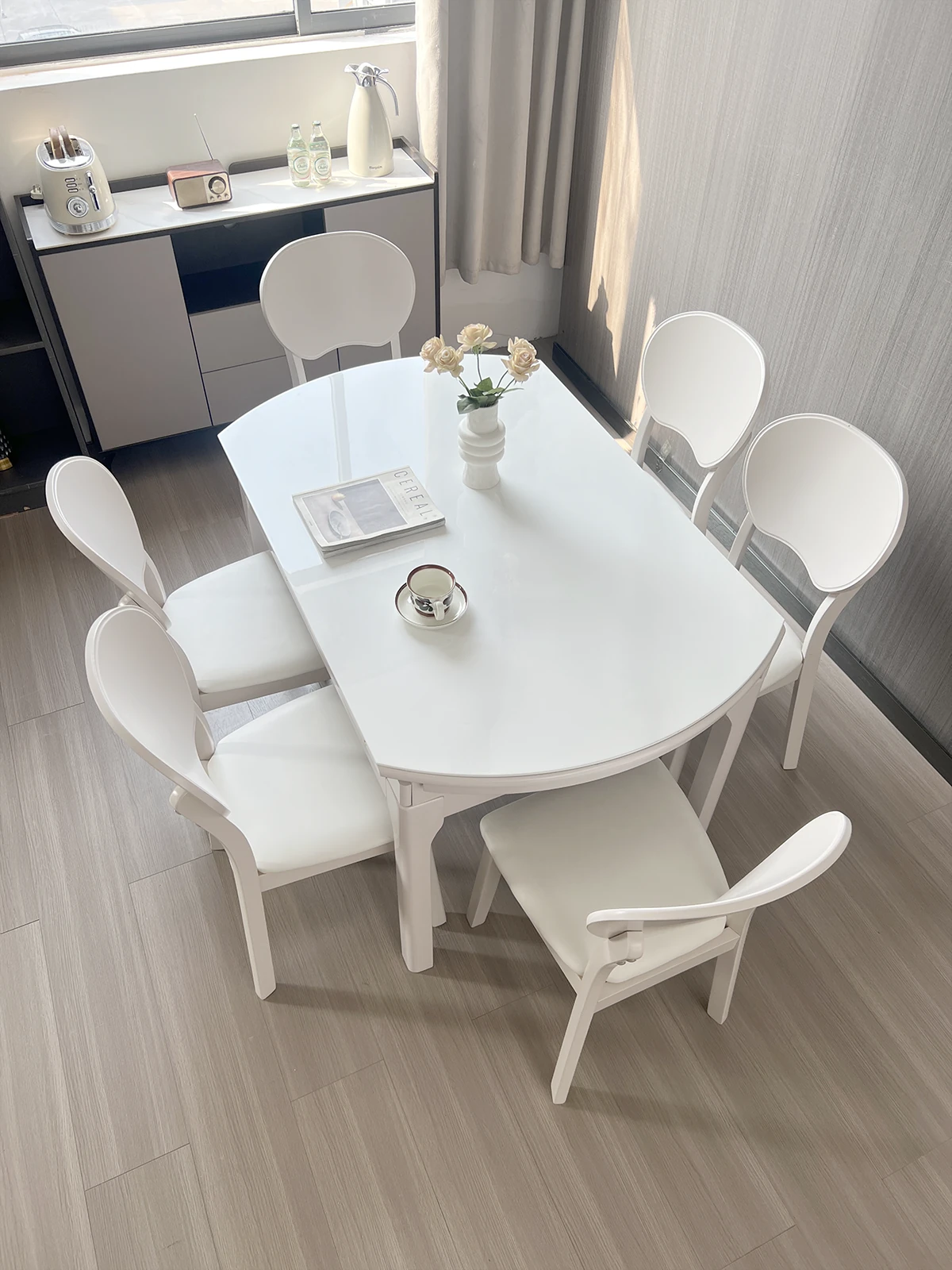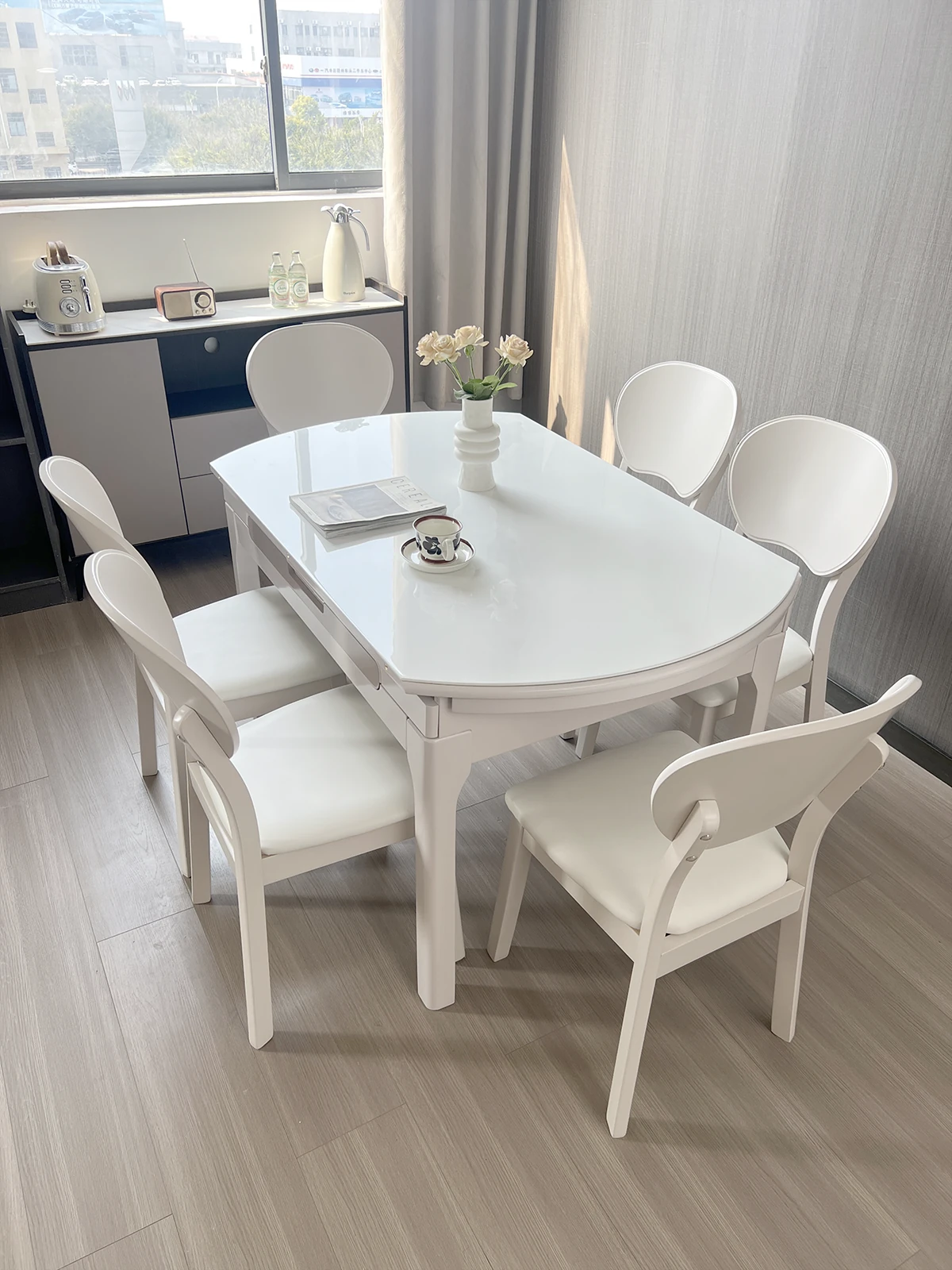 Elegant Cream-Colored Natural Marble Dining Table and Chair Set - Extendable Round Design for Home Use, Premium Quality Solid Wood Dining Table with a Luxurious Touch