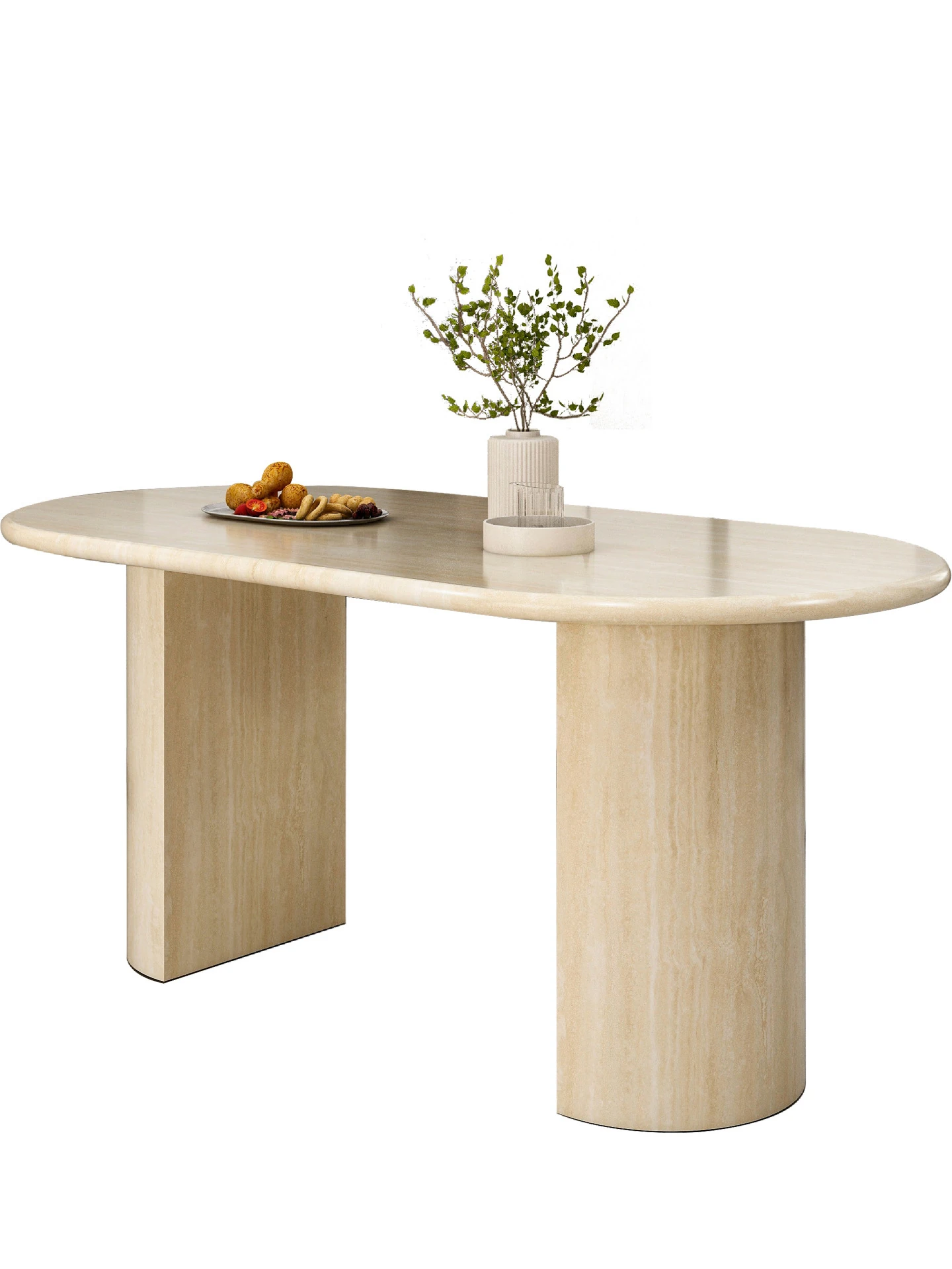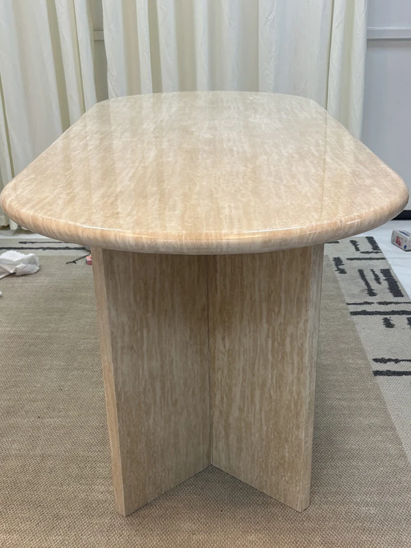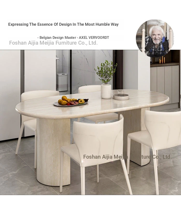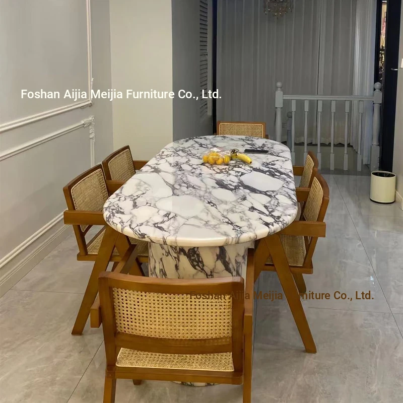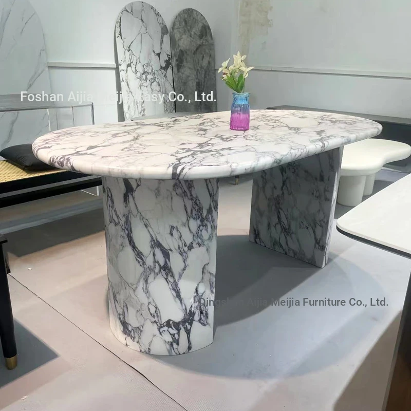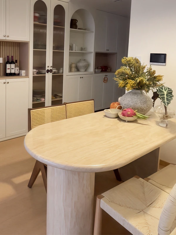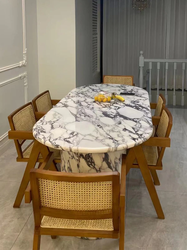 Elegant French-Style Marble Oval Dining Table with Designer Stone Texture - Perfect for Small Spaces and Kitchen Islands