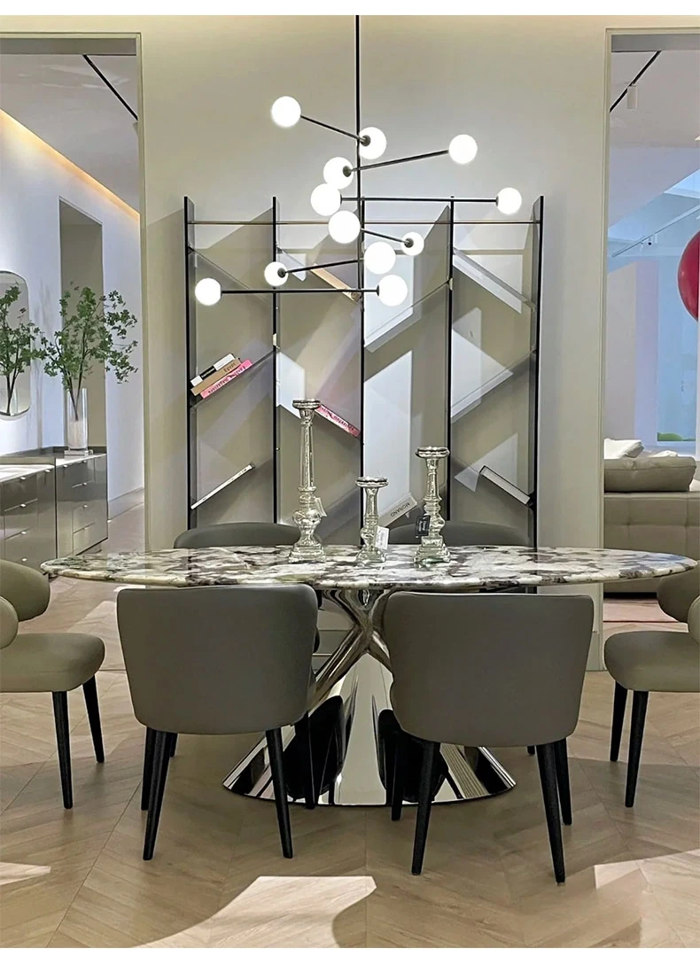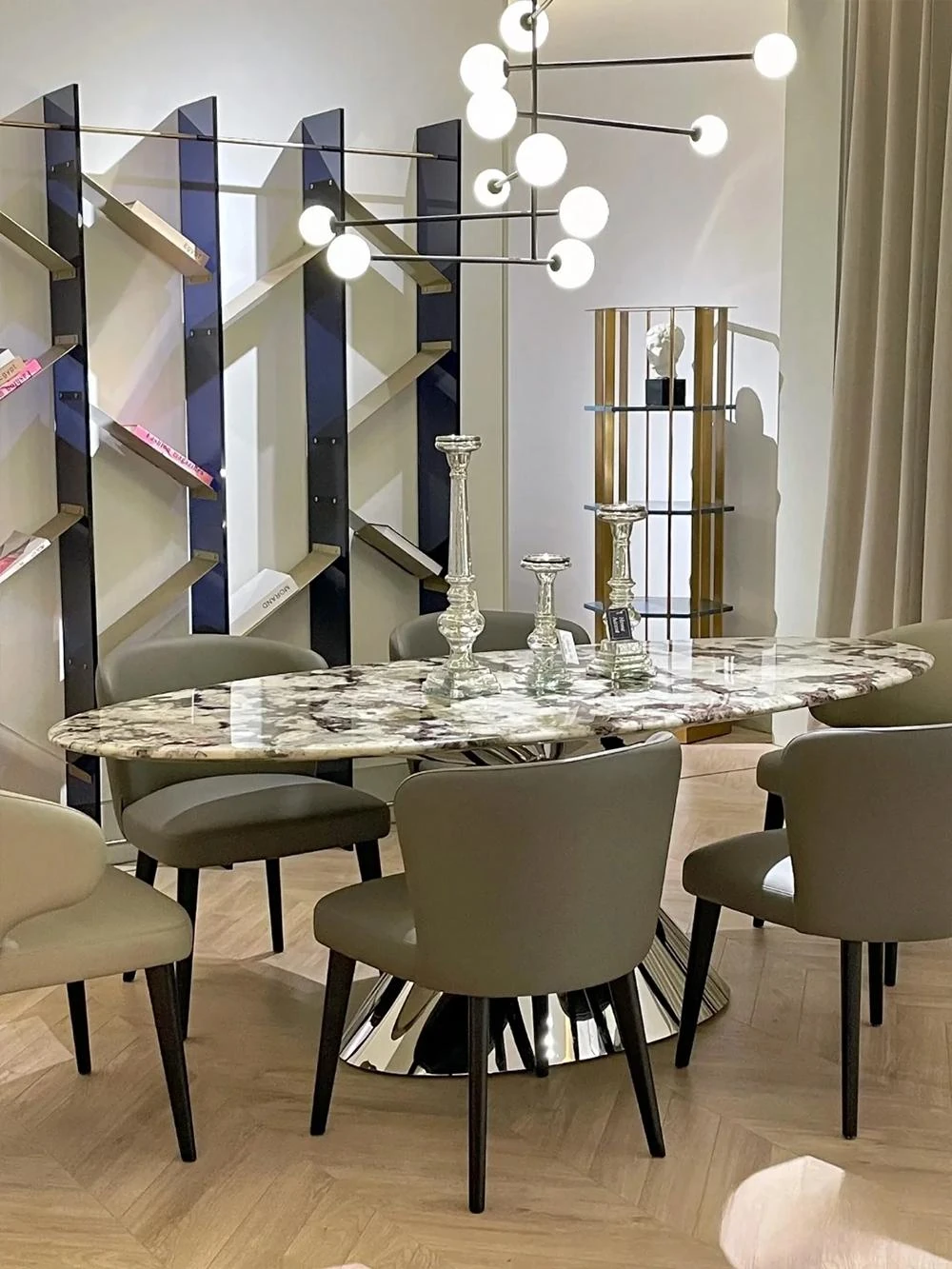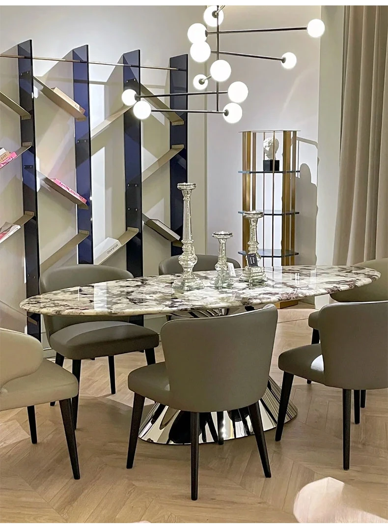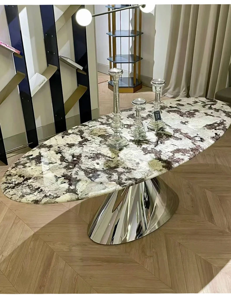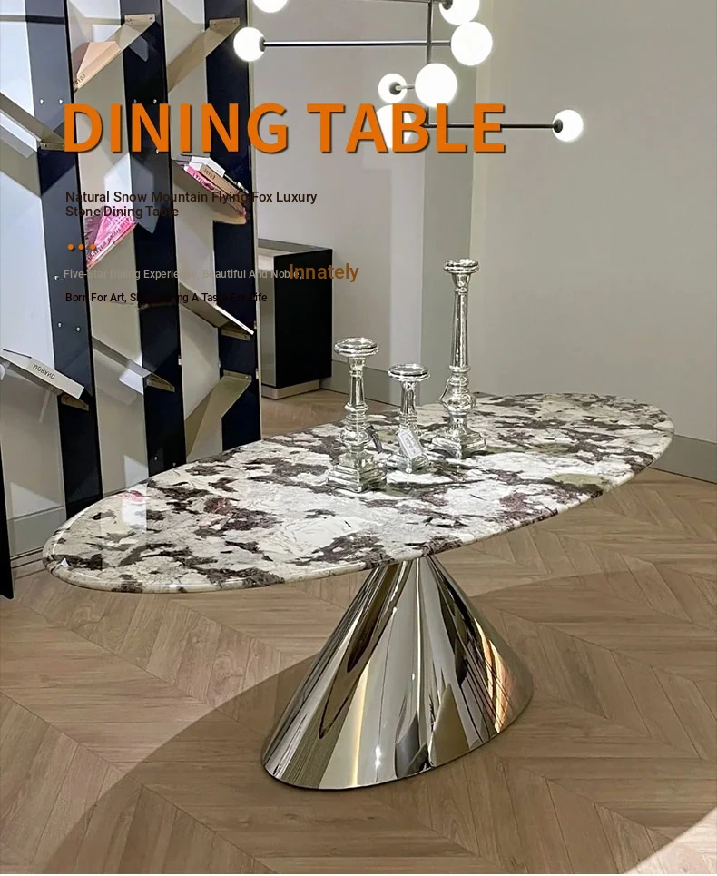 Elegant Lightweight Luxury Snow Mountain Flying Fox Marble Dining Table - Modern Minimalist Oval Natural Stone Table for Home Use