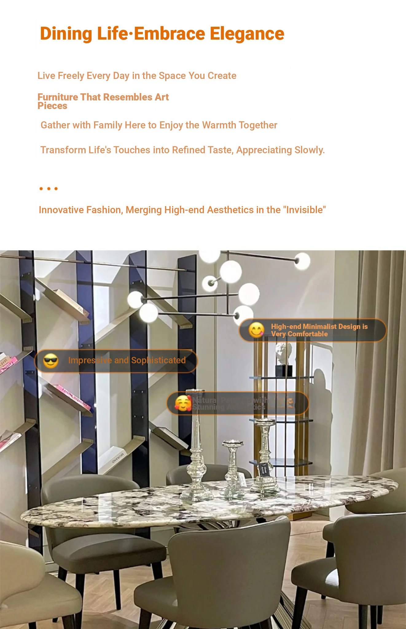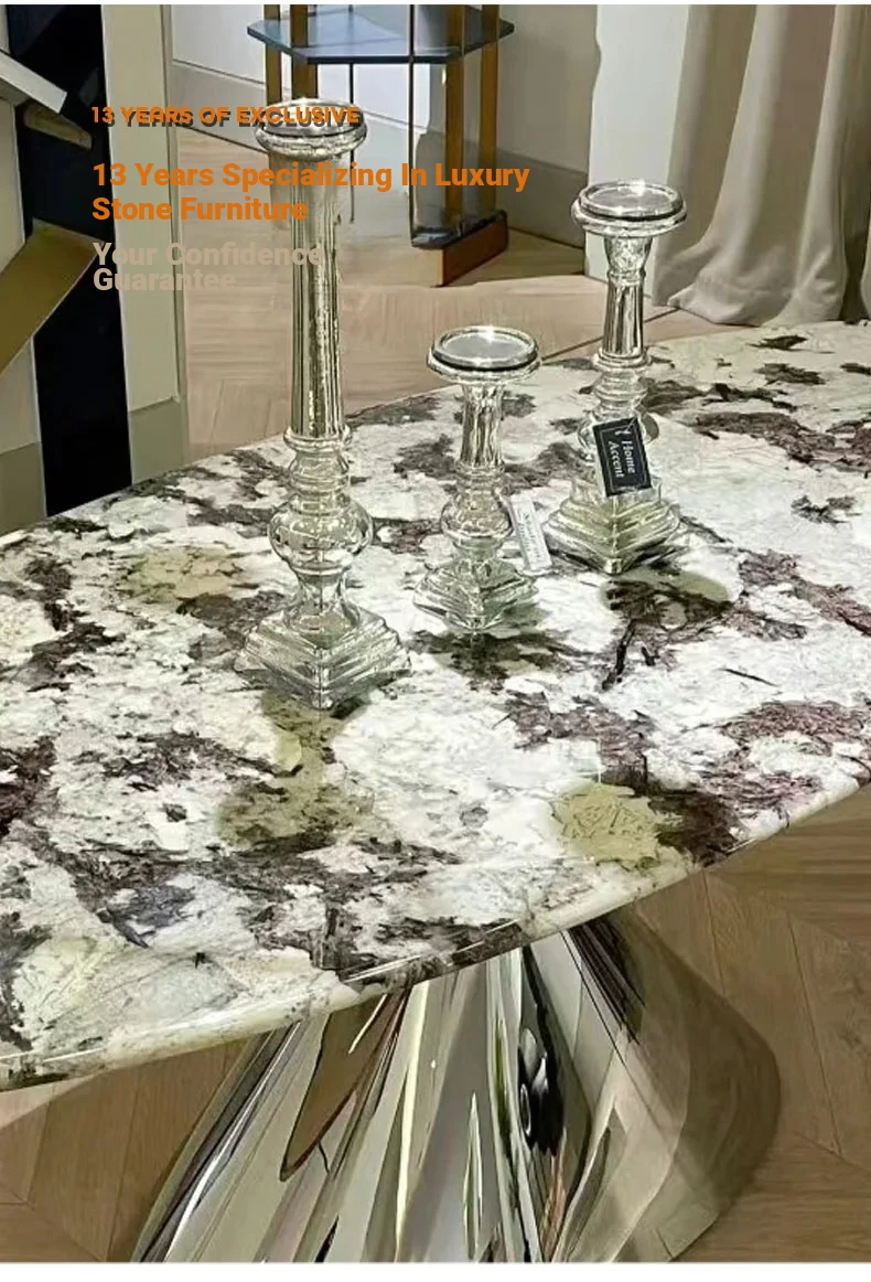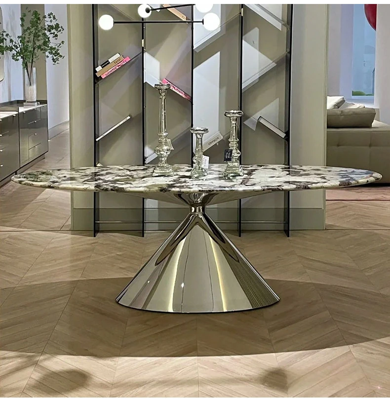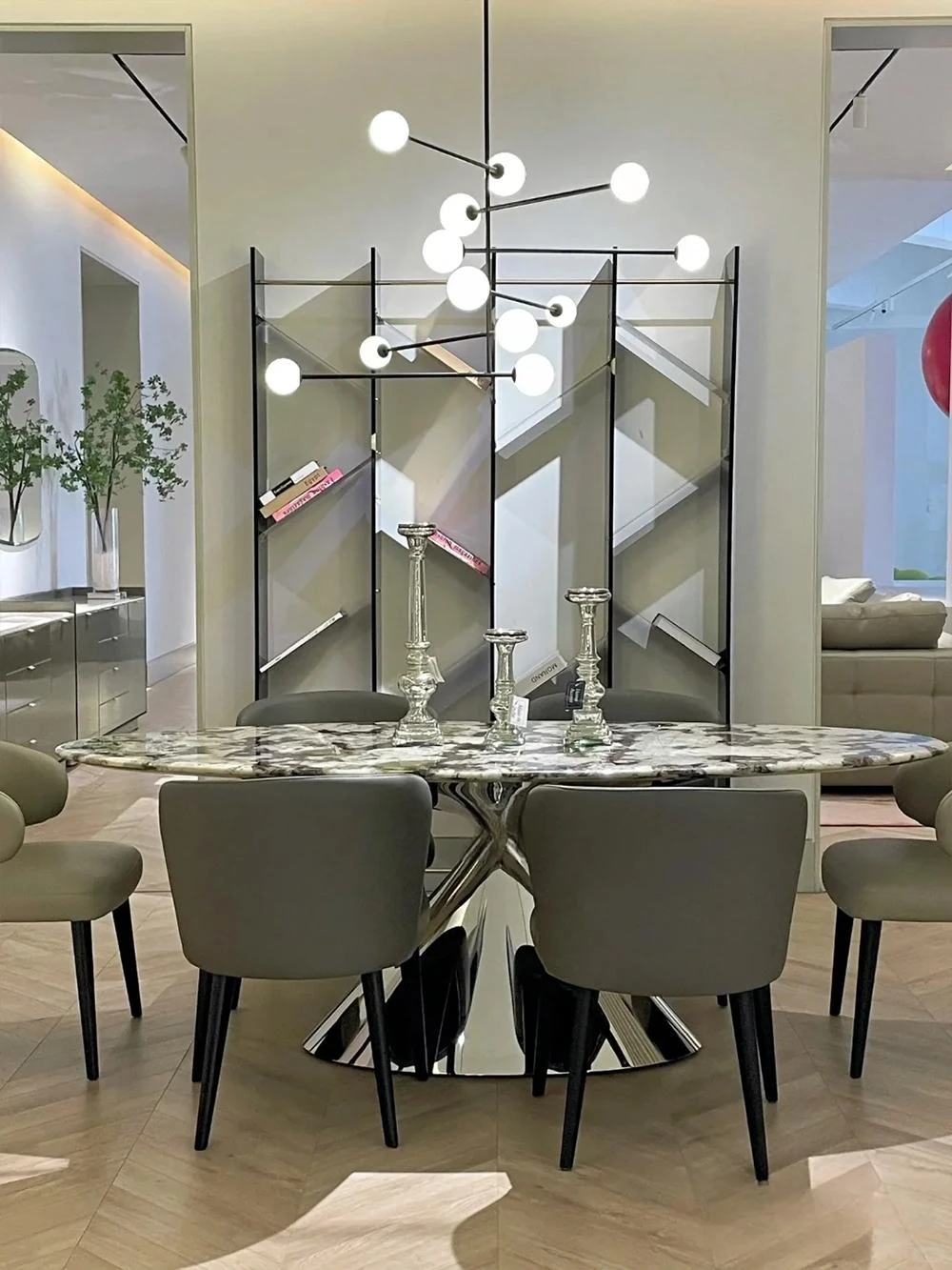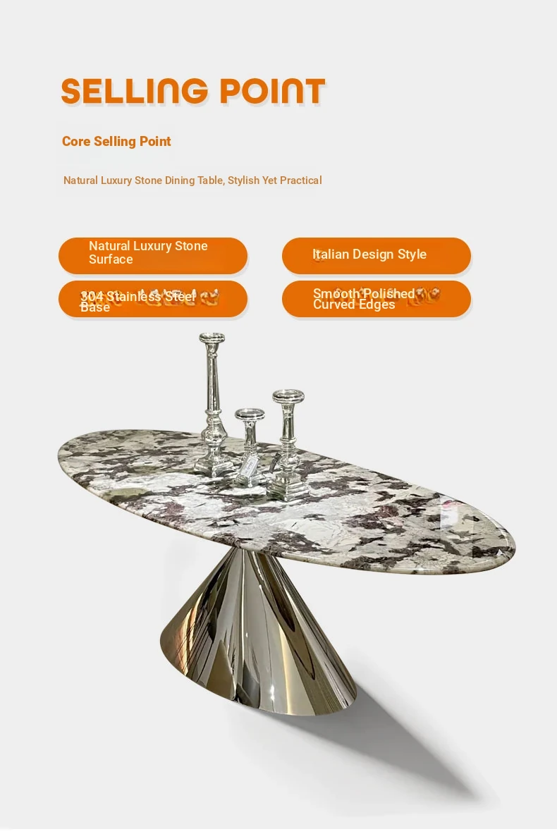 Elegant Lightweight Luxury Snow Mountain Flying Fox Marble Dining Table - Modern Minimalist Oval Natural Stone Table for Home Use