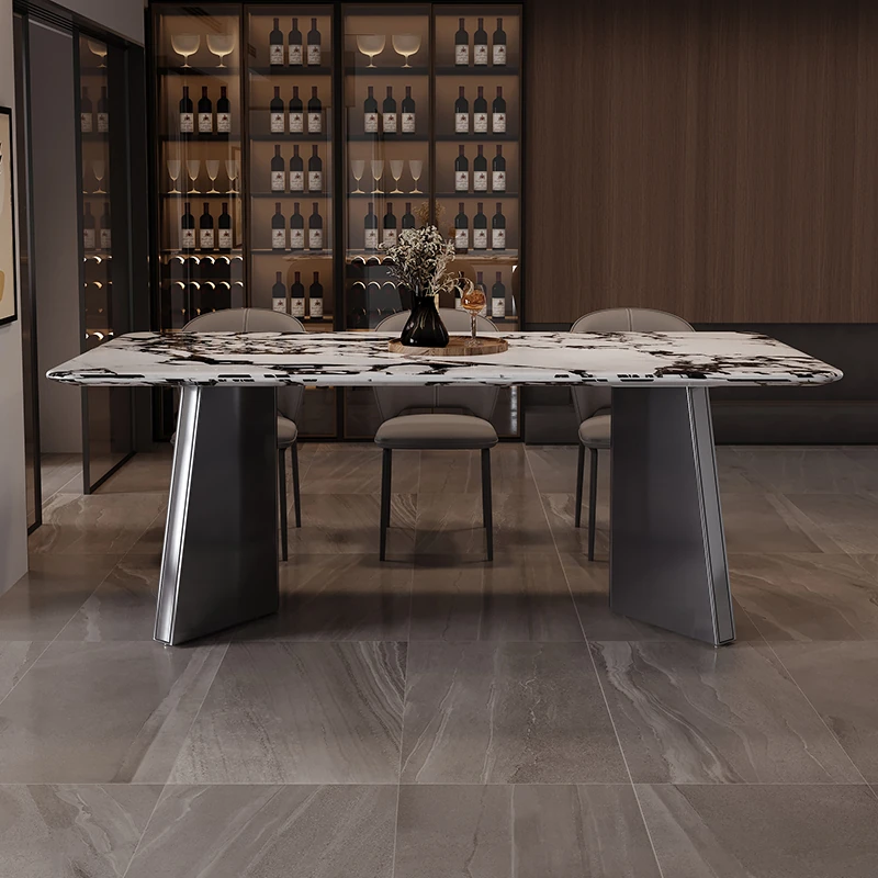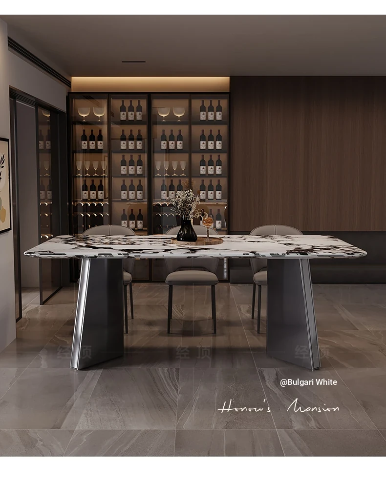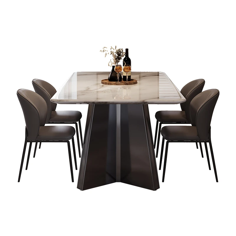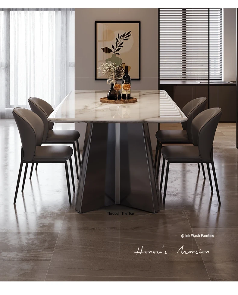 Elegant Marble Dining Table and Chair Set - Rectangular Design for Small Spaces, Italian Minimalist Style, Premium Quality Super Crystal Stone Dining Table