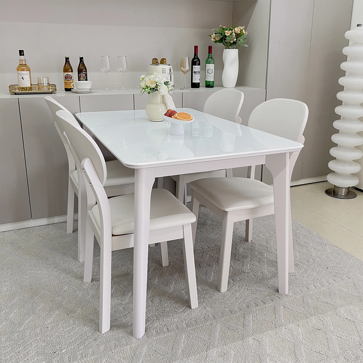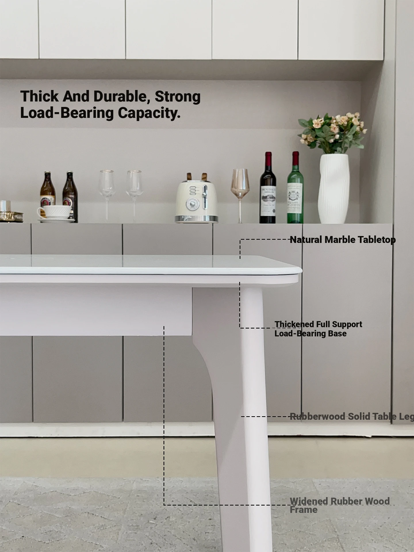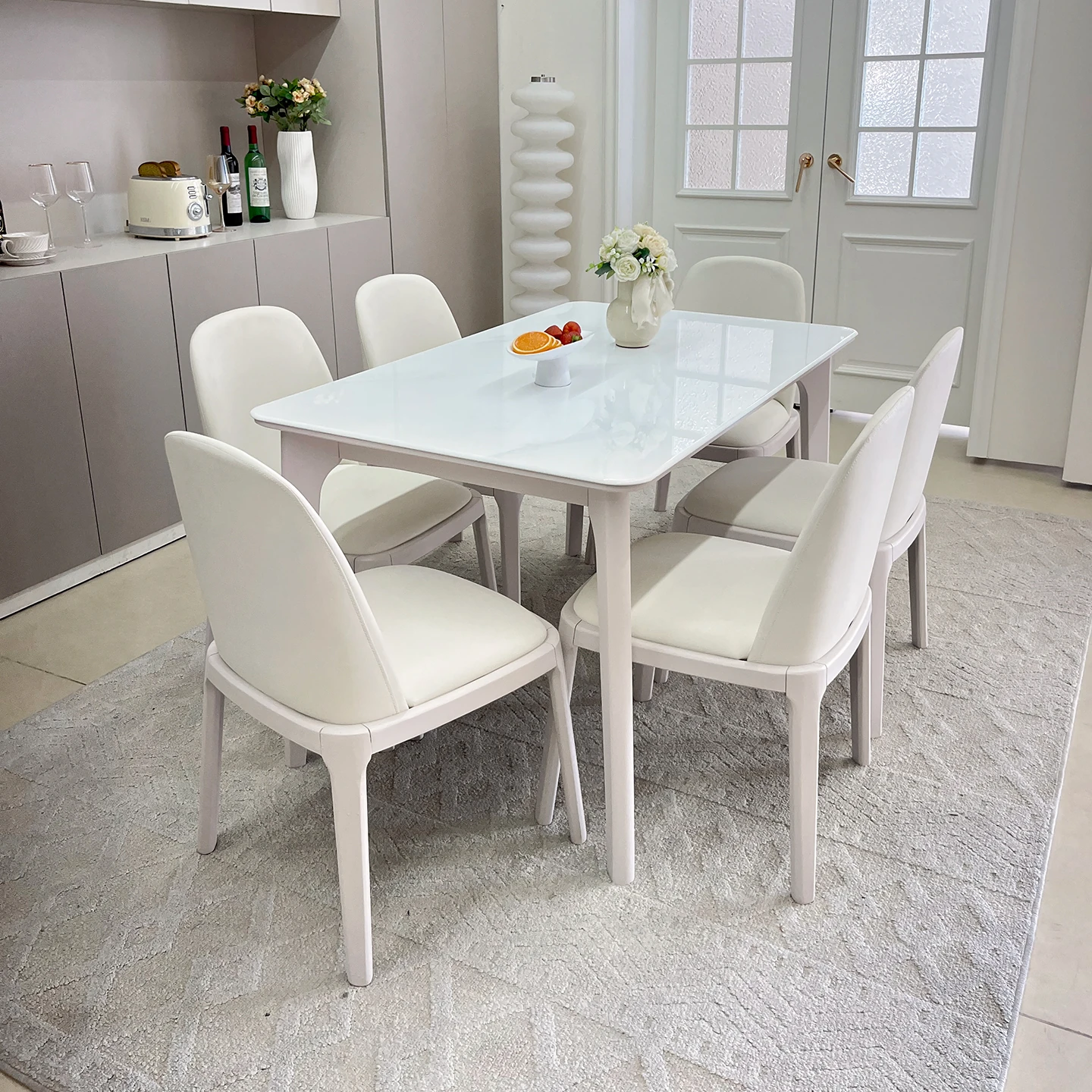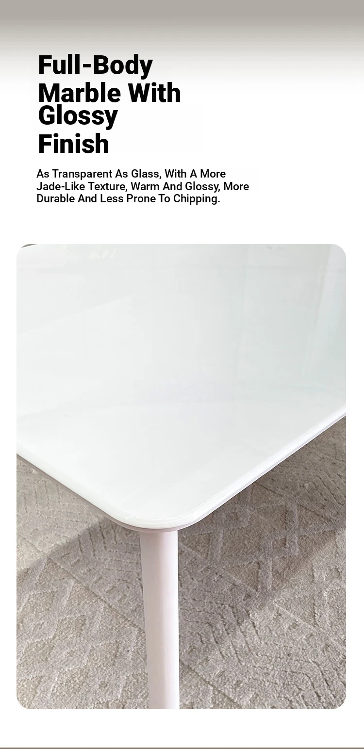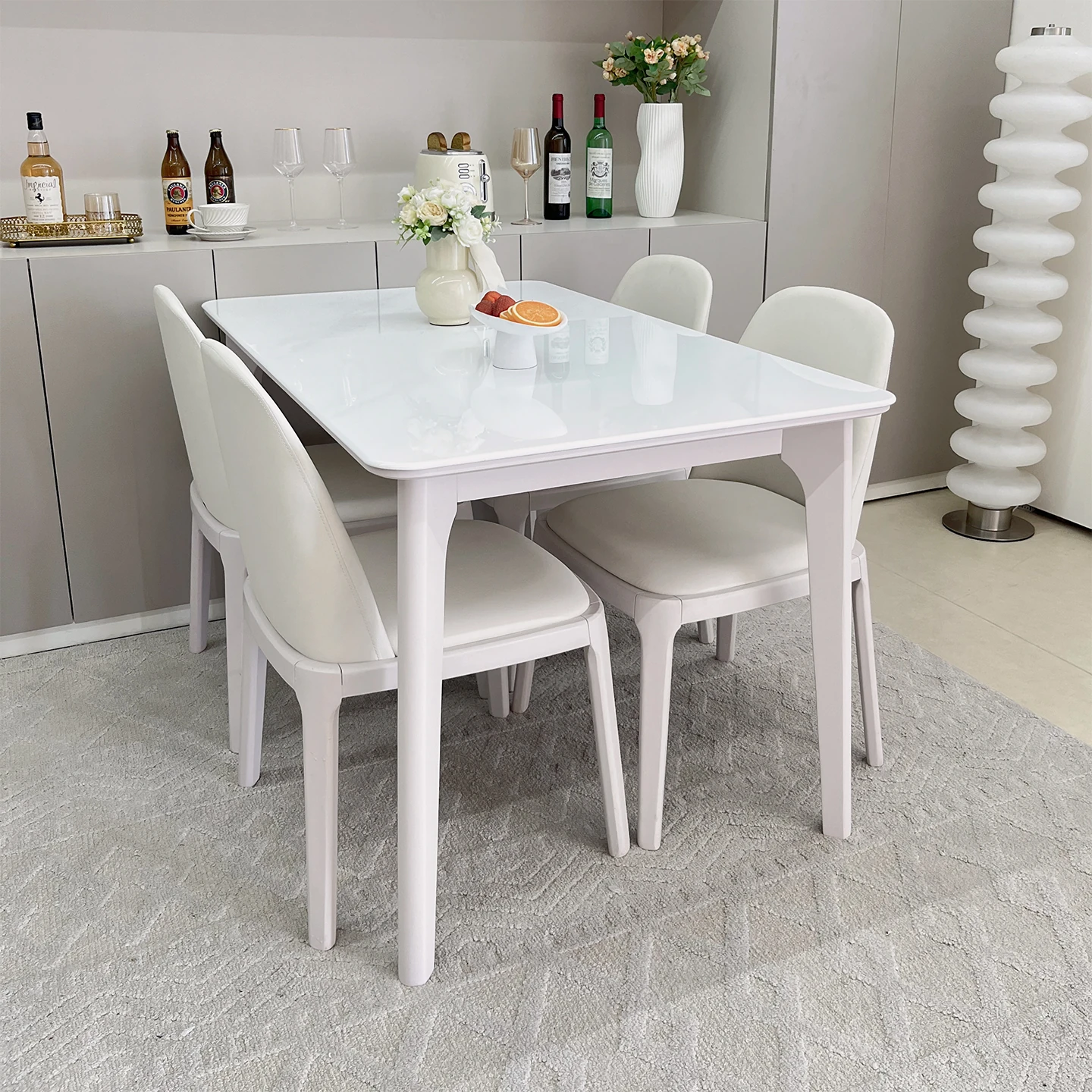 Elegant Rectangular Natural Marble Dining Table and Chair Set for Small Homes - Luxurious Cream Style Solid Wood Dining Table