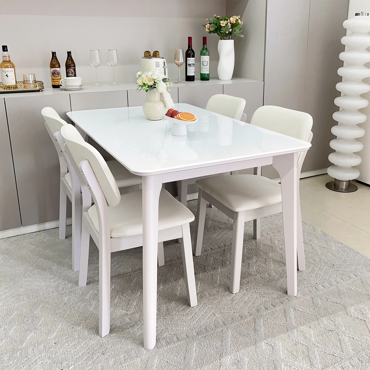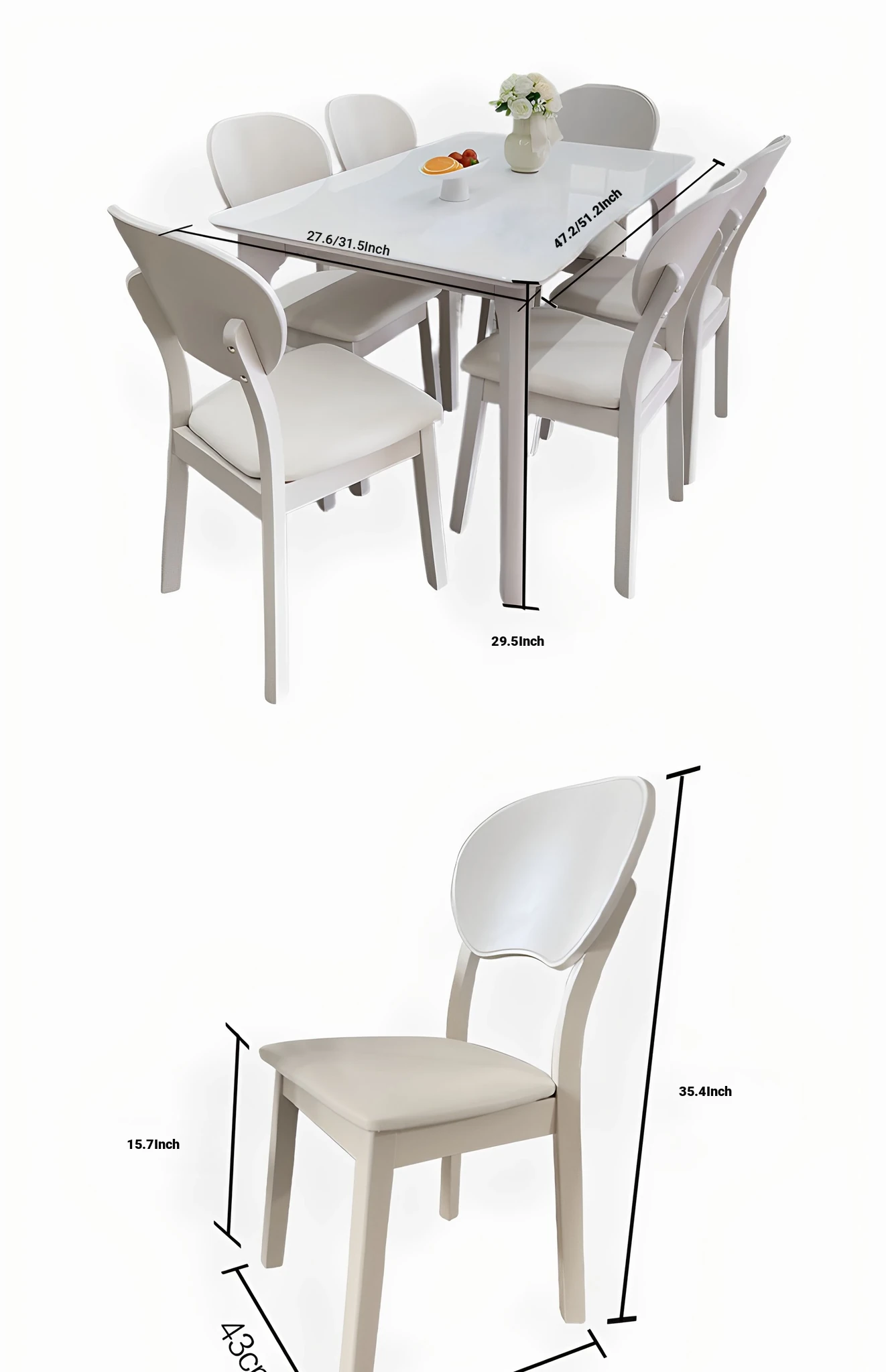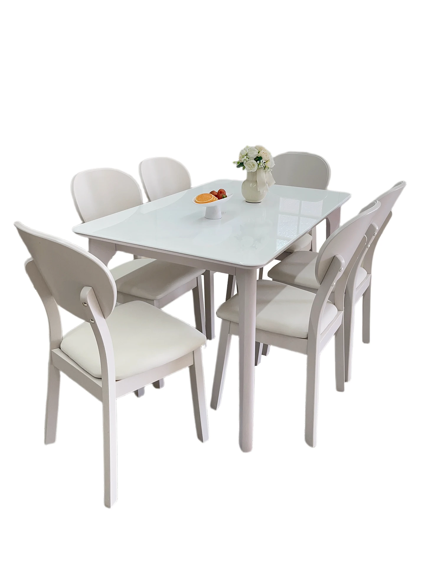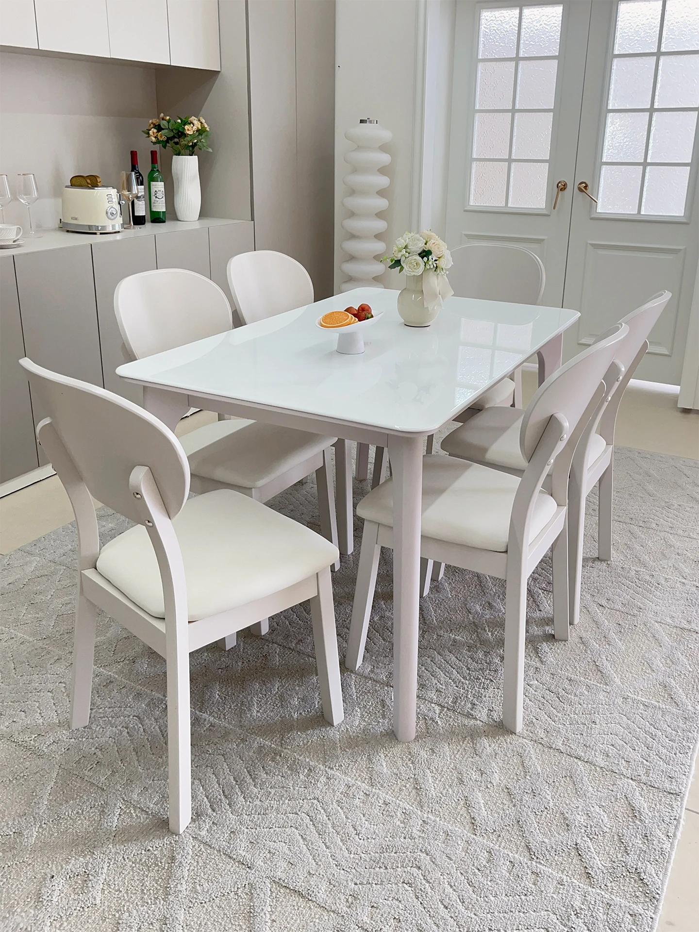 Elegant Rectangular Natural Marble Dining Table and Chair Set for Small Homes - Luxurious Cream Style Solid Wood Dining Table