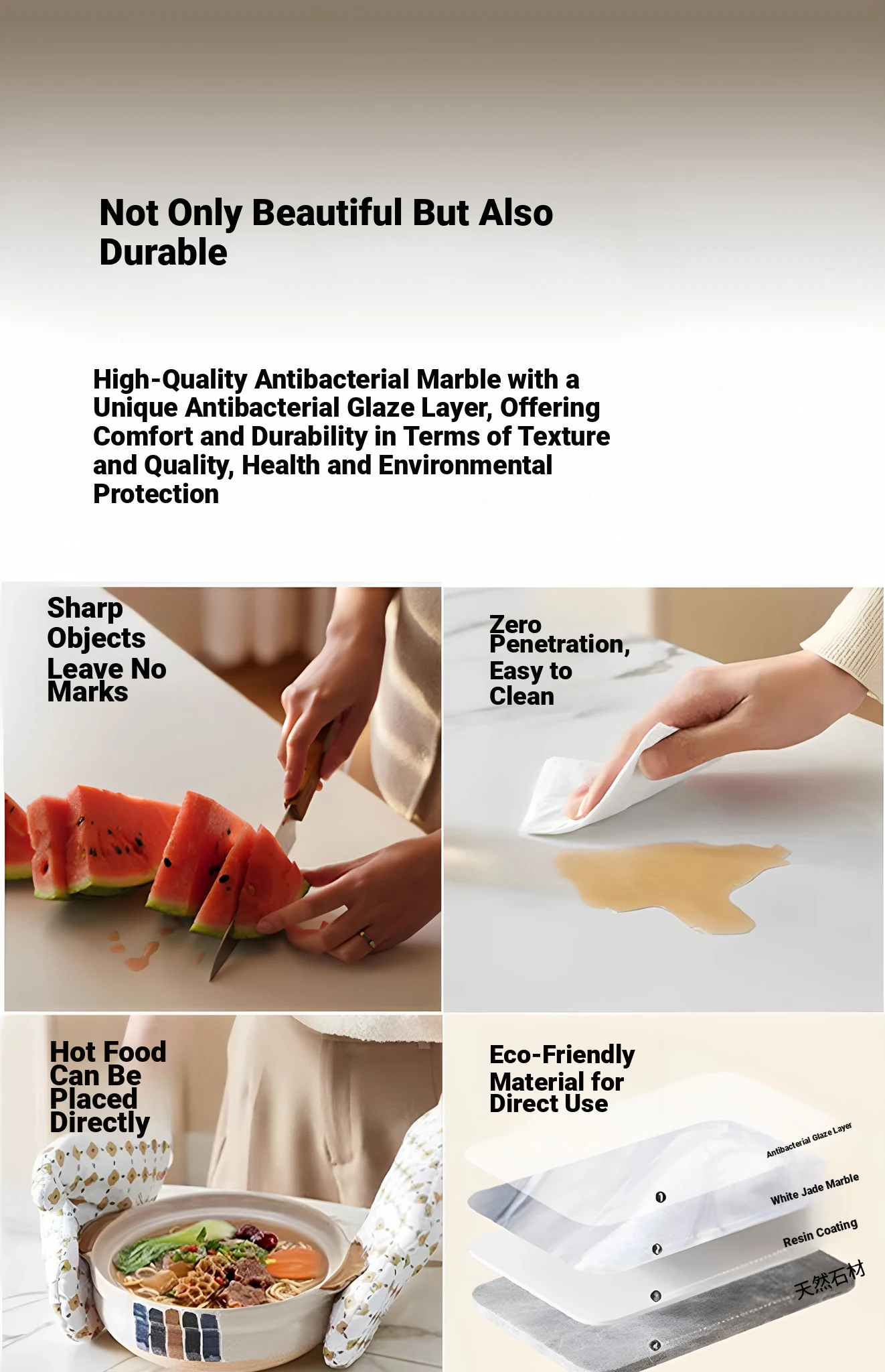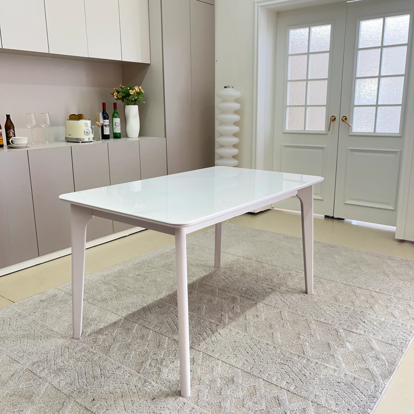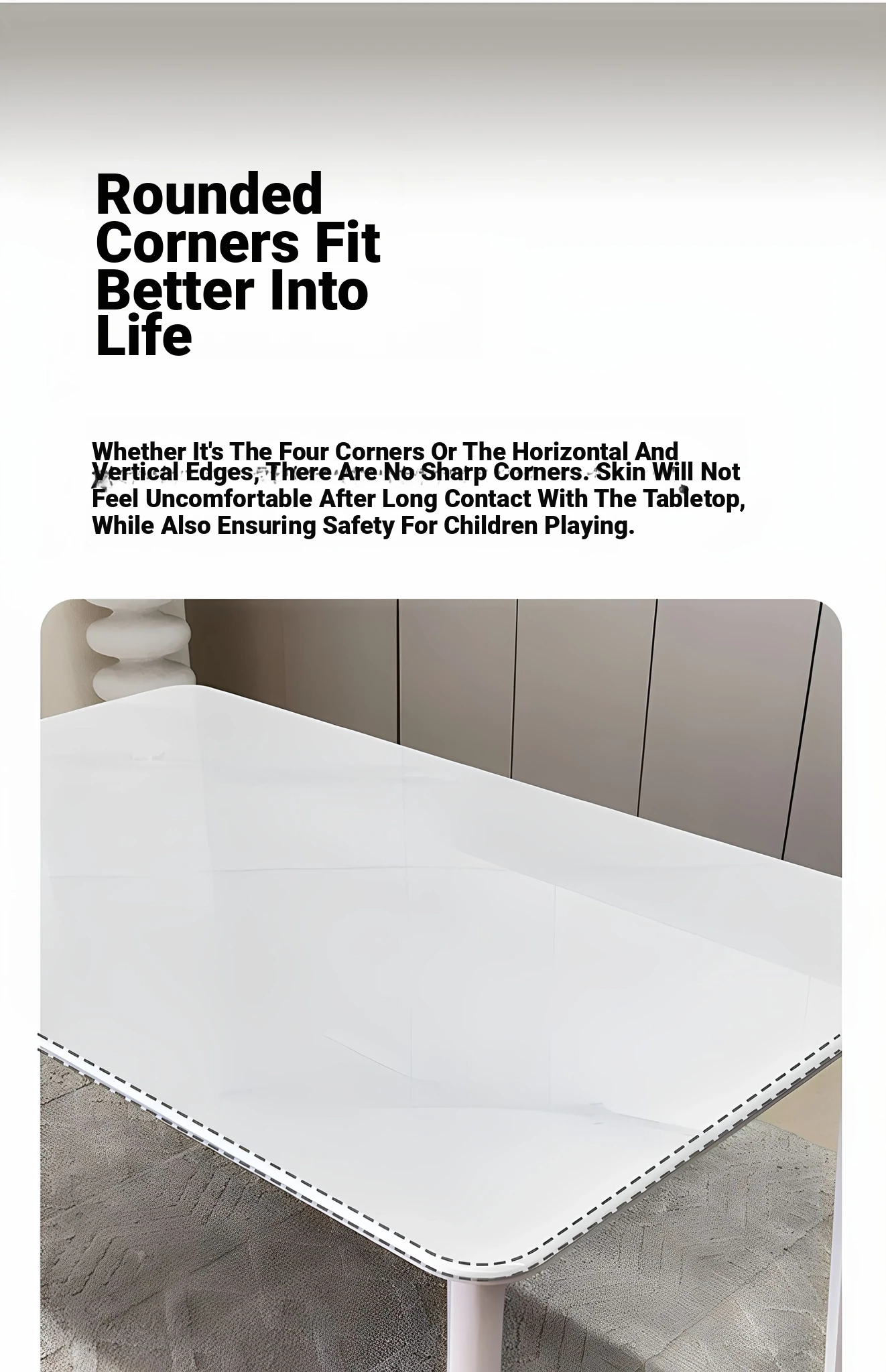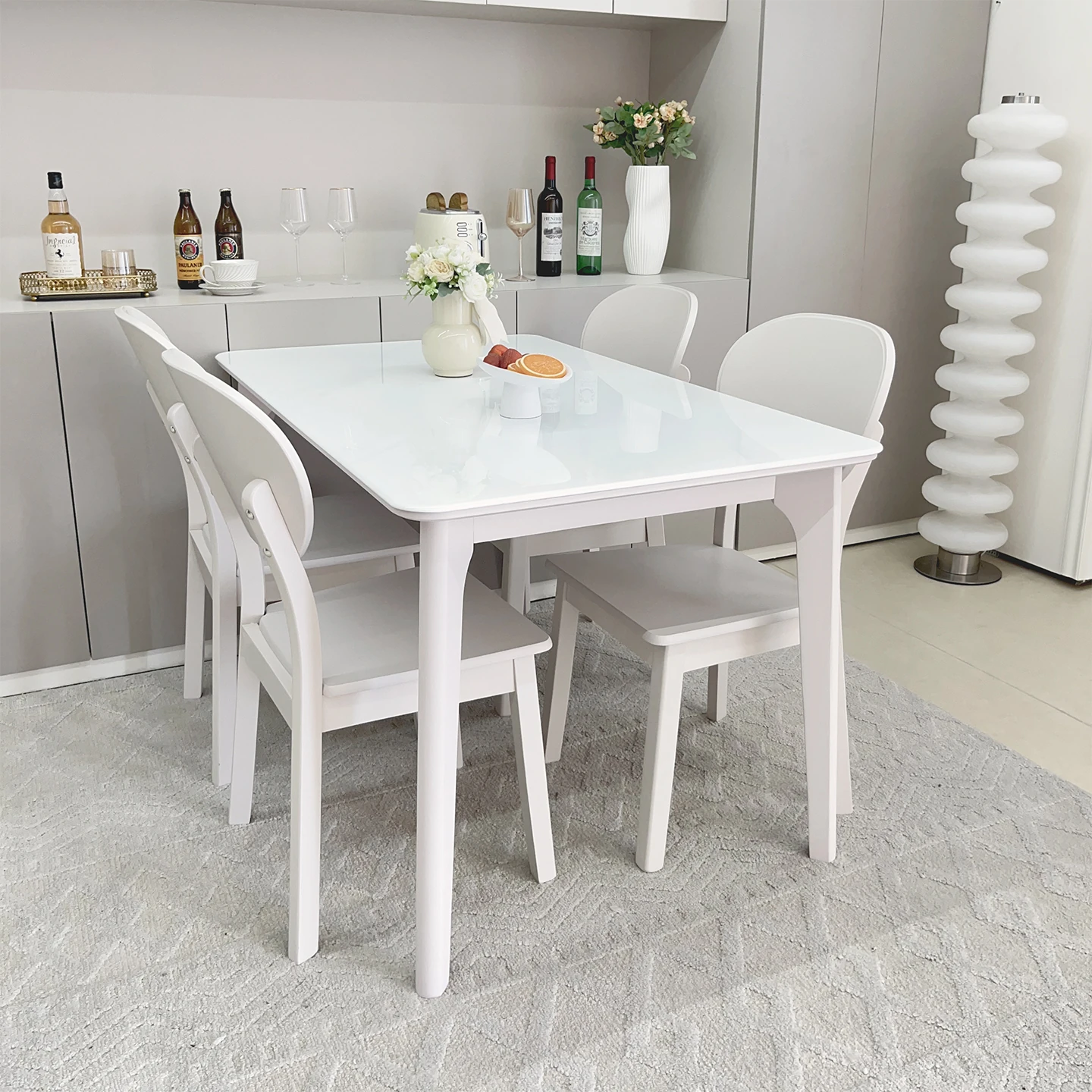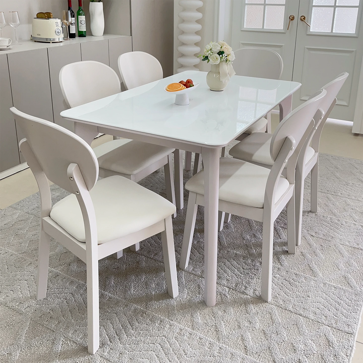 Elegant Rectangular Natural Marble Dining Table and Chair Set for Small Homes - Luxurious Cream Style Solid Wood Dining Table