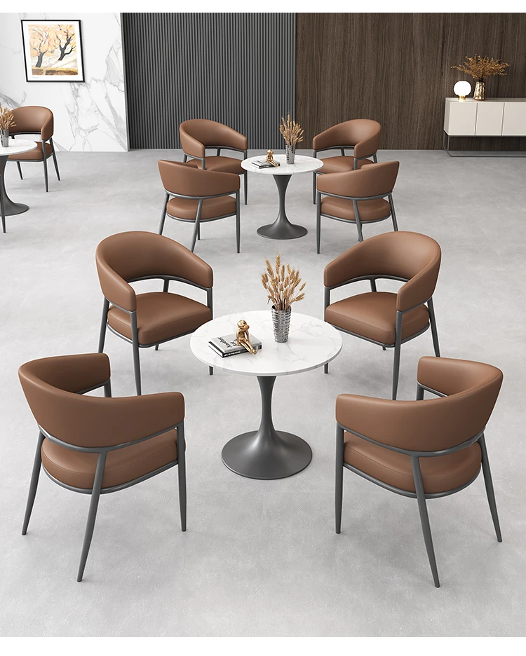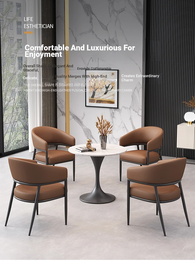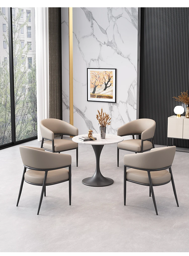 Elegant Round Table and Chair Set for Sales Office Reception Area – Perfect for Client Meetings and Relaxation, Featuring 1 Table and 4 Chairs Ideal for Hotels and Showrooms.