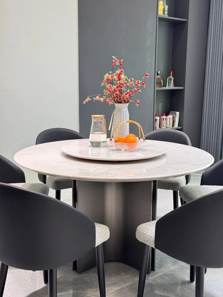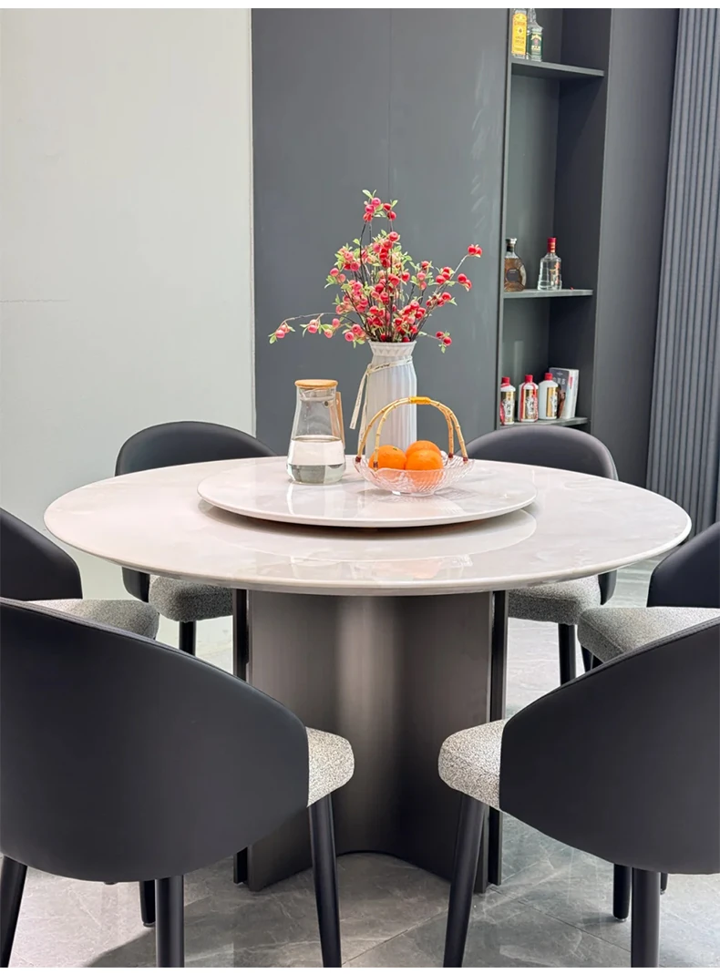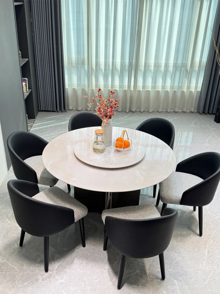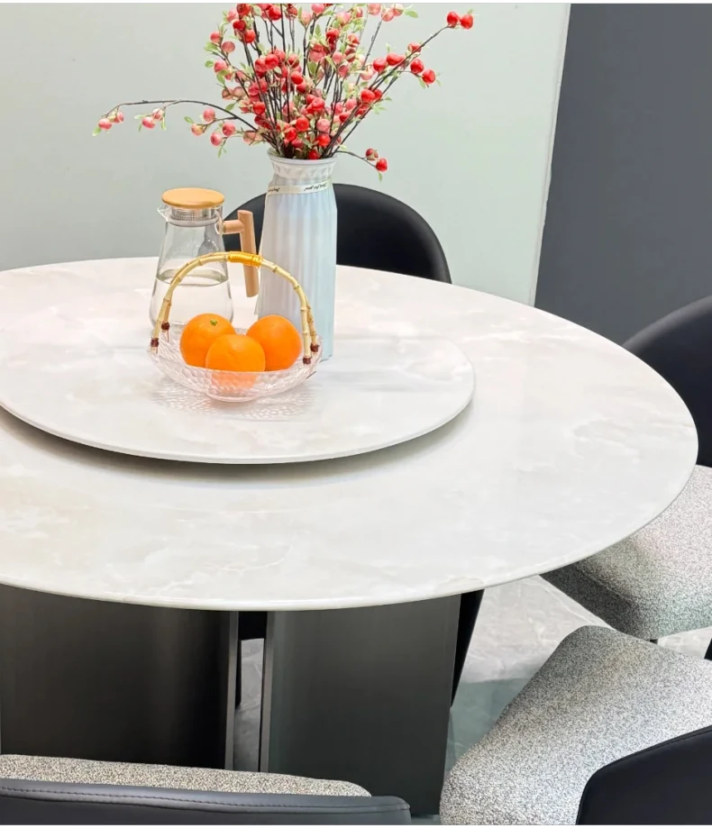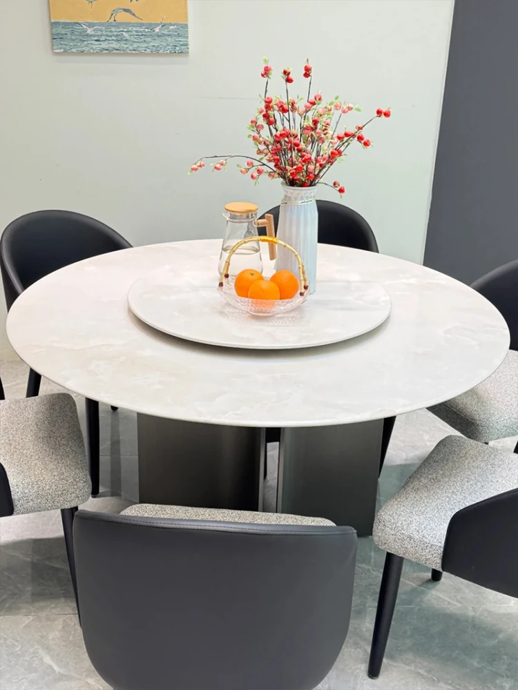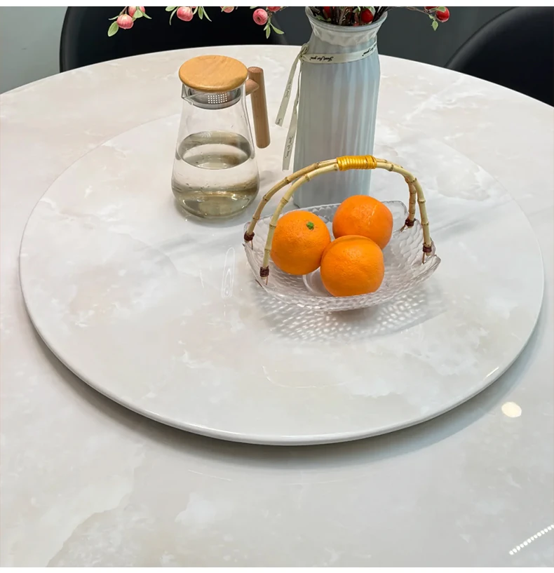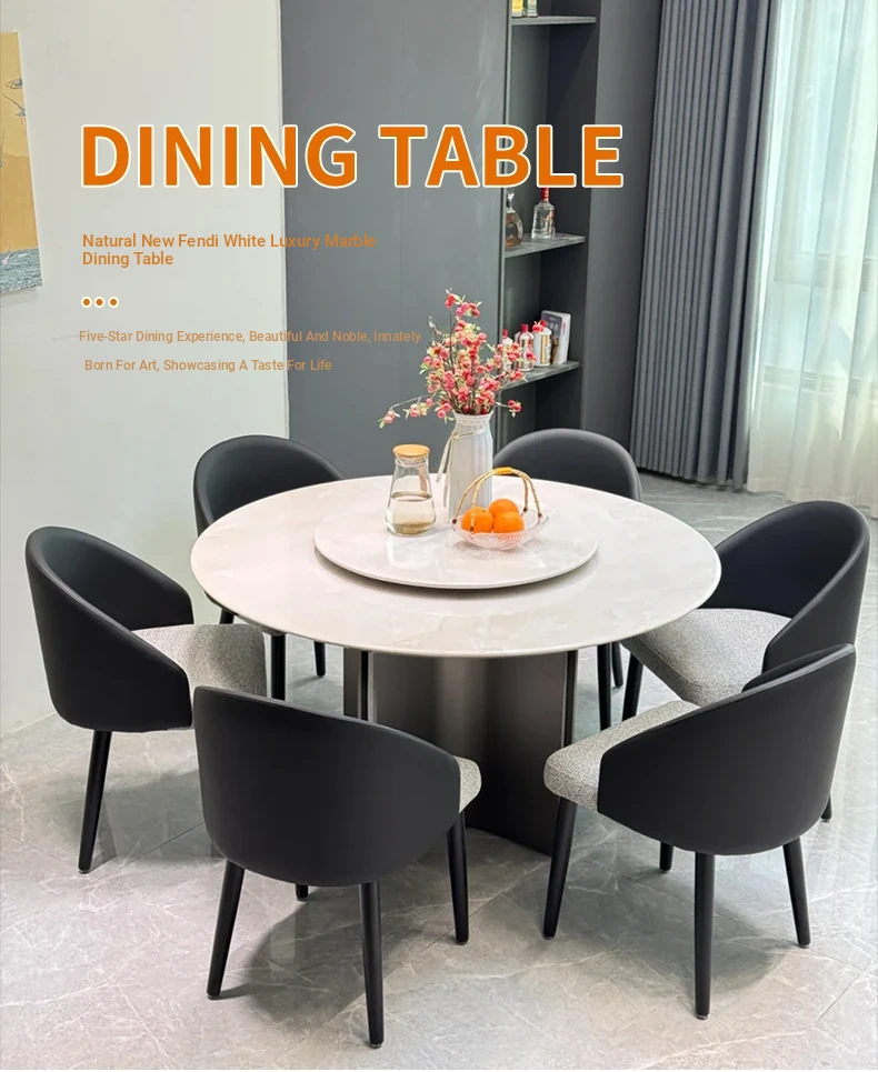 Elegant Round White Marble Dining Table Set by Cheng Cheng - Italian-Inspired Luxury for High-End Villas and Spacious Living Rooms. Perfect for Dining Rooms and Stylish Gatherings.