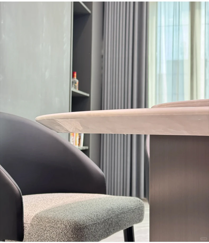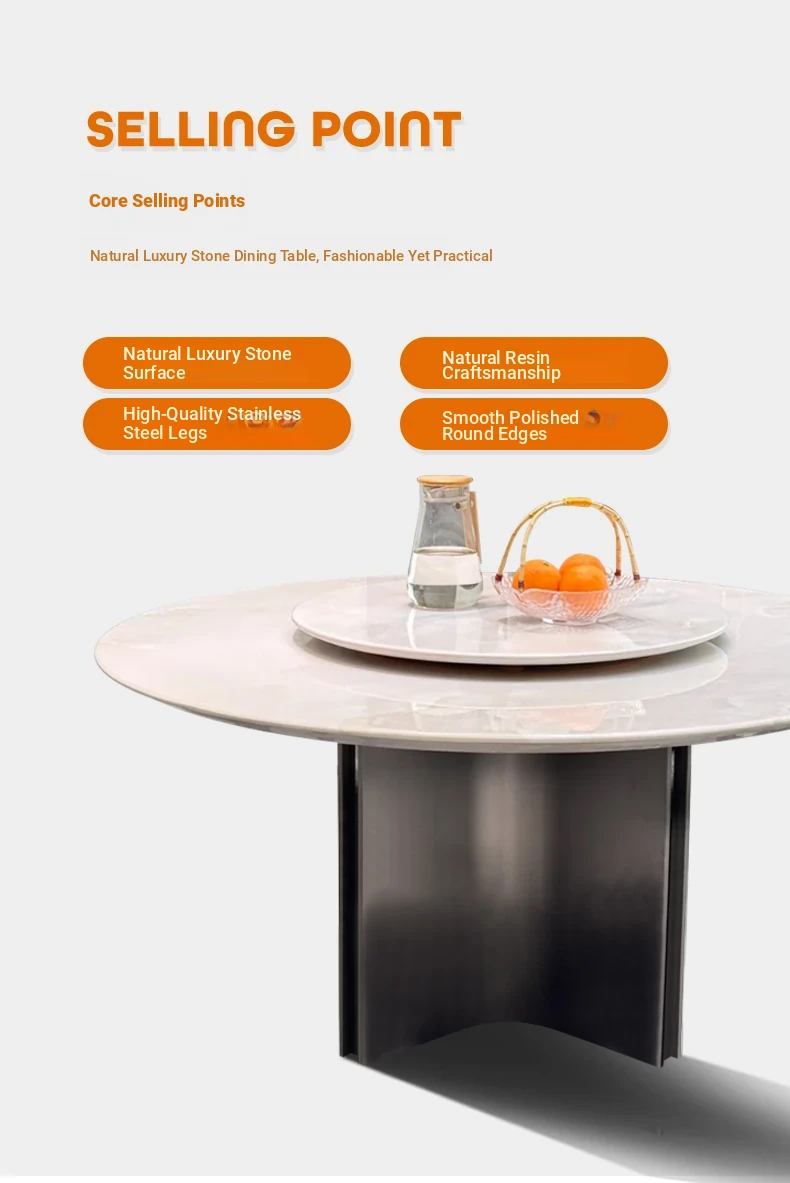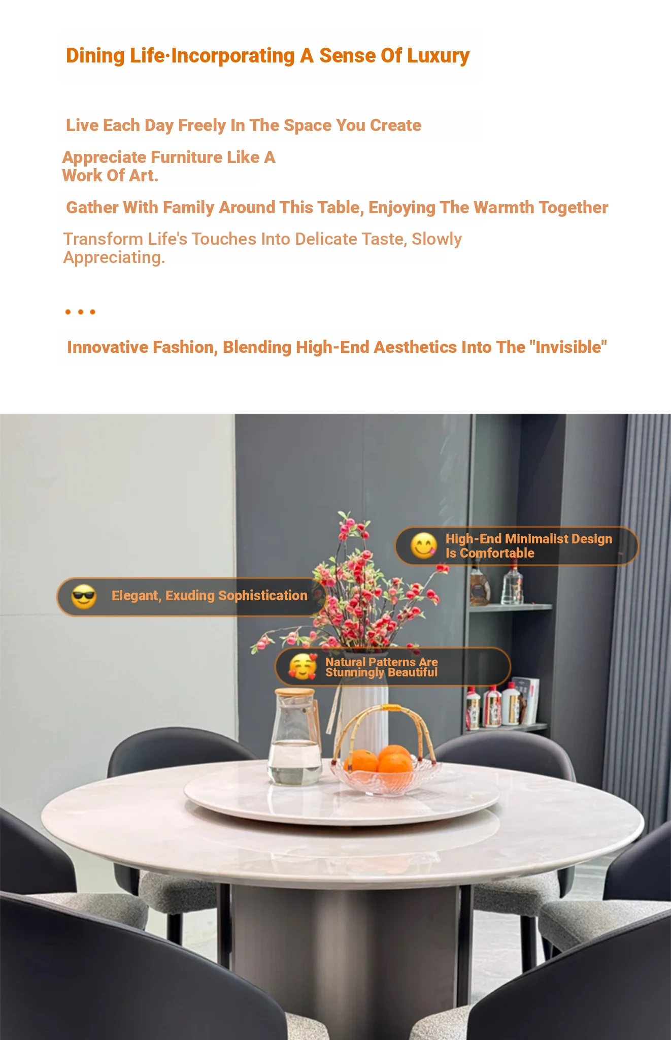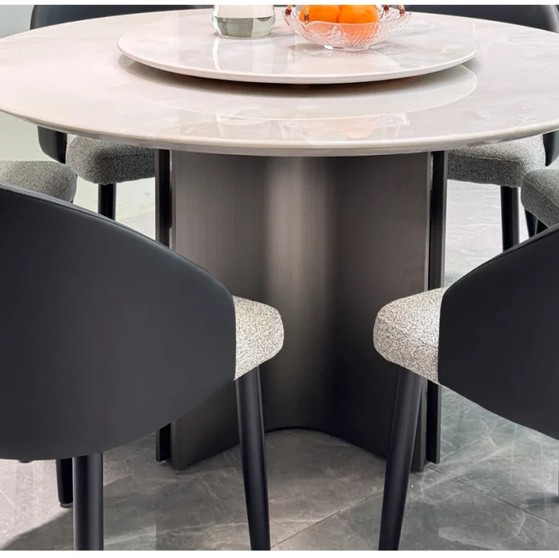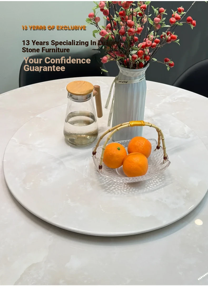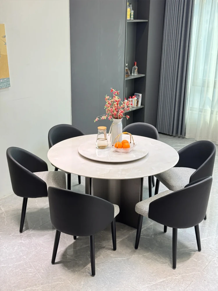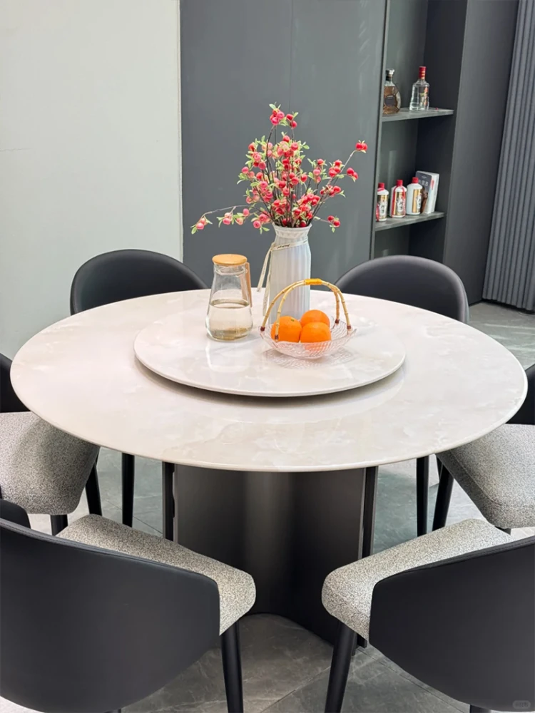 Elegant Round White Marble Dining Table Set by Cheng Cheng - Italian-Inspired Luxury for High-End Villas and Spacious Living Rooms. Perfect for Dining Rooms and Stylish Gatherings.