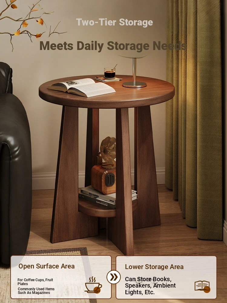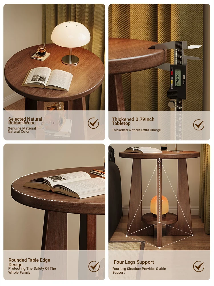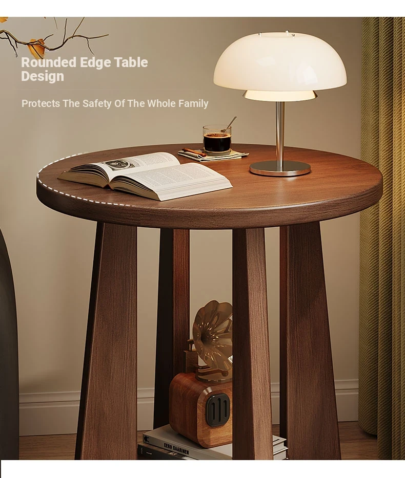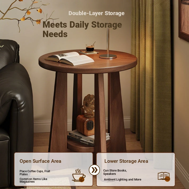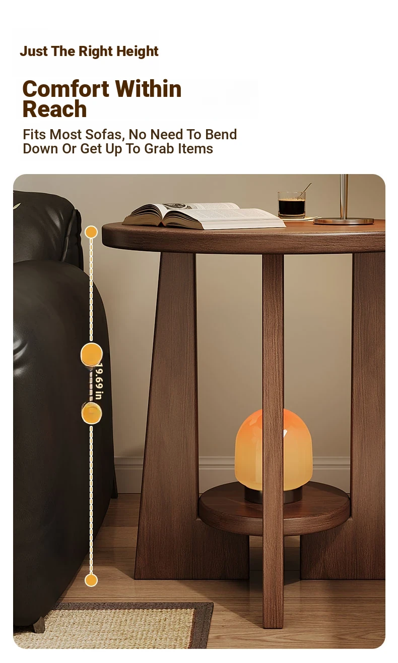 [Solid Wood Side Table] Walnut Round Table 15.75in*19.69in (In Stock Quick Hair✅Safety Environmental-Friendly)