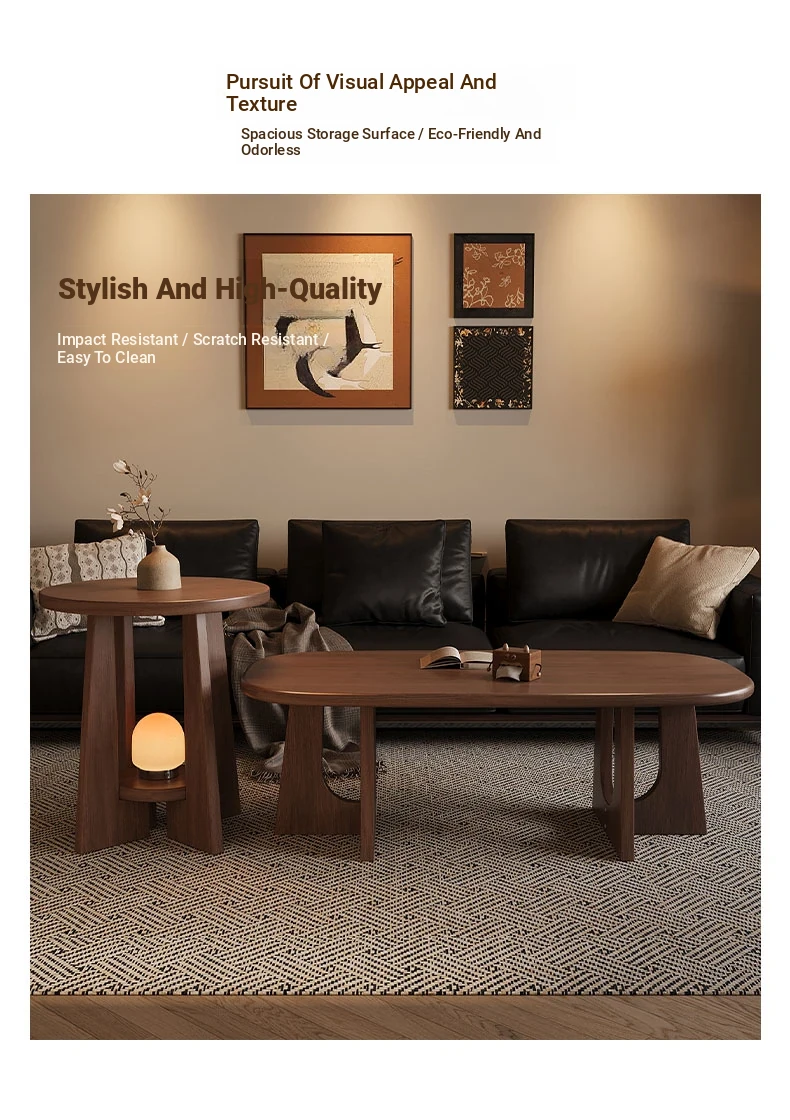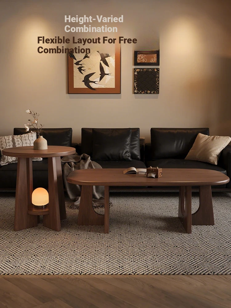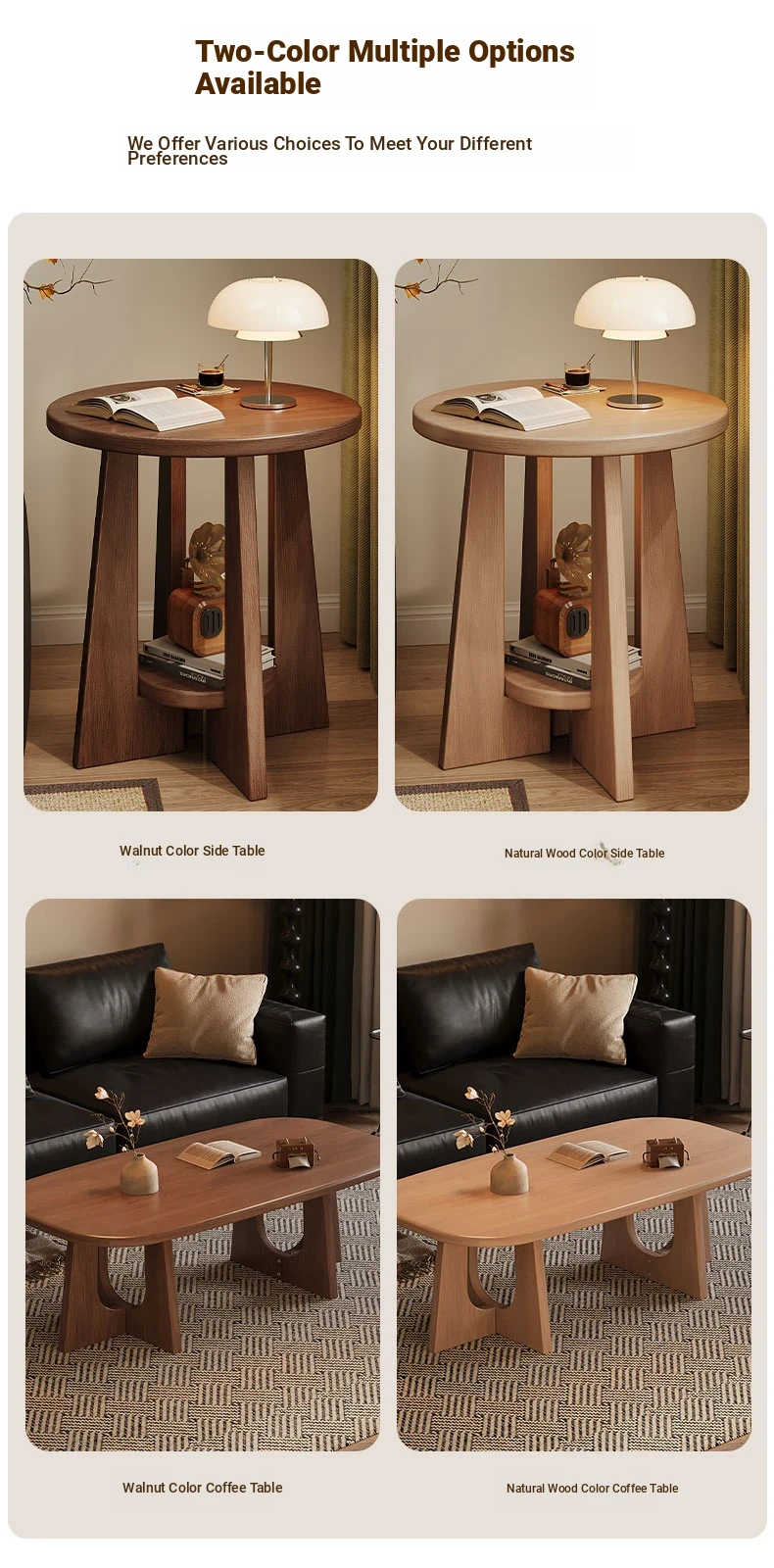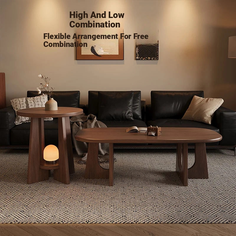 [Combination] walnut small round table 40*50 + walnut color tea table 100*60 (In Stock quick hair✅Safety Environmental-Friendly)