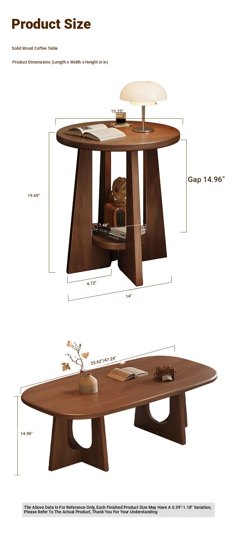 [Solid wood tea table] walnut color 47.24in*23.62in*14.96in (In Stock quick hair✅Safety Environmental-Friendly)