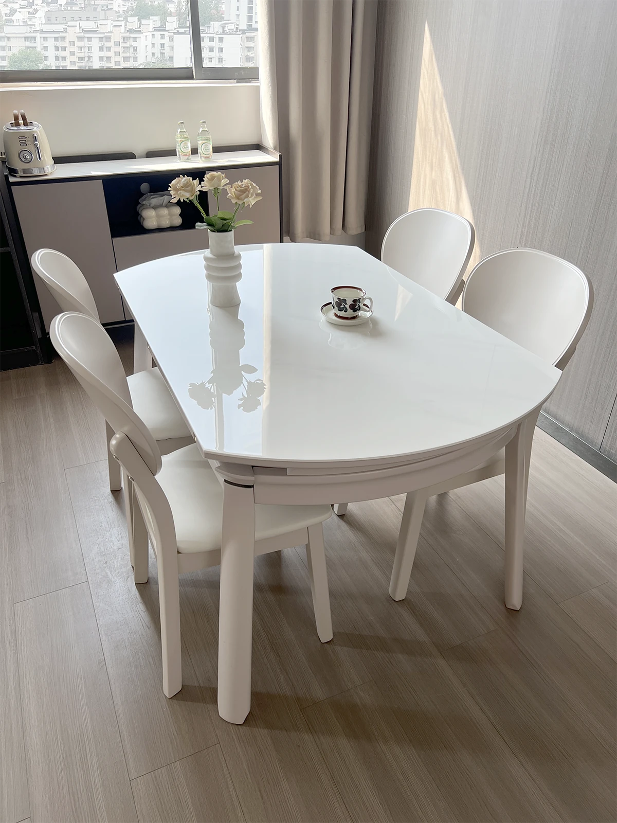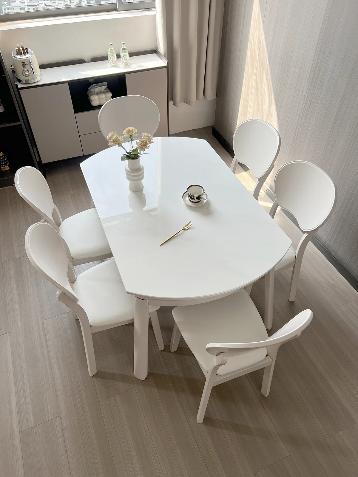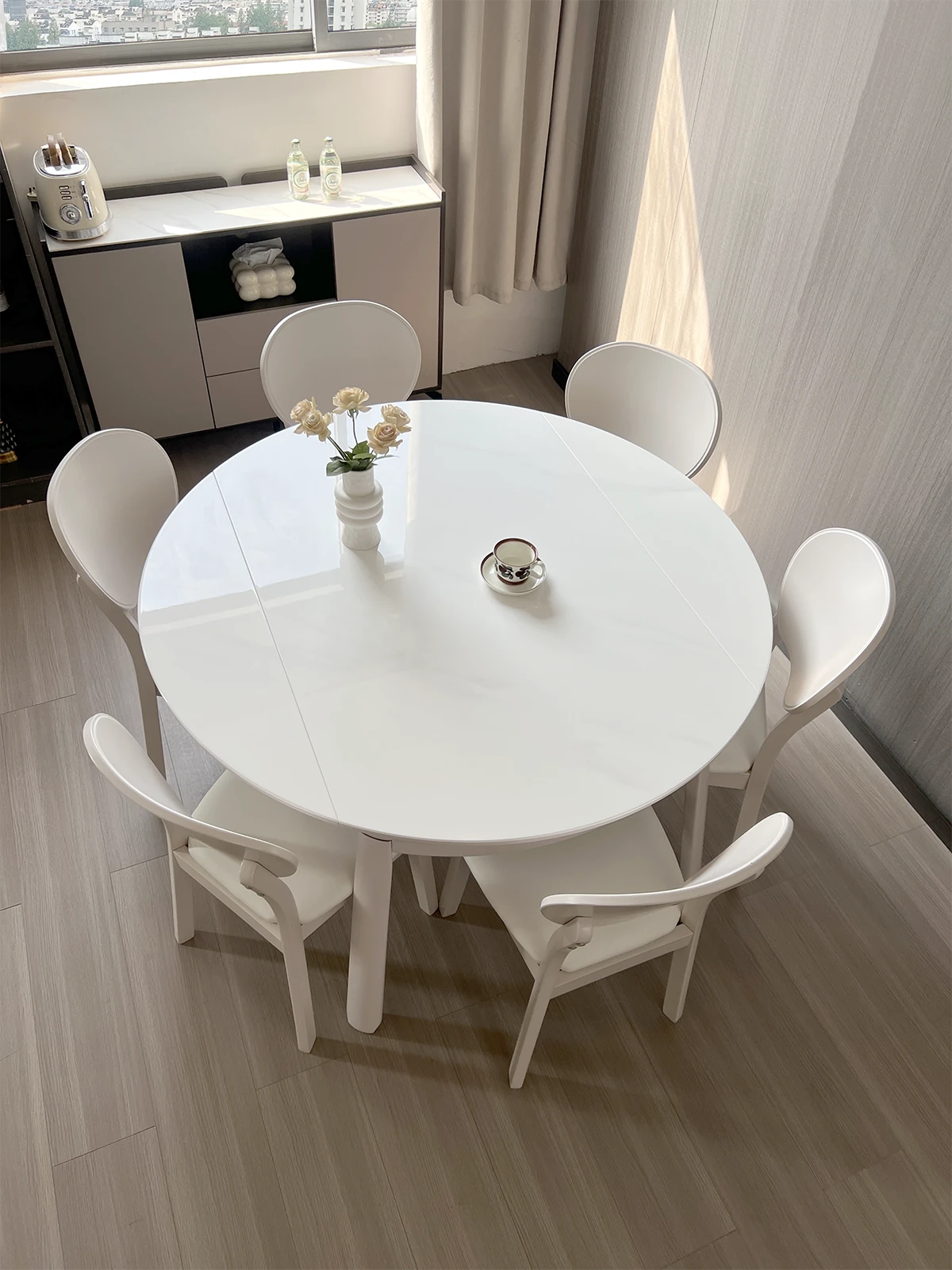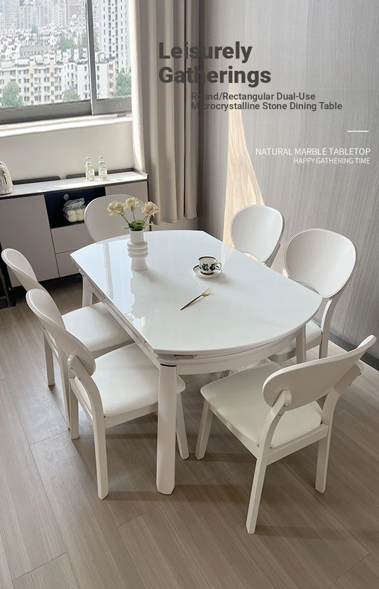 Elegant White Marble Dining Table Set with Extendable Round Design - French Cream Style, High-End Solid Wood for Home Use