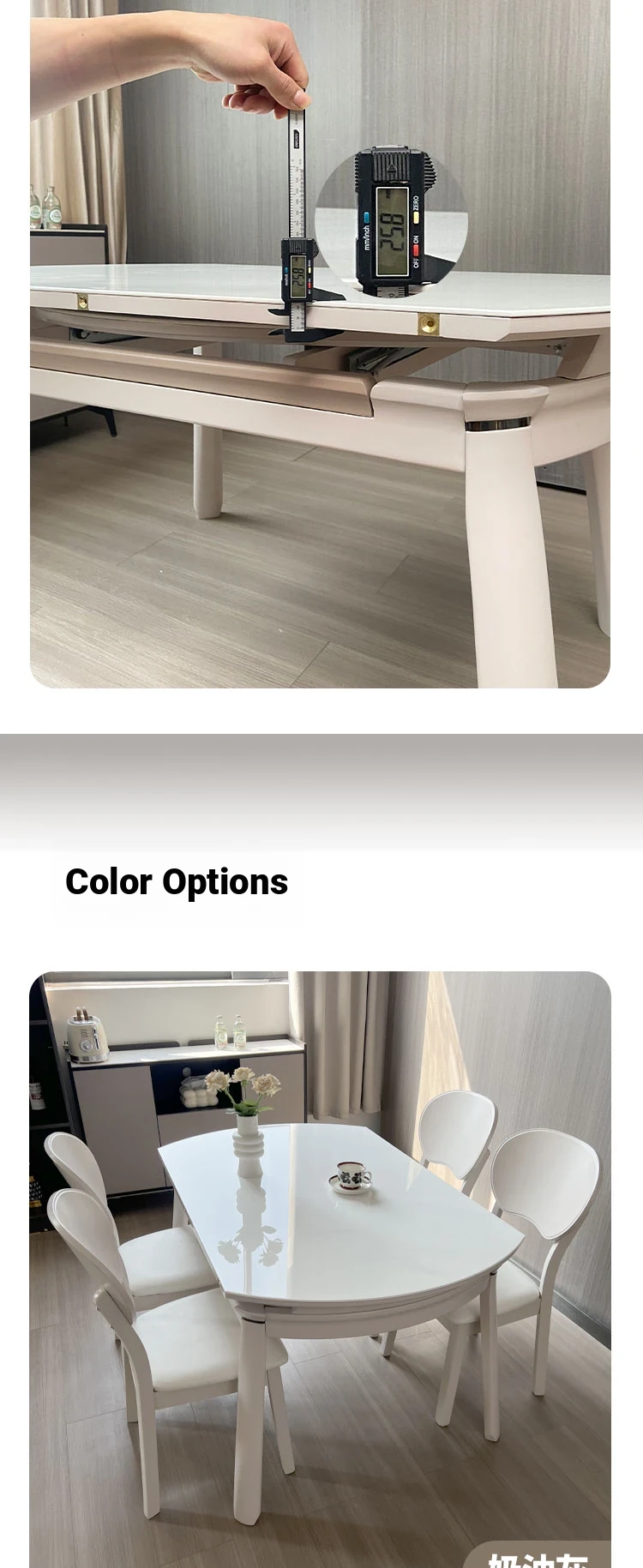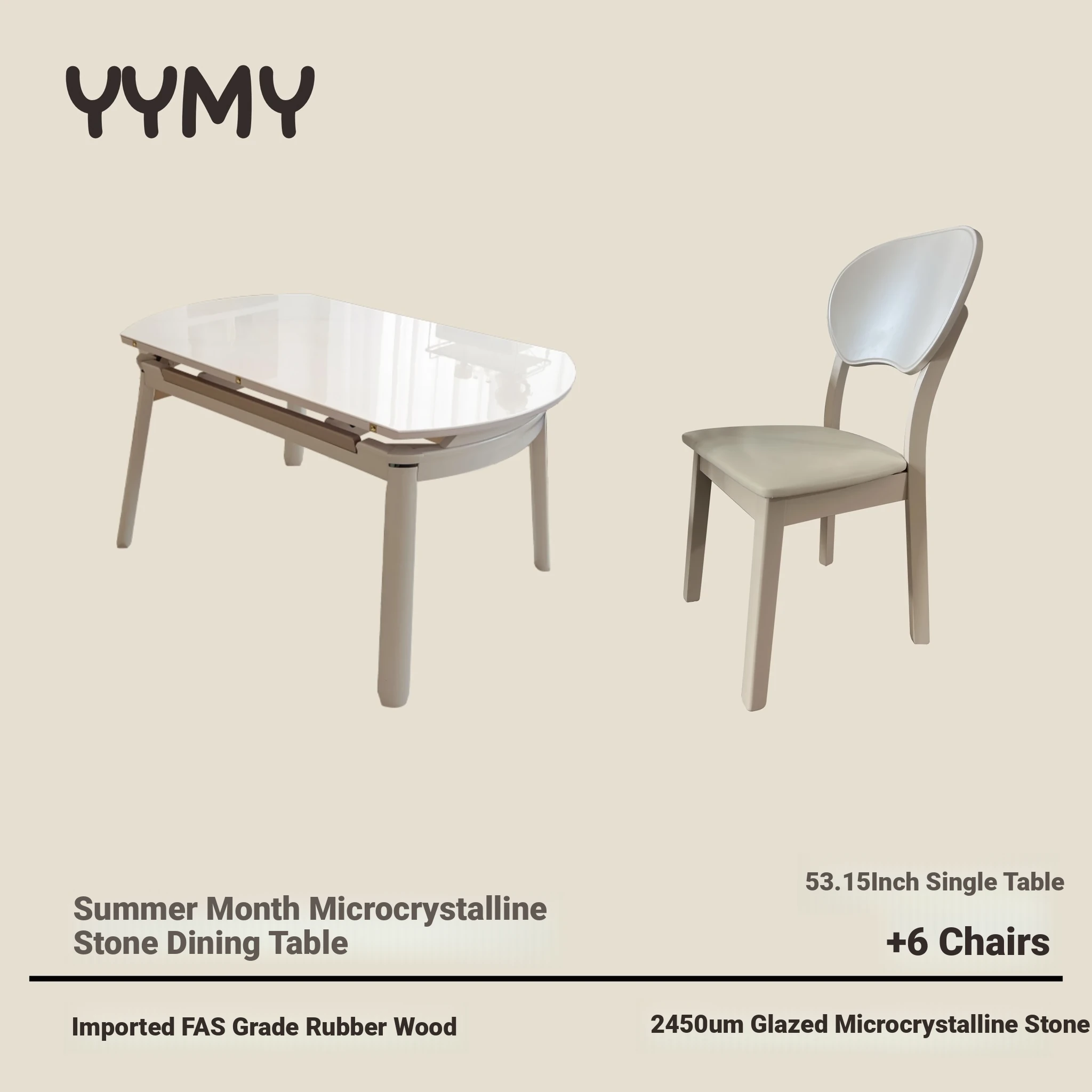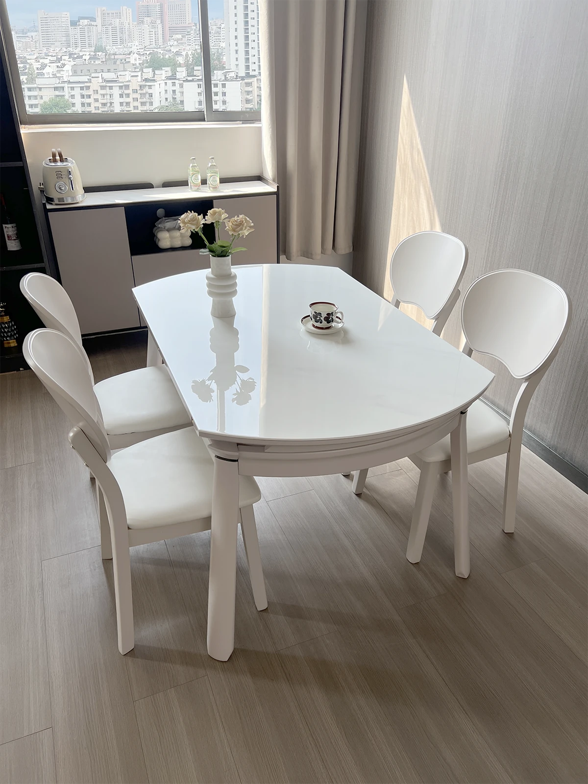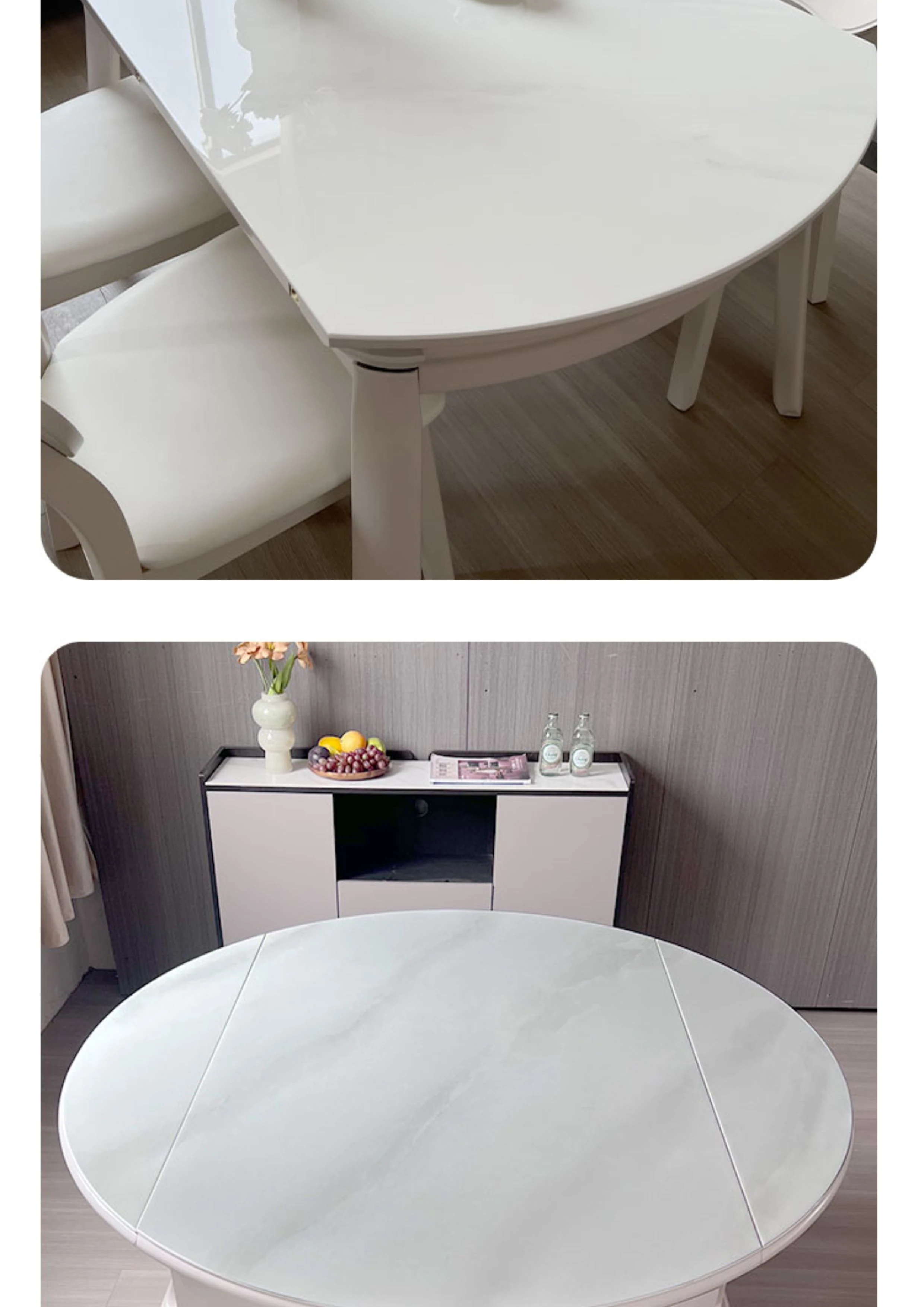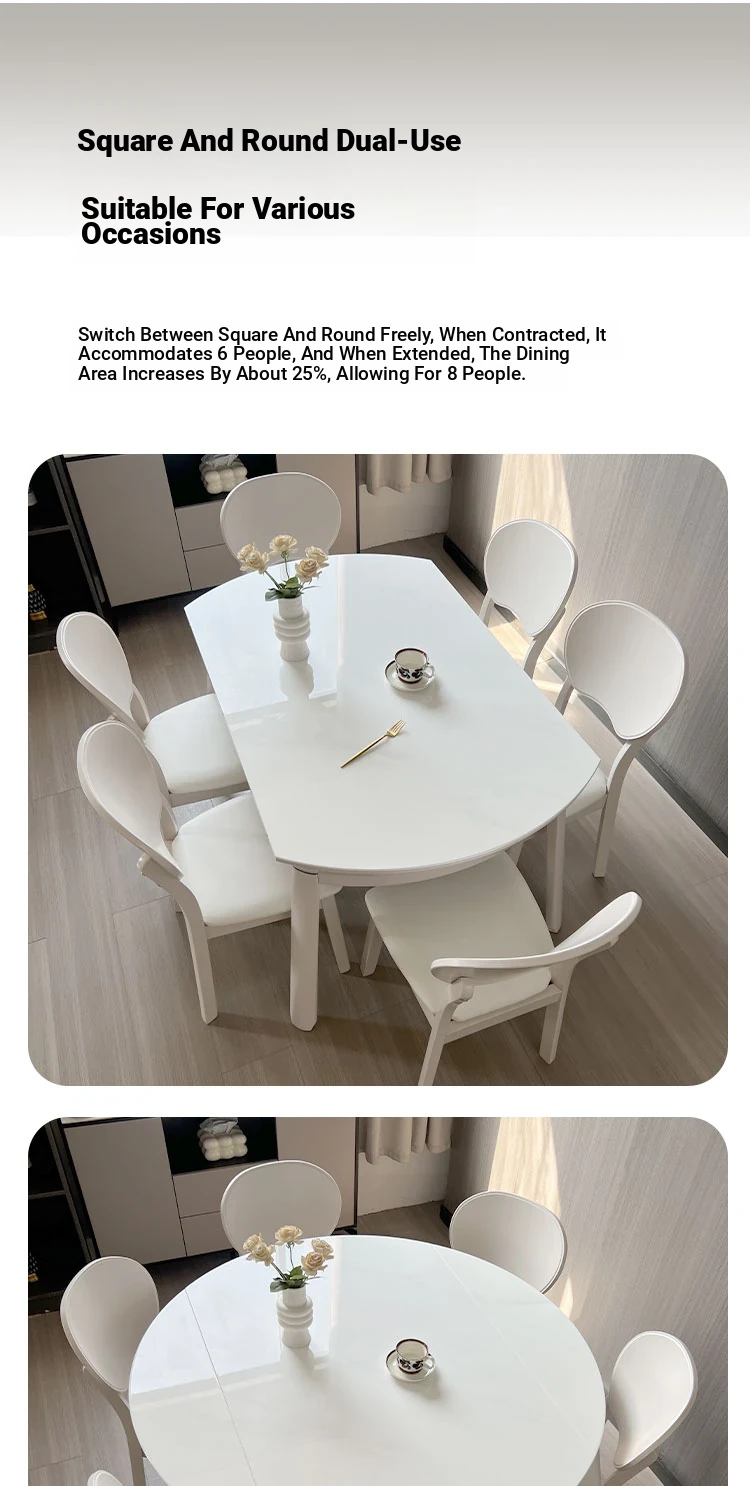 Elegant White Marble Dining Table Set with Extendable Round Design - French Cream Style, High-End Solid Wood for Home Use
