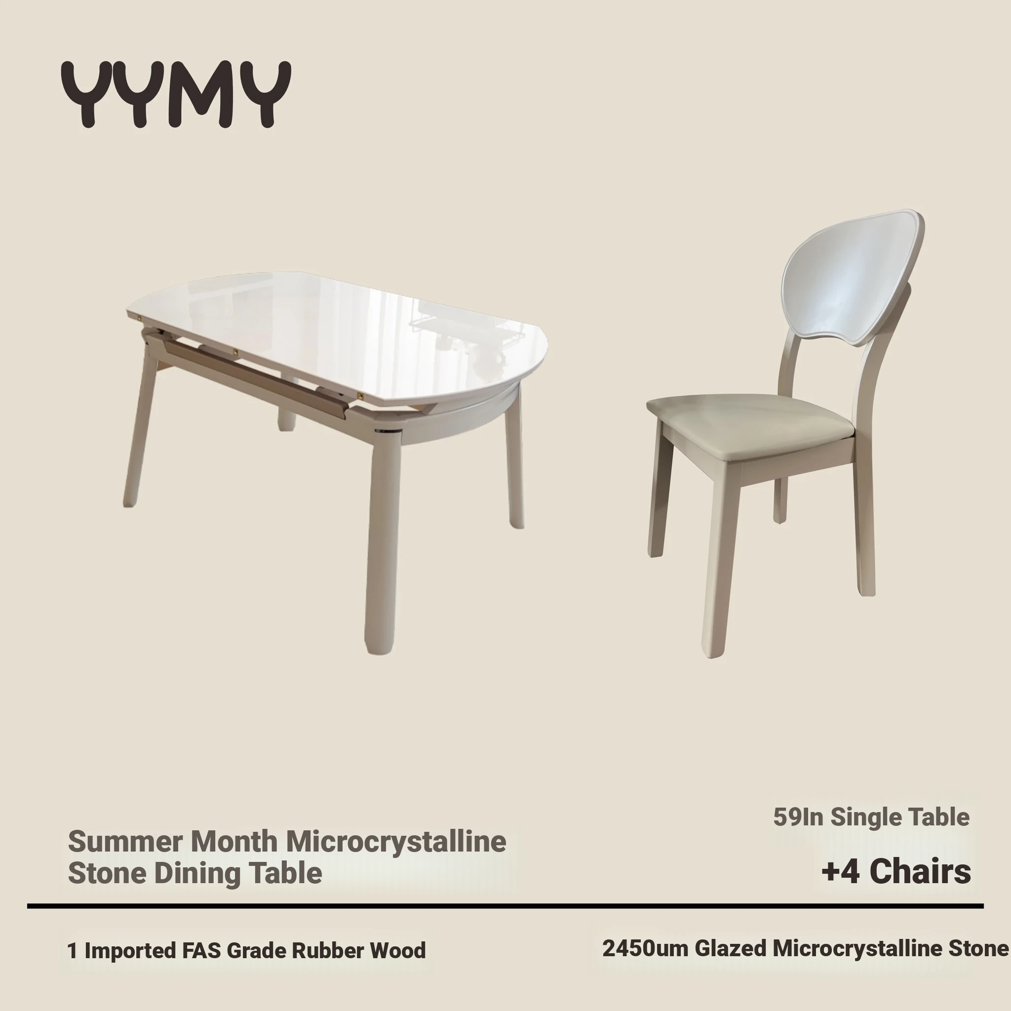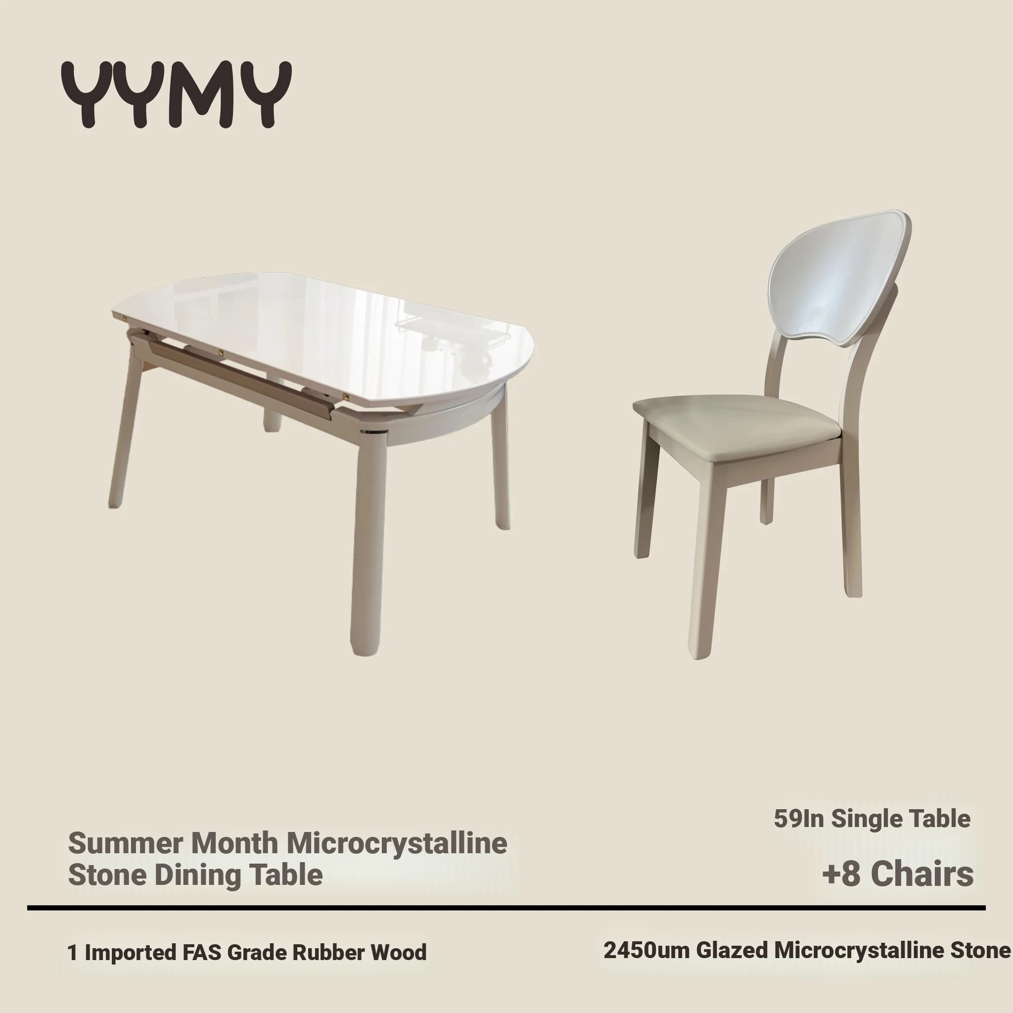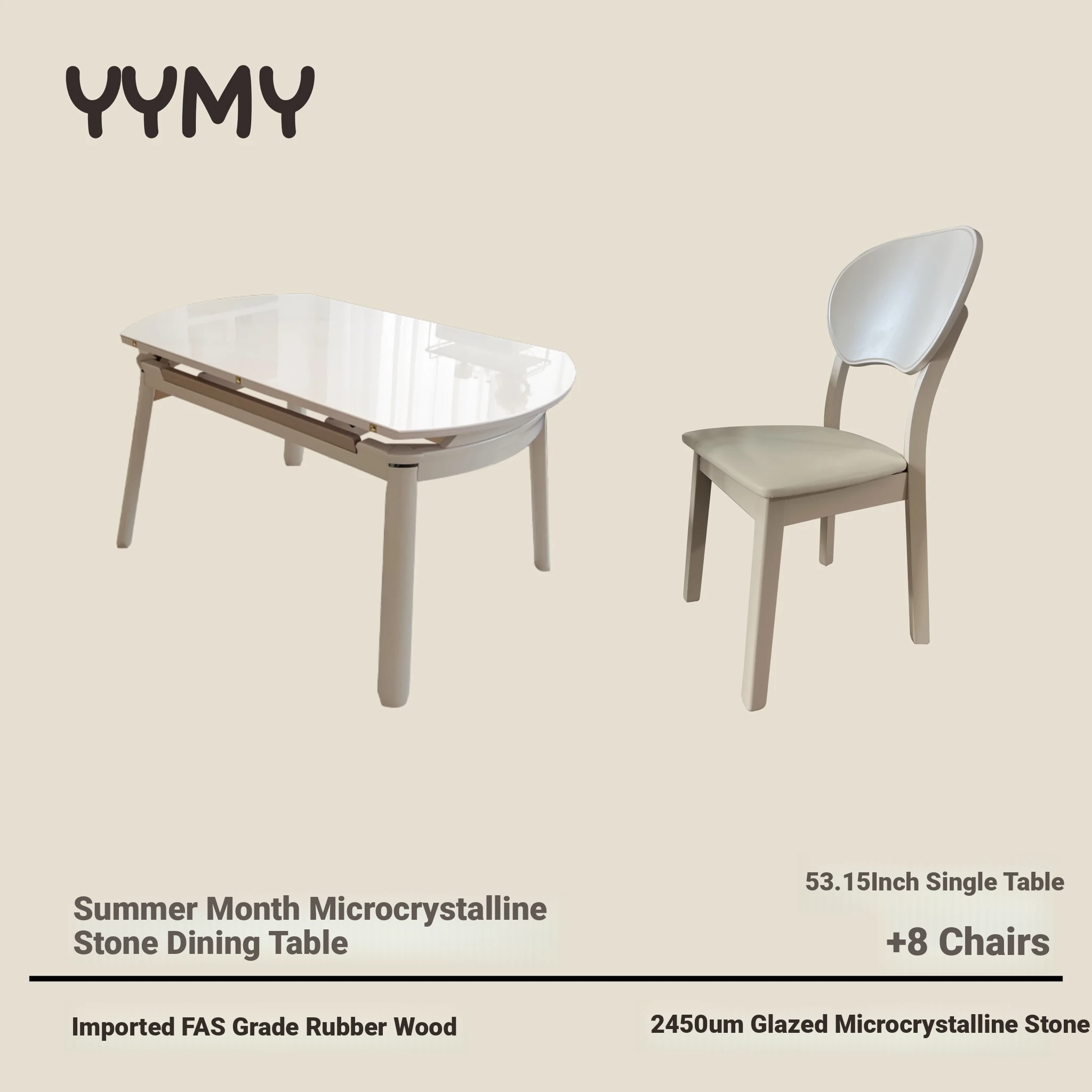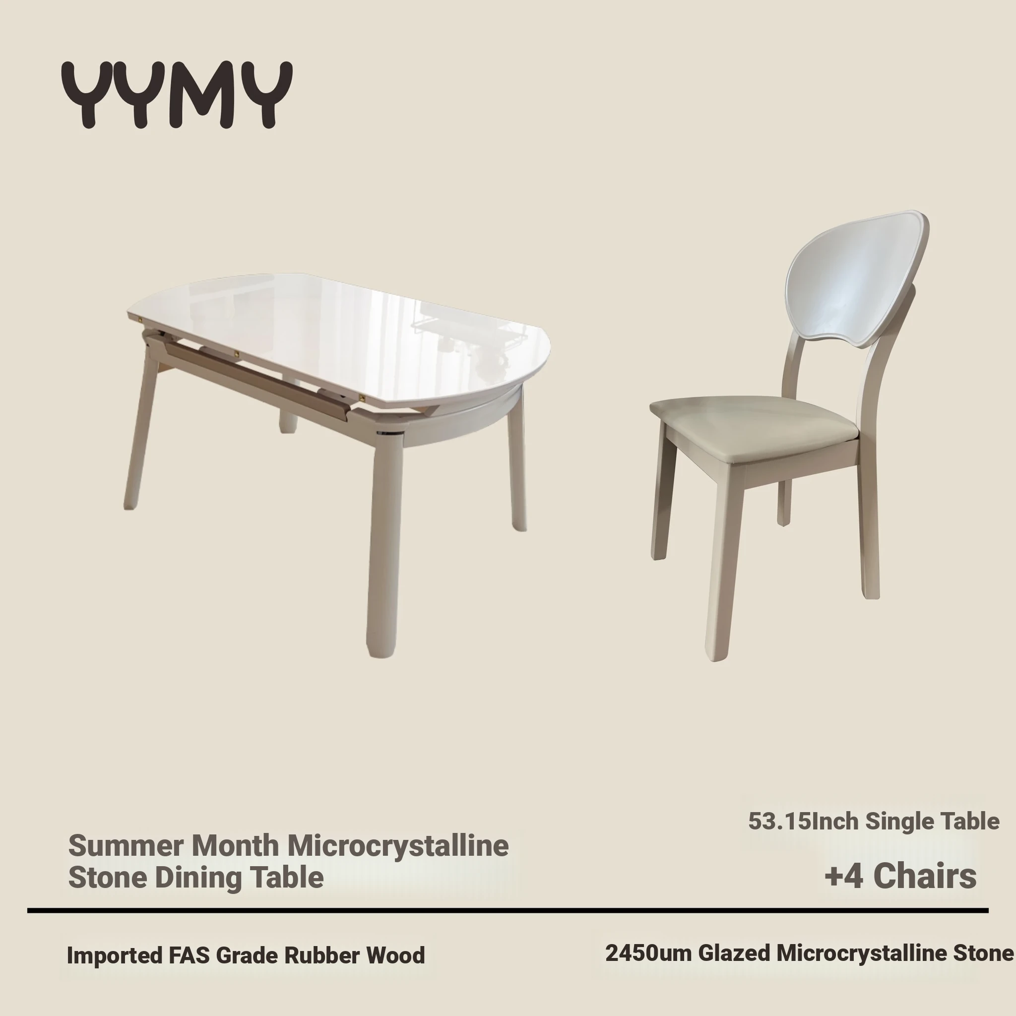 Elegant White Marble Dining Table Set with Extendable Round Design - French Cream Style, High-End Solid Wood for Home Use